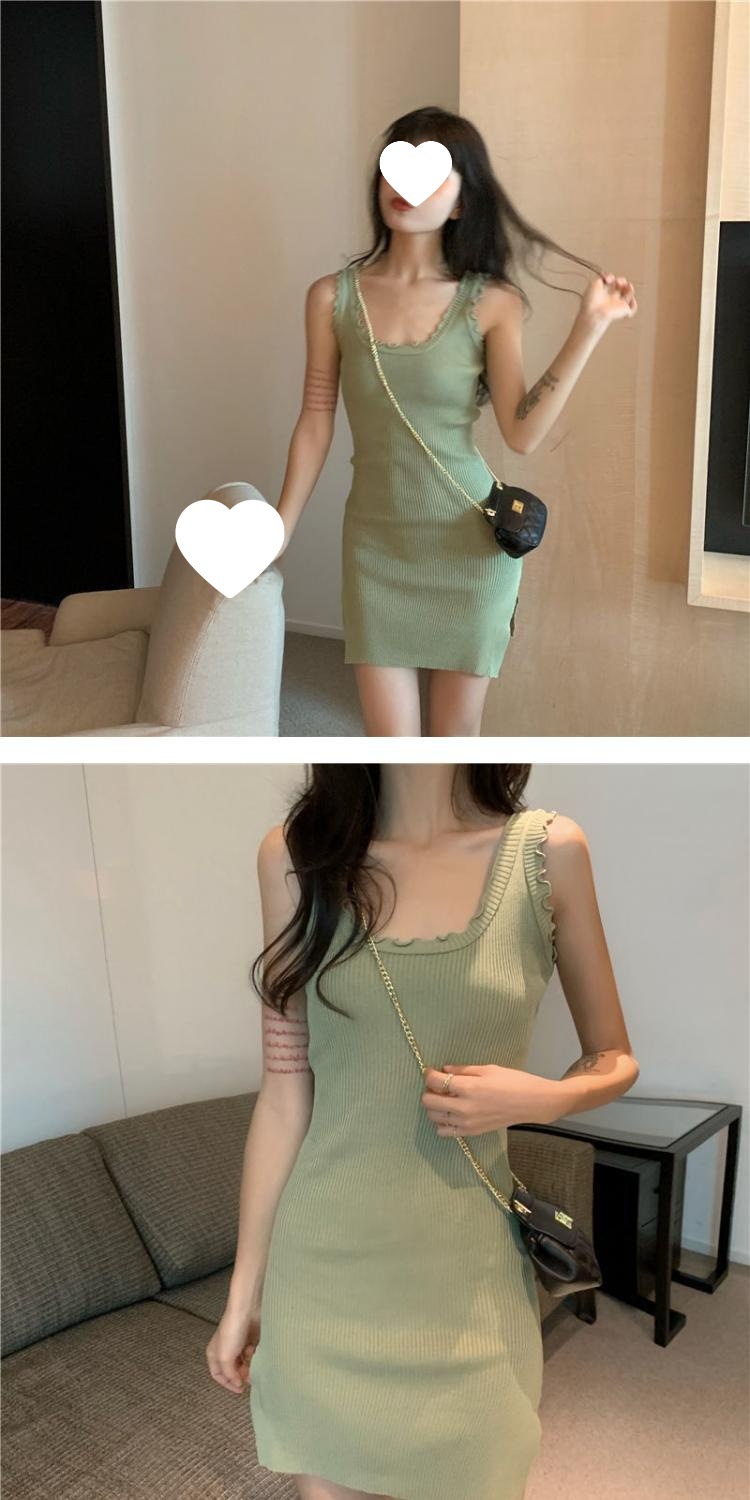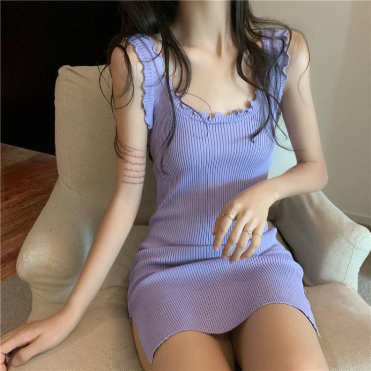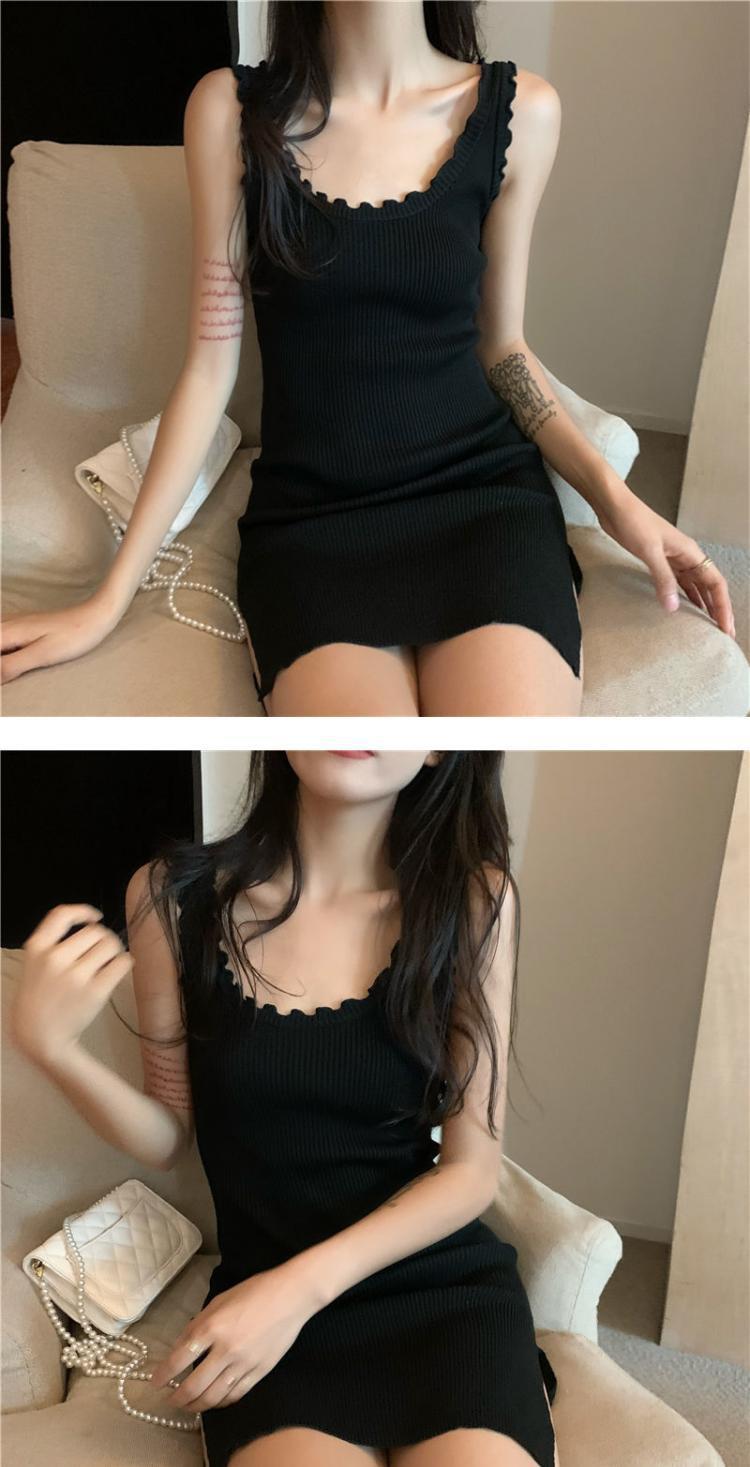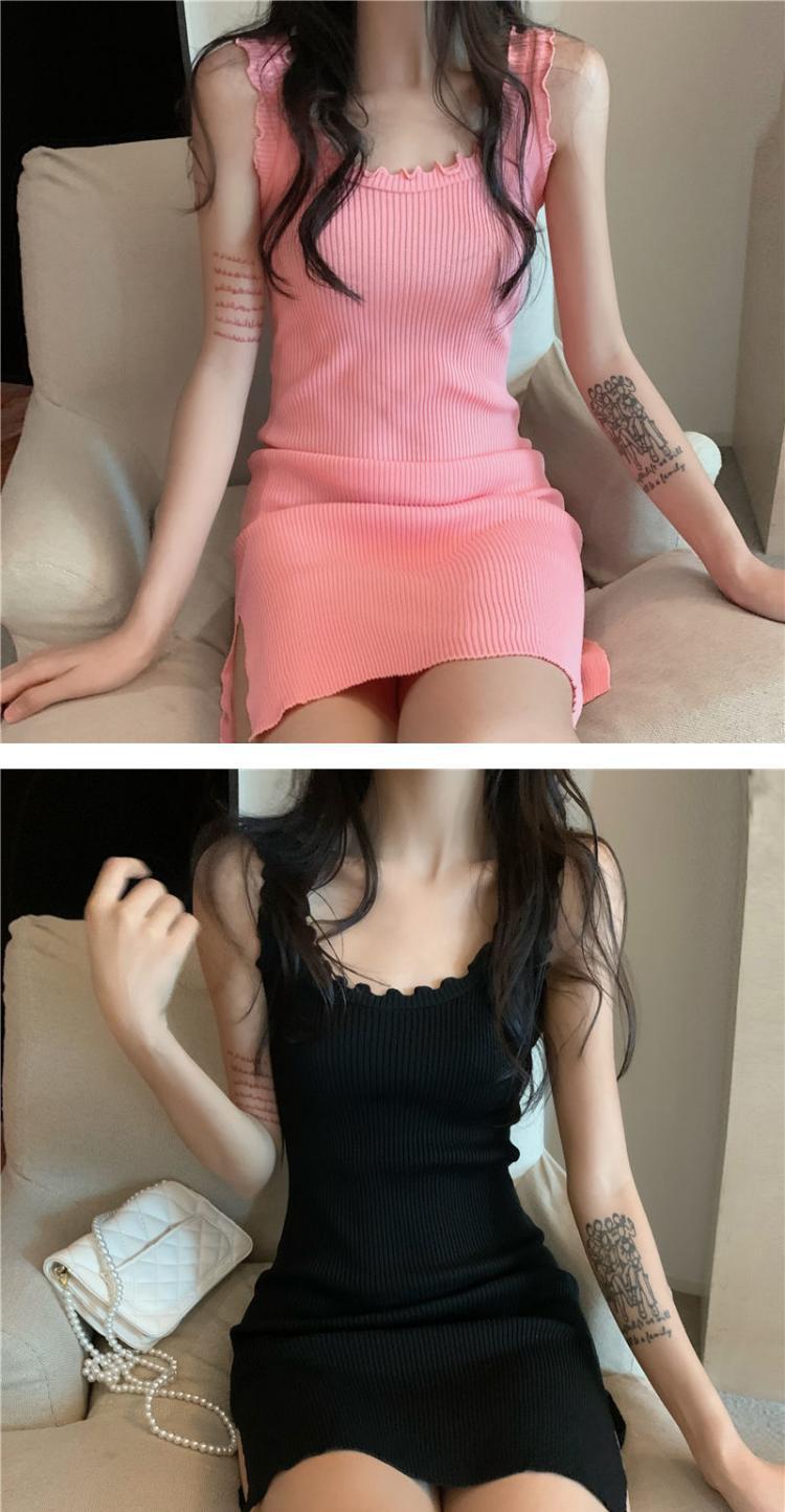性感木耳边修身显瘦气质背心针织连衣裙性感打底包臀短裙夏季新款