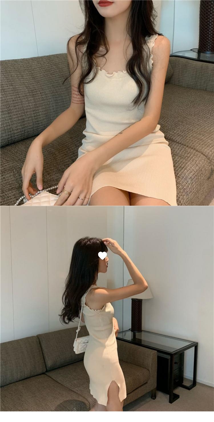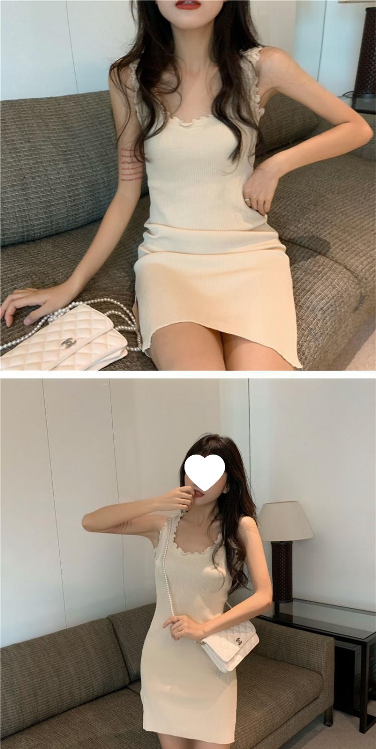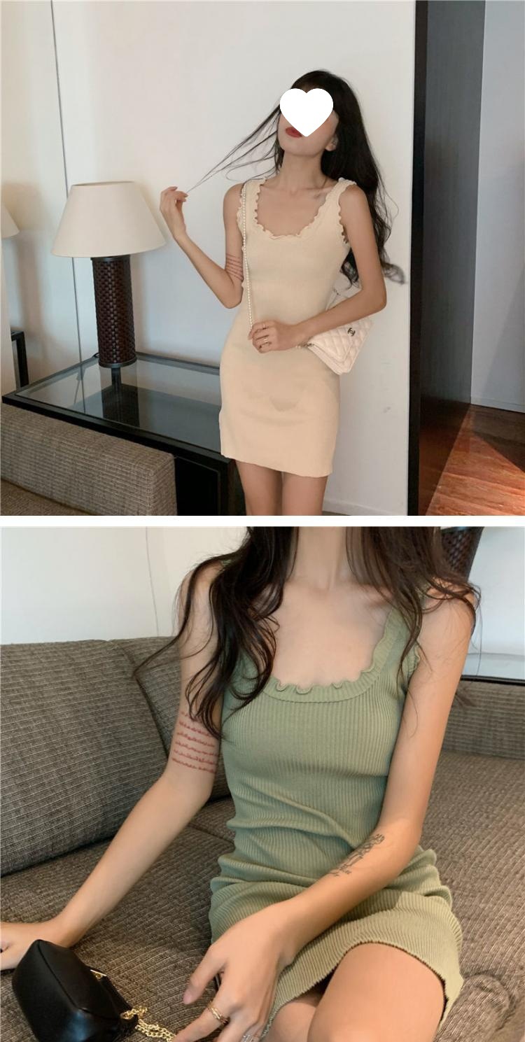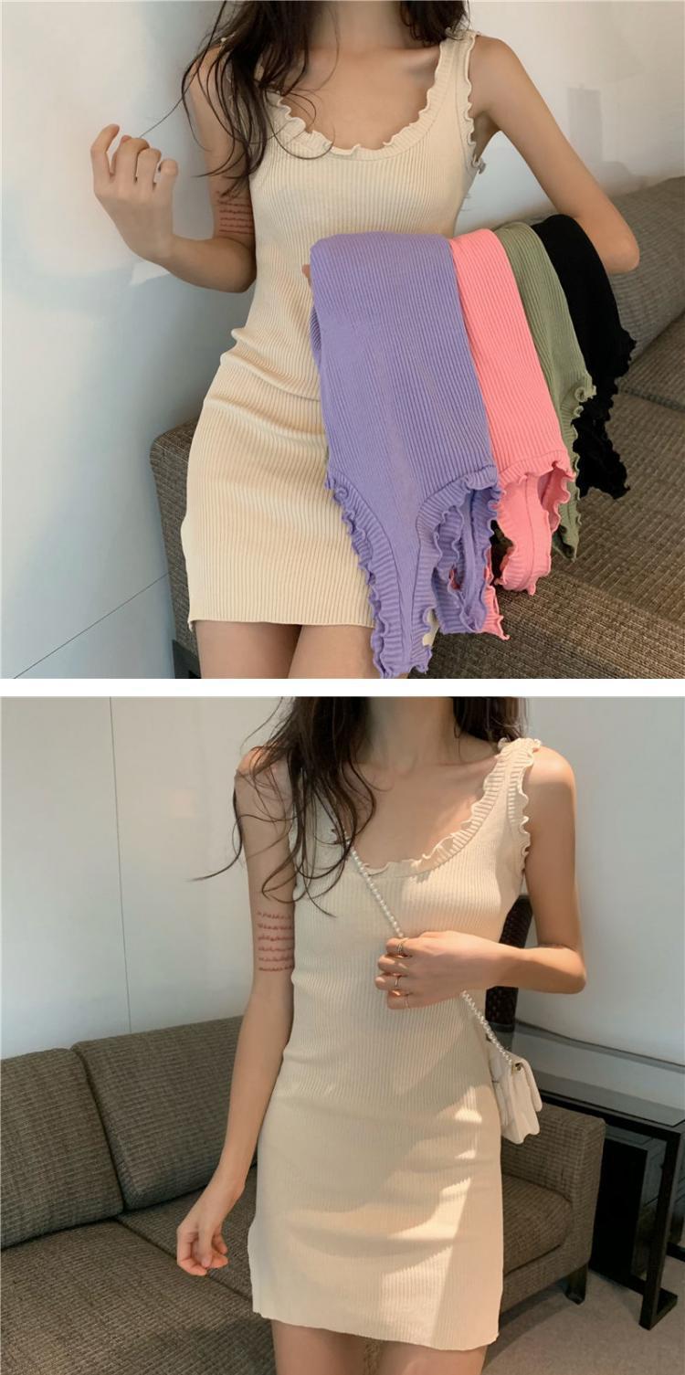性感木耳边修身显瘦气质背心针织连衣裙性感打底包臀短裙夏季新款