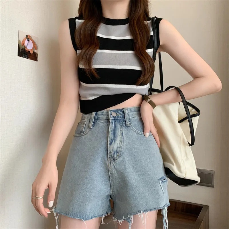 性感针织条纹小背心女夏外穿纯欲别致甜辣设计感小众短款无袖上衣