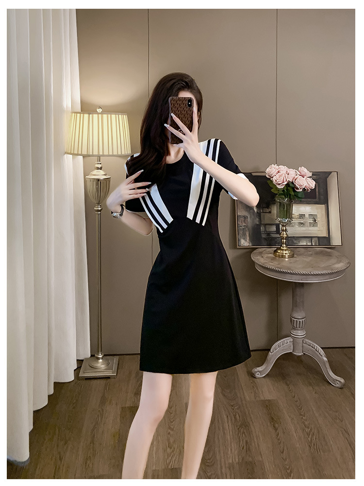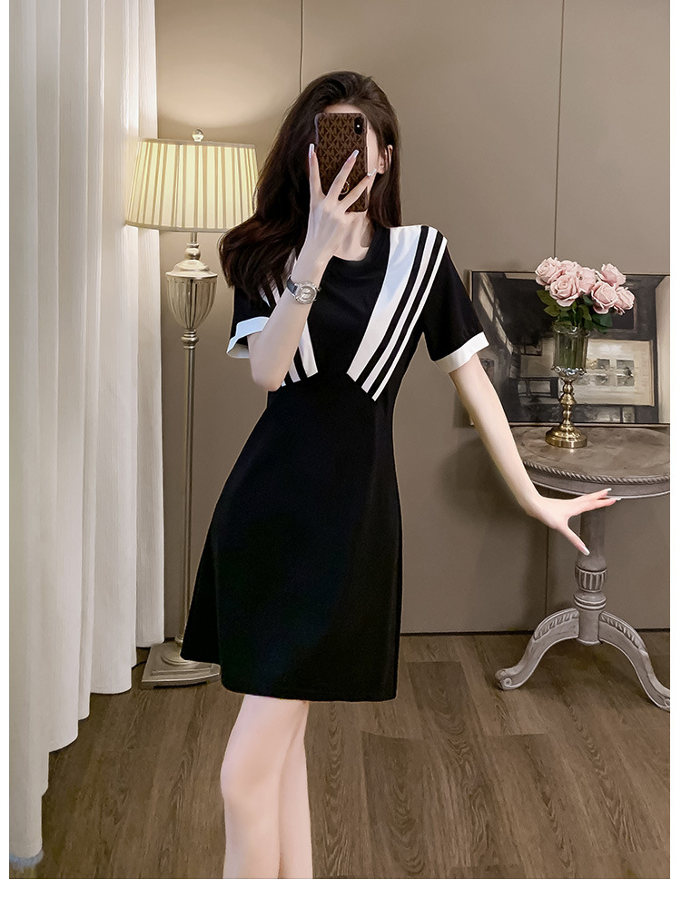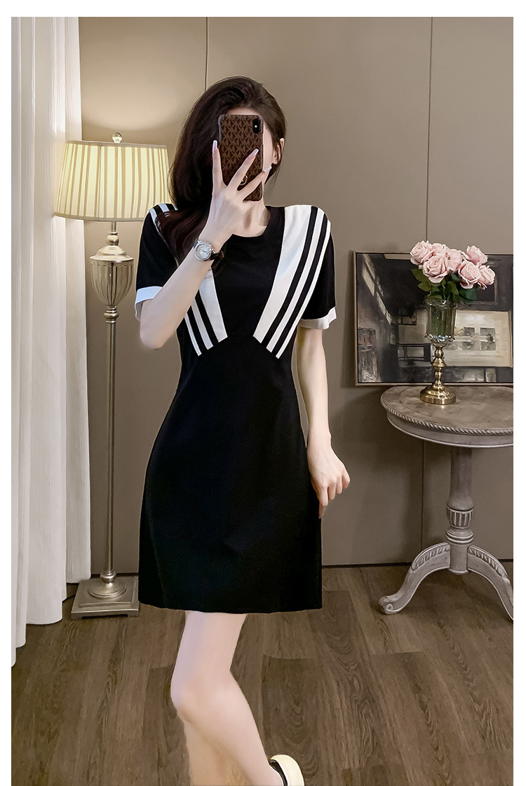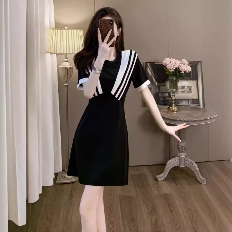 黑色休闲连衣裙女夏季2024显瘦气质针织小黑裙洋气减龄小个子裙子