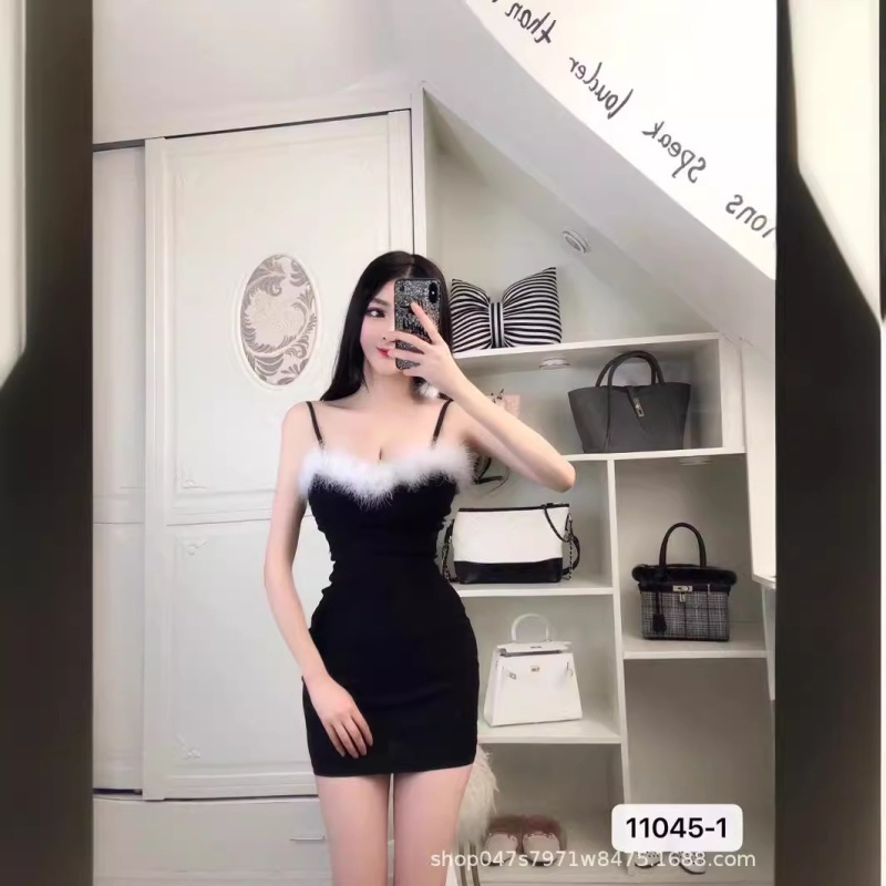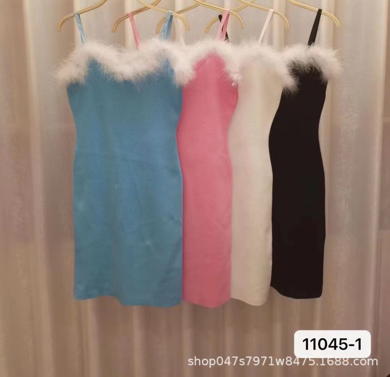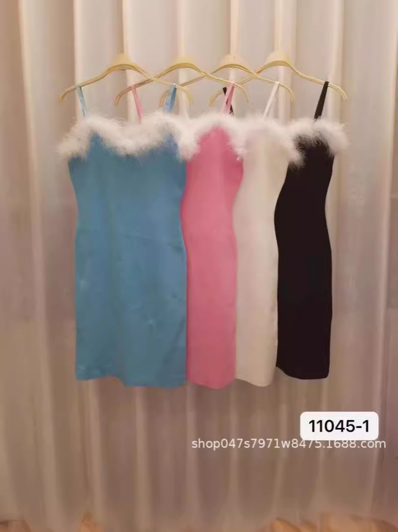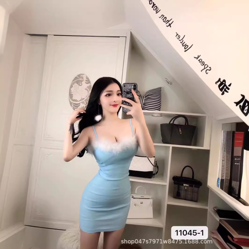 新款修身可爱毛毛包臀裙主播同款性感甜美显瘦夜店吊带连衣裙