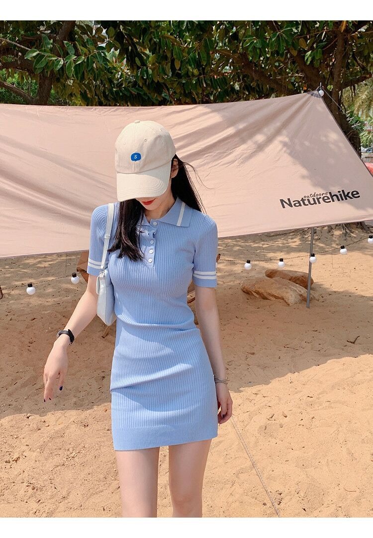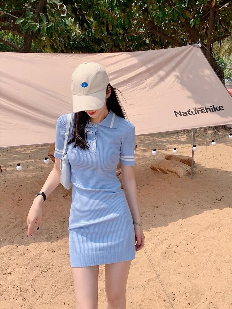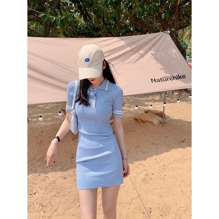 2023新款小香风针织连衣裙女夏季气质短裙小个子收腰显瘦辣妹裙子