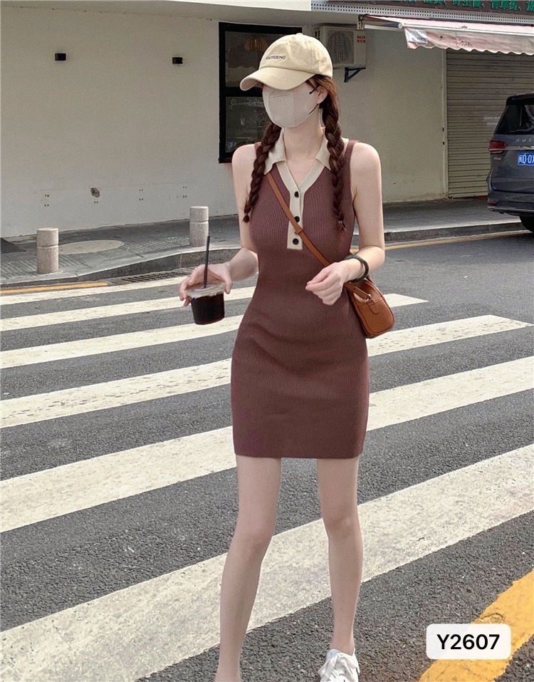 外贸爆款推荐polo连衣裙韩版夏季紧身显瘦时尚中长款纯欲风吊带裙