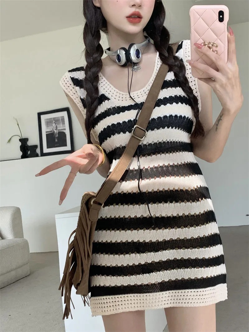 2023夏季韩版设计感显瘦条纹无袖连衣裙女-专拍链接,误拍不发货
