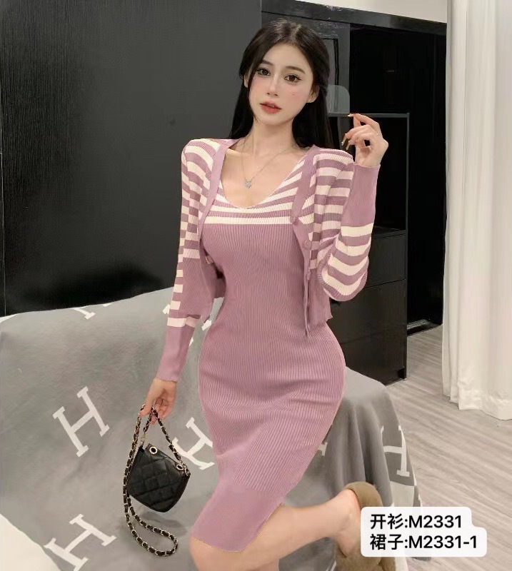2023秋季辣妹条纹吊带连衣裙甜美盐系穿搭打底包臀裙外搭针织裙女