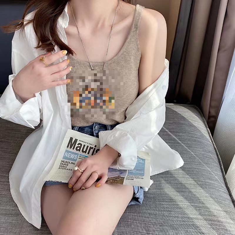 冰丝小吊带无袖背心女夏外穿内搭宽松韩版短款v领针织打底衫上衣