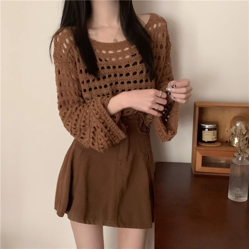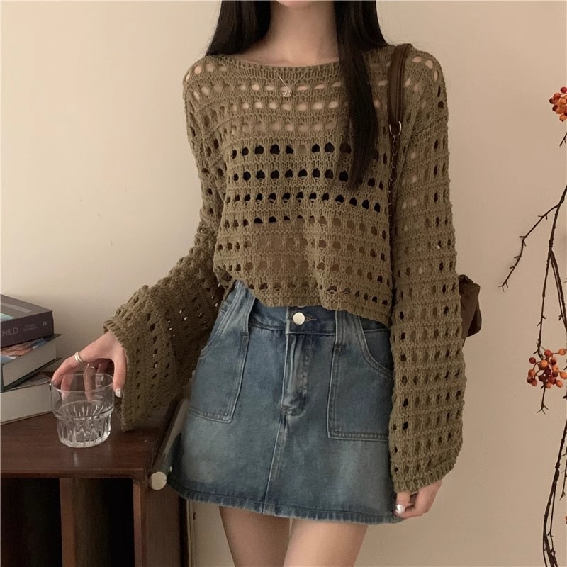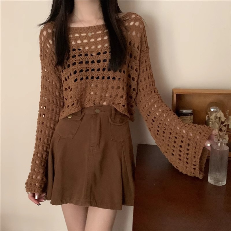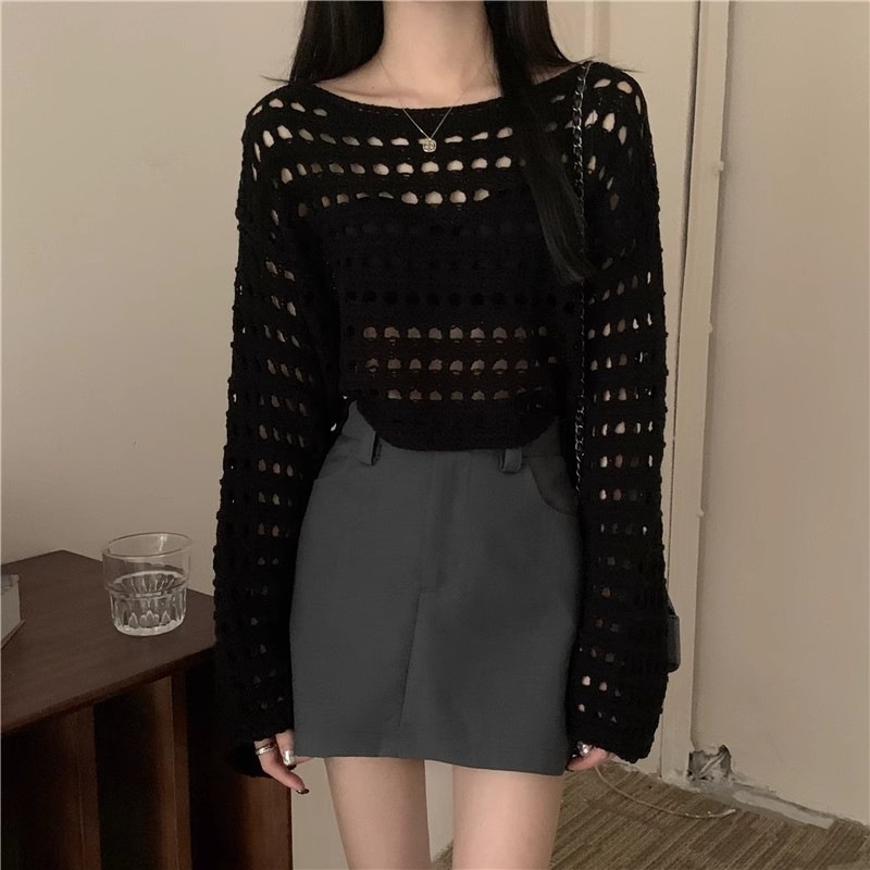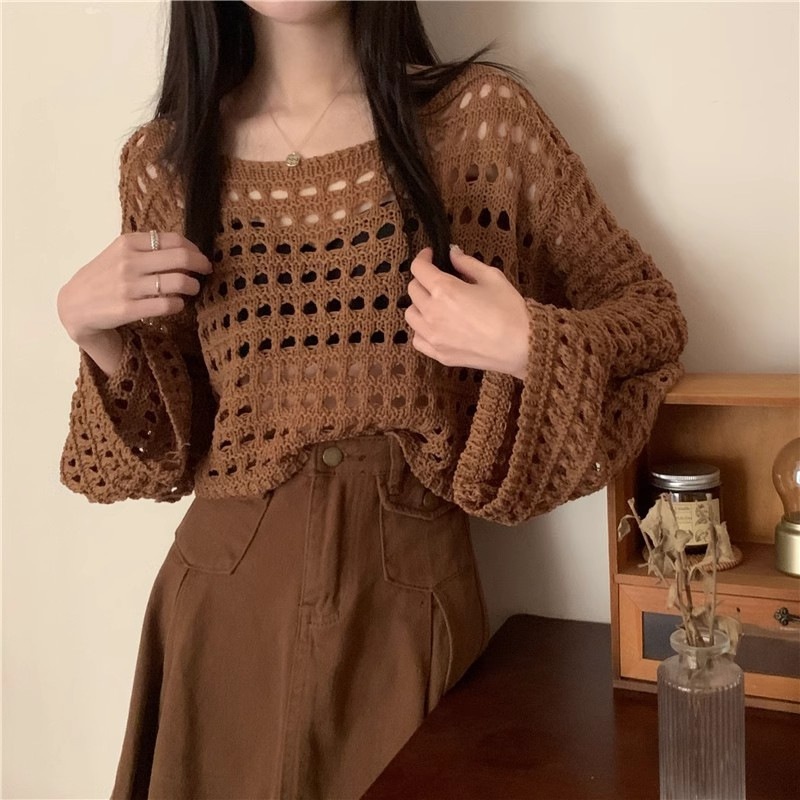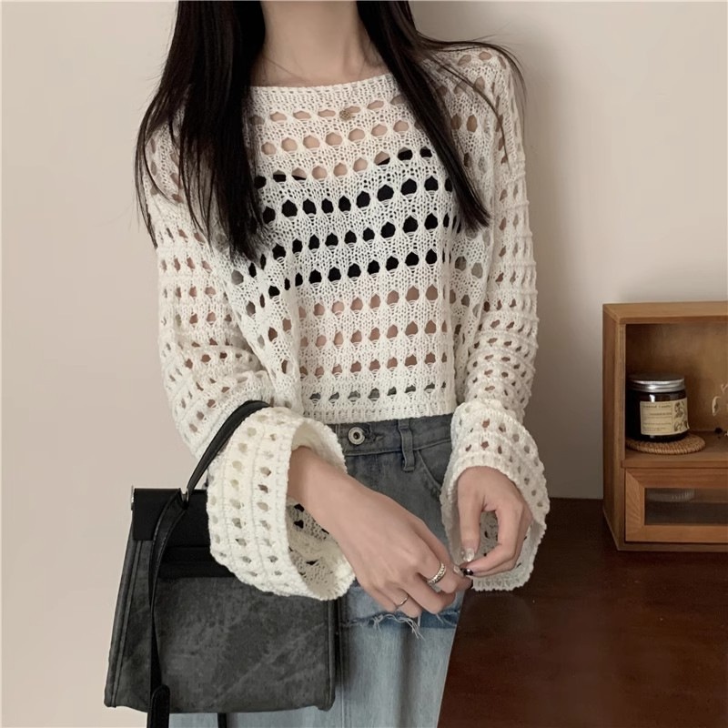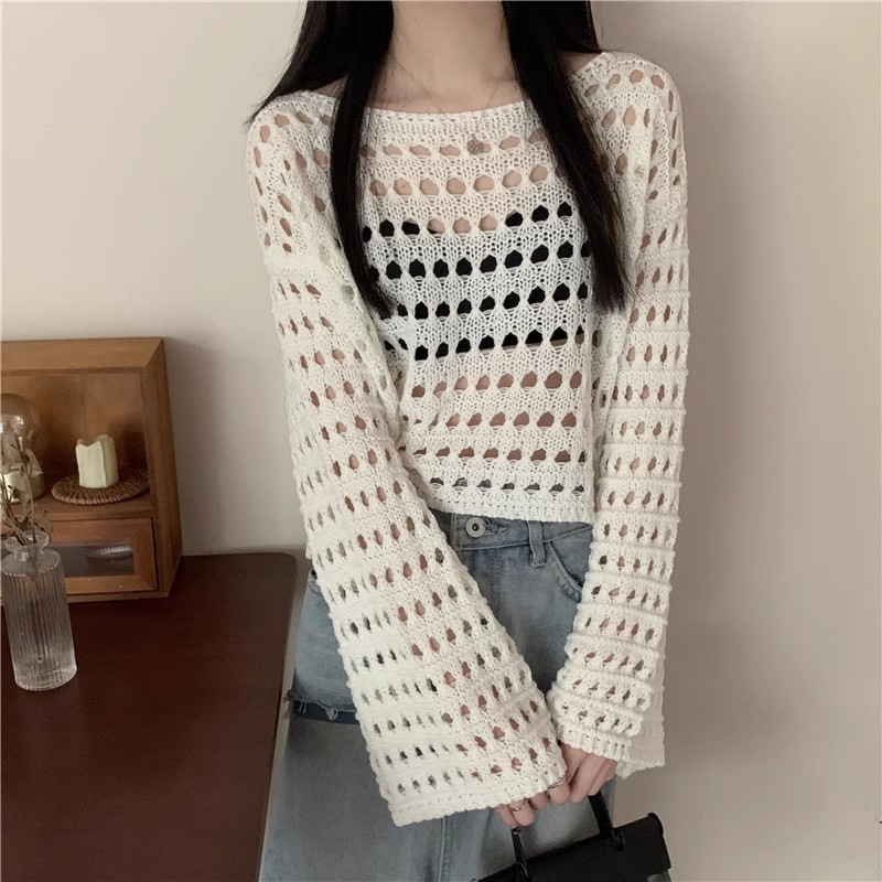 法式新款长袖镂空短款针织衫女春夏款时尚薄款防晒衣罩衫性感上衣