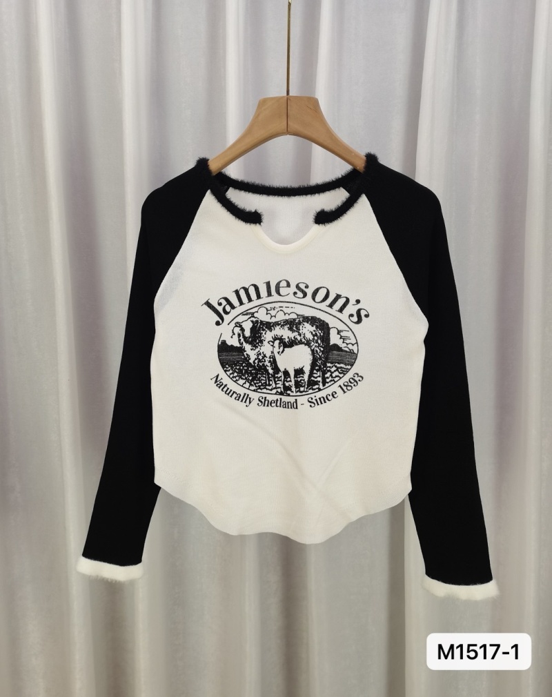 纯欲风正肩t恤长袖 2023春秋新款设计感辣妹美式插肩修身短款上衣