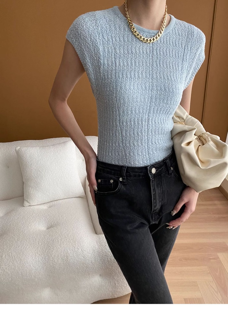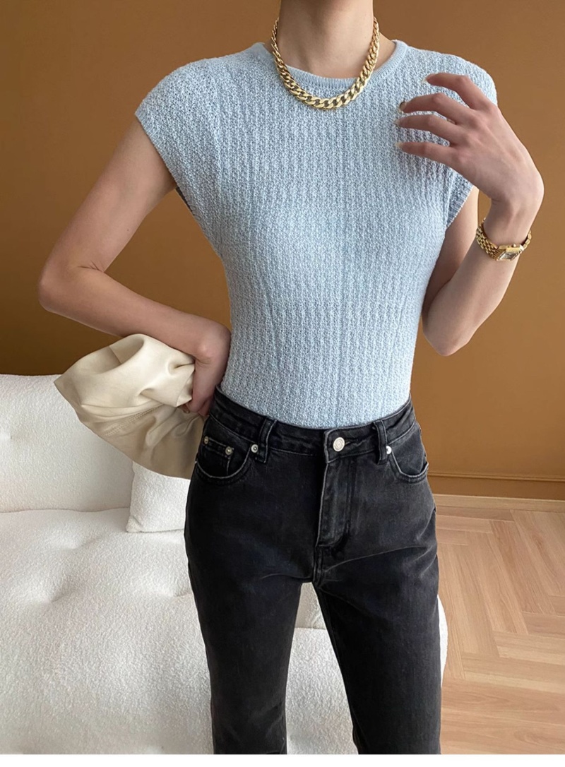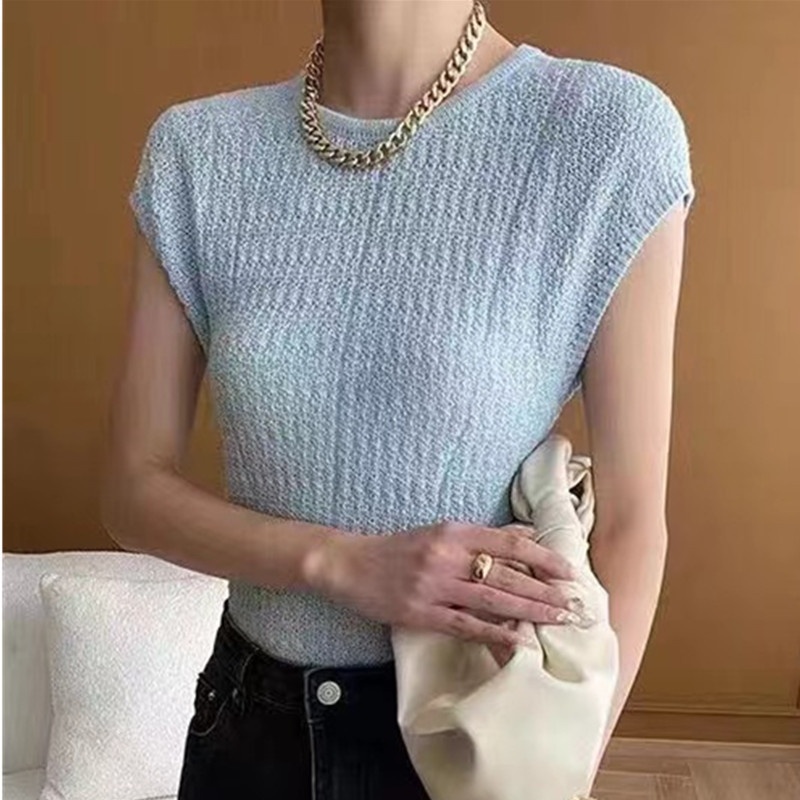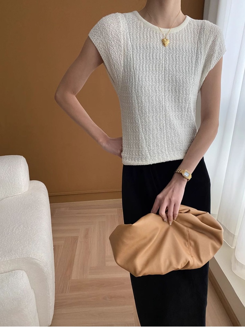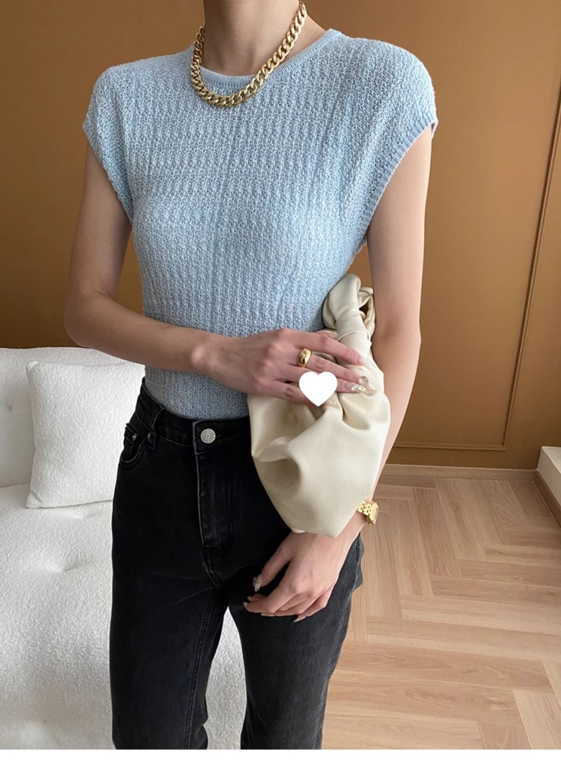 法式肌理感无袖背心女2024年秋冬新款气质正肩小飞袖针织衫短袖女
