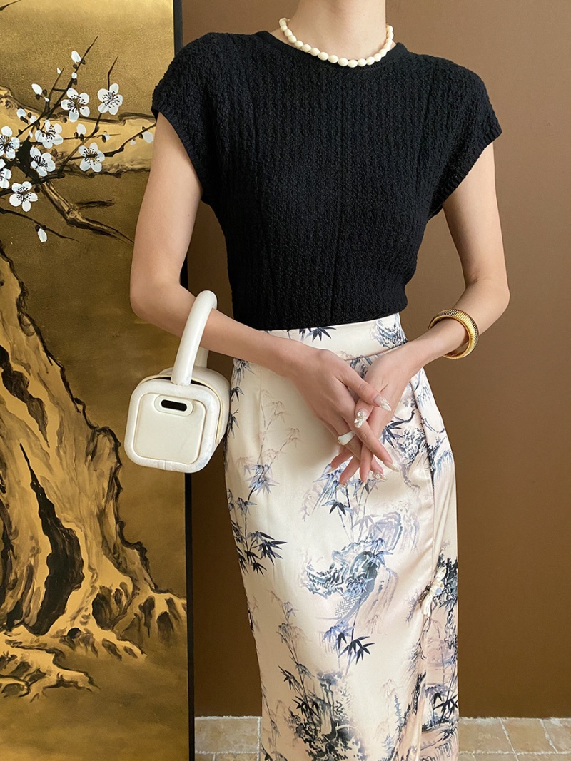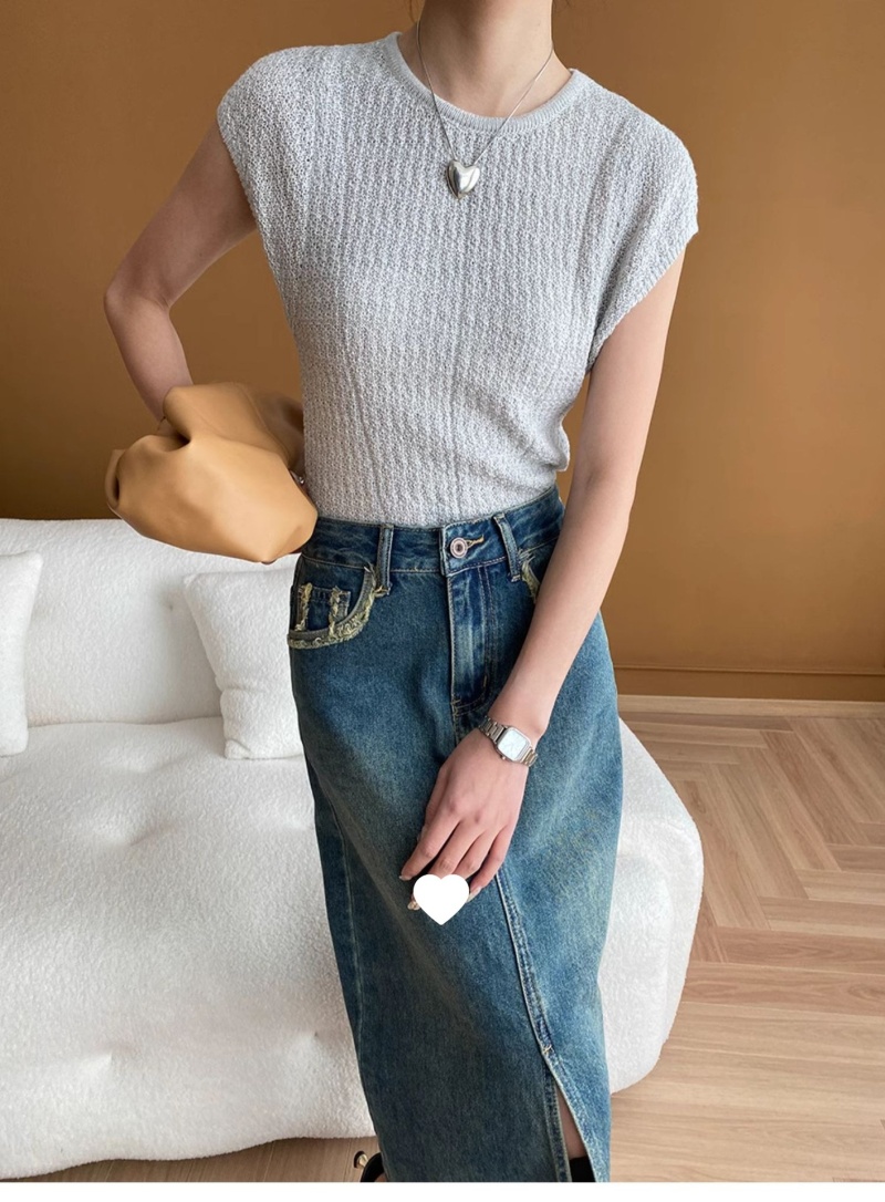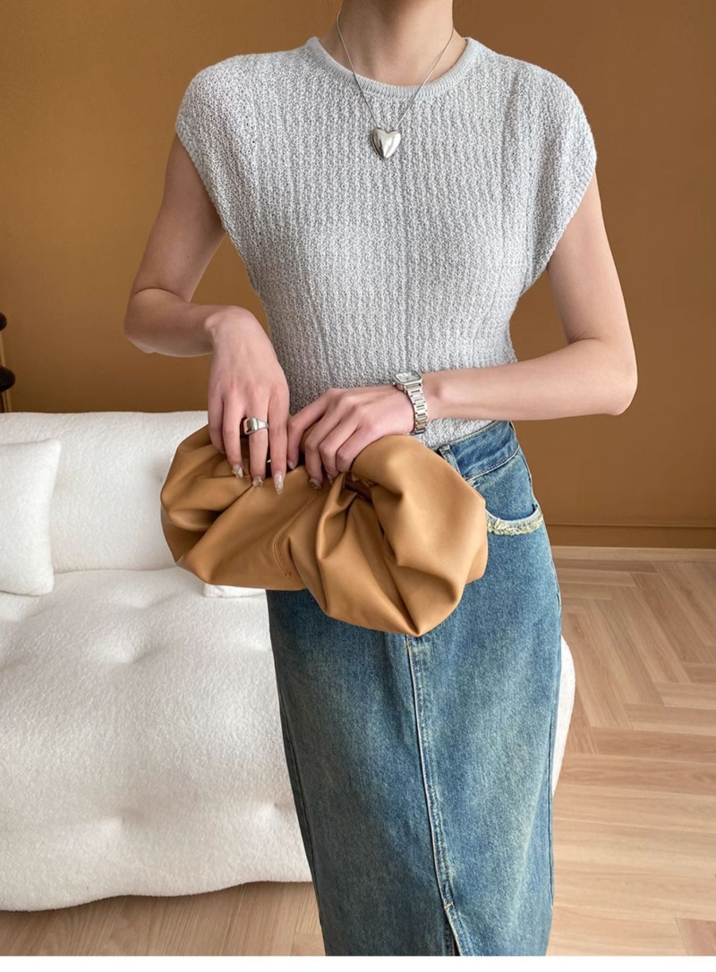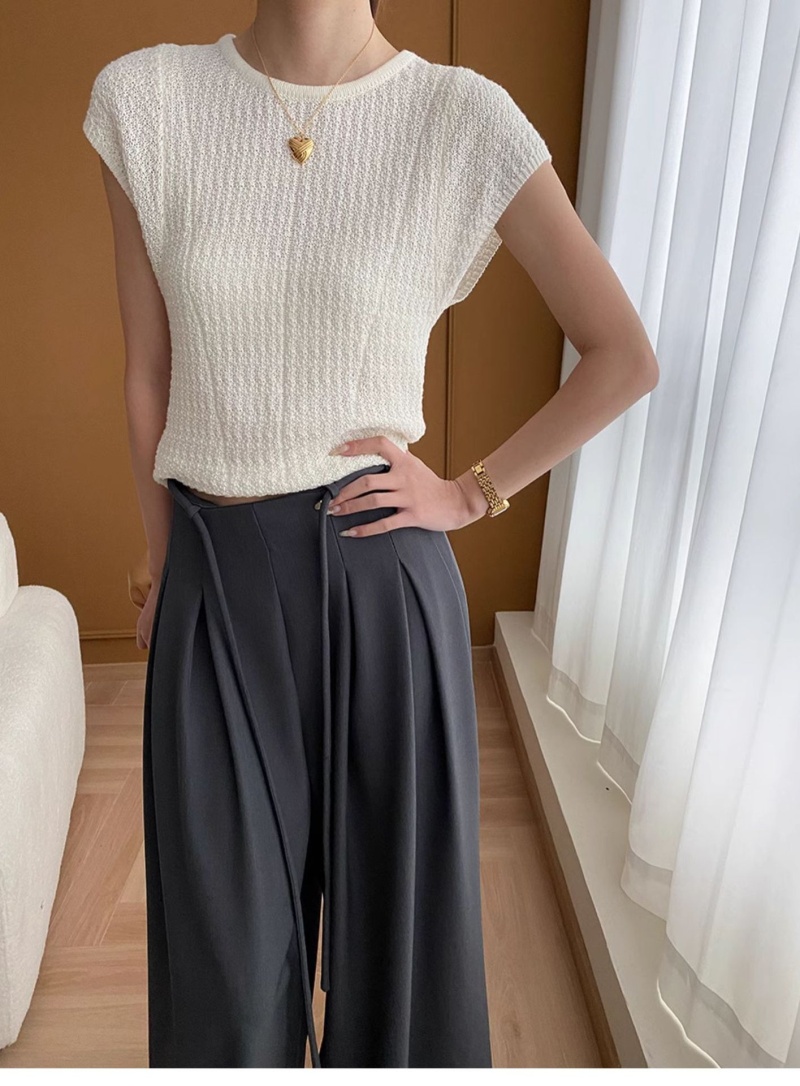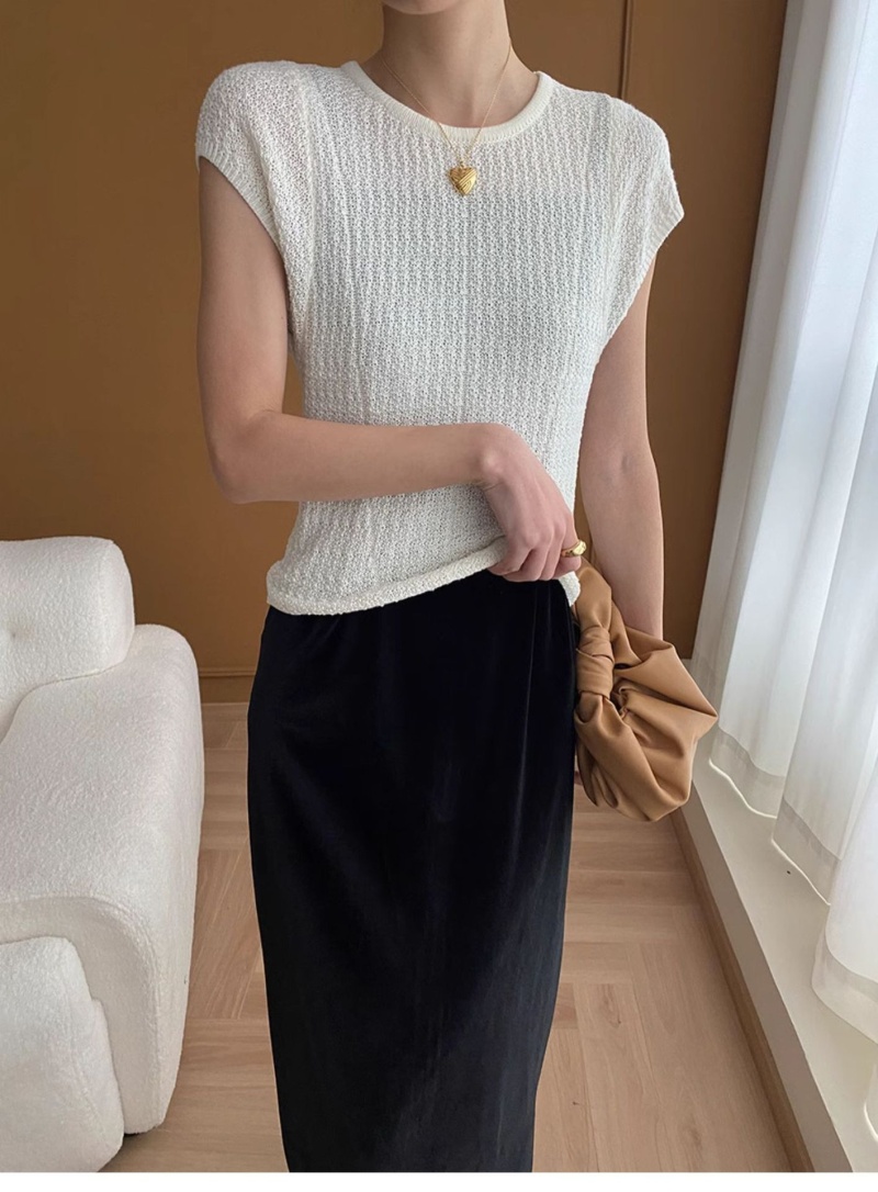 法式肌理感无袖背心女2024年秋冬新款气质正肩小飞袖针织衫短袖女
