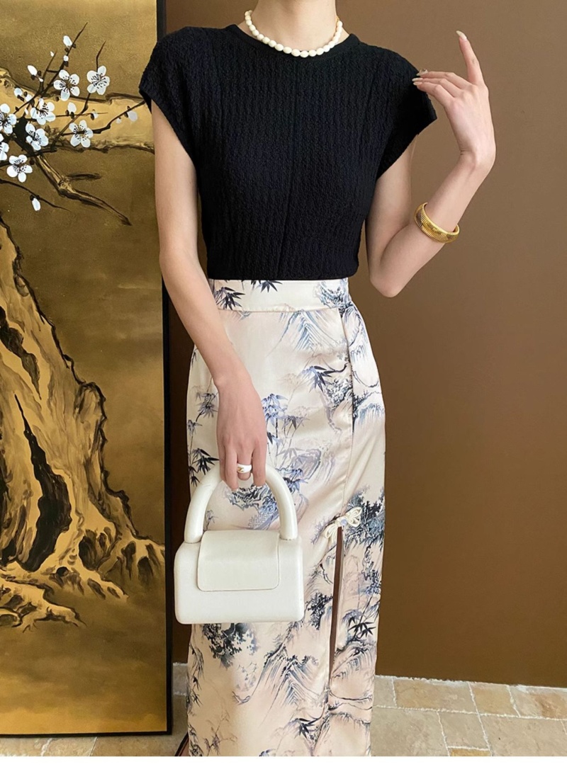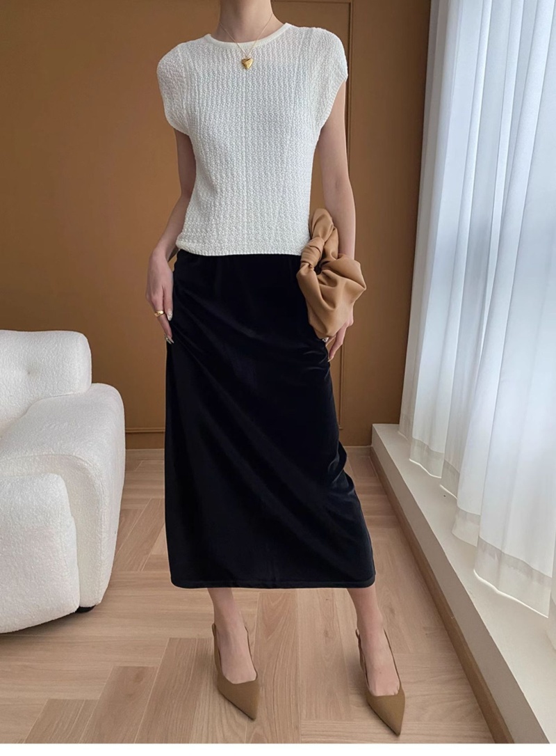 新款复古半高领修身针织衫女无袖百搭打底背心上衣