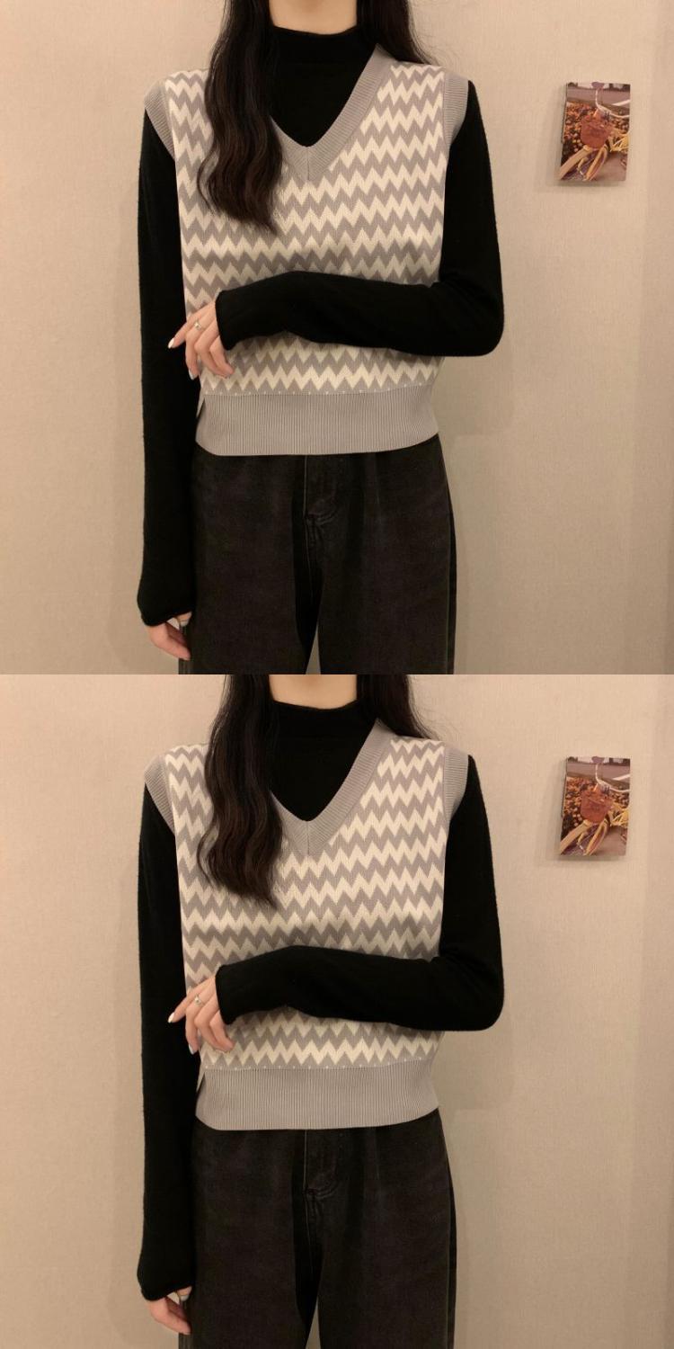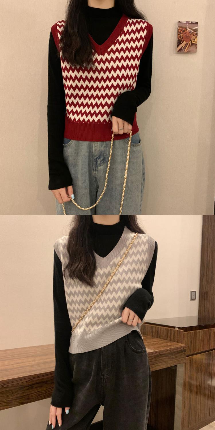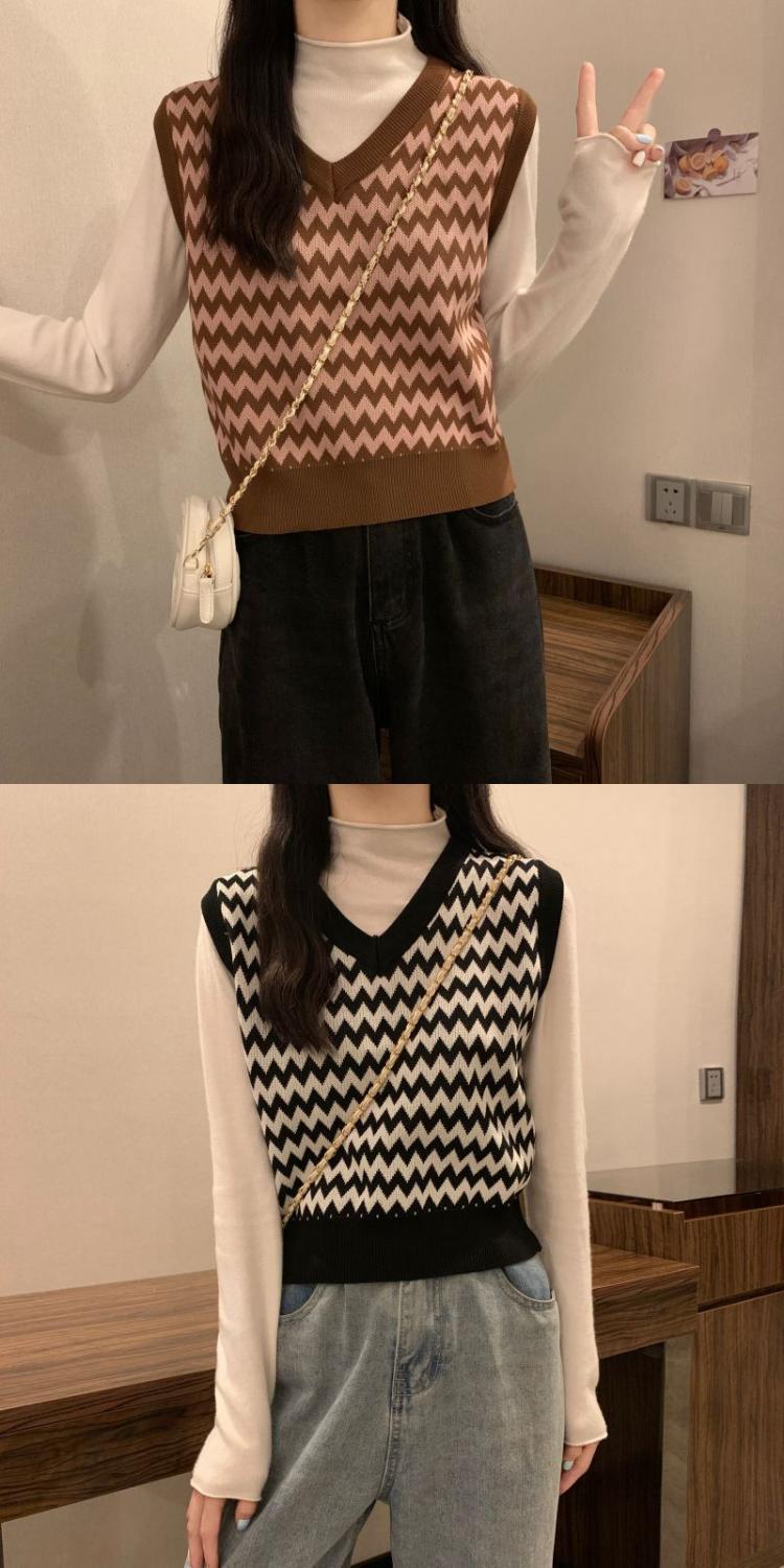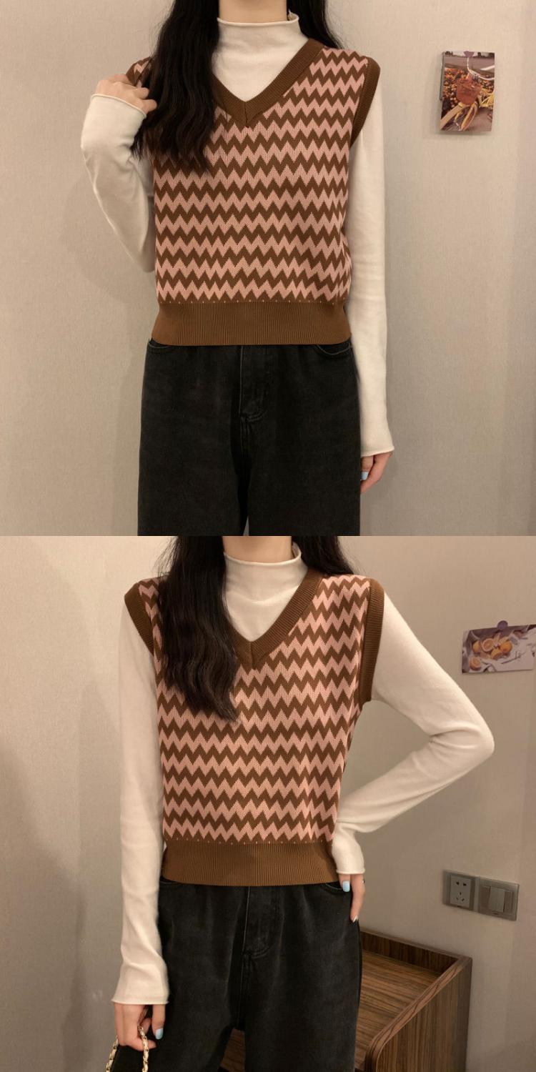 条纹针织马甲女秋冬外搭短款马夹小背心叠穿休闲百搭无袖坎肩毛衣