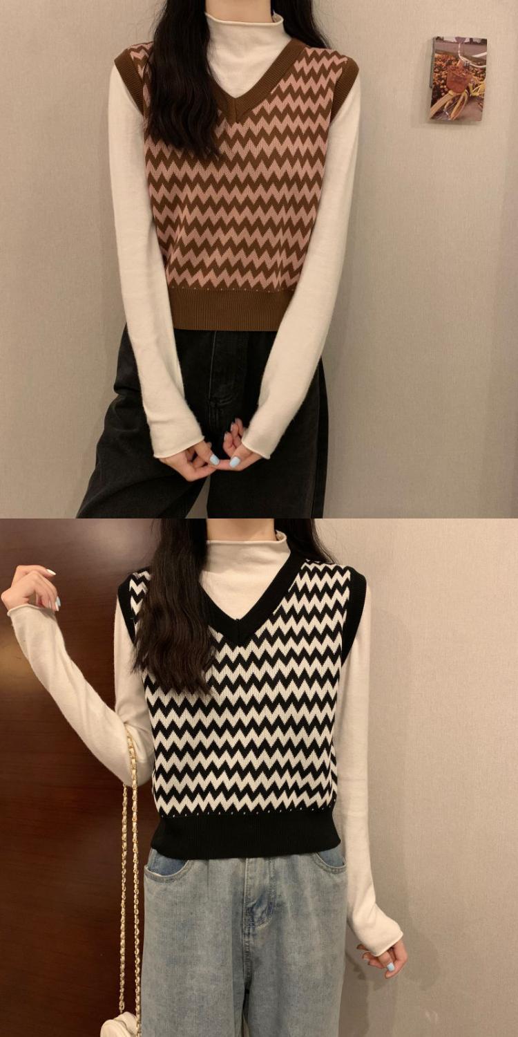 新款复古半高领修身针织衫女无袖百搭打底背心上衣
