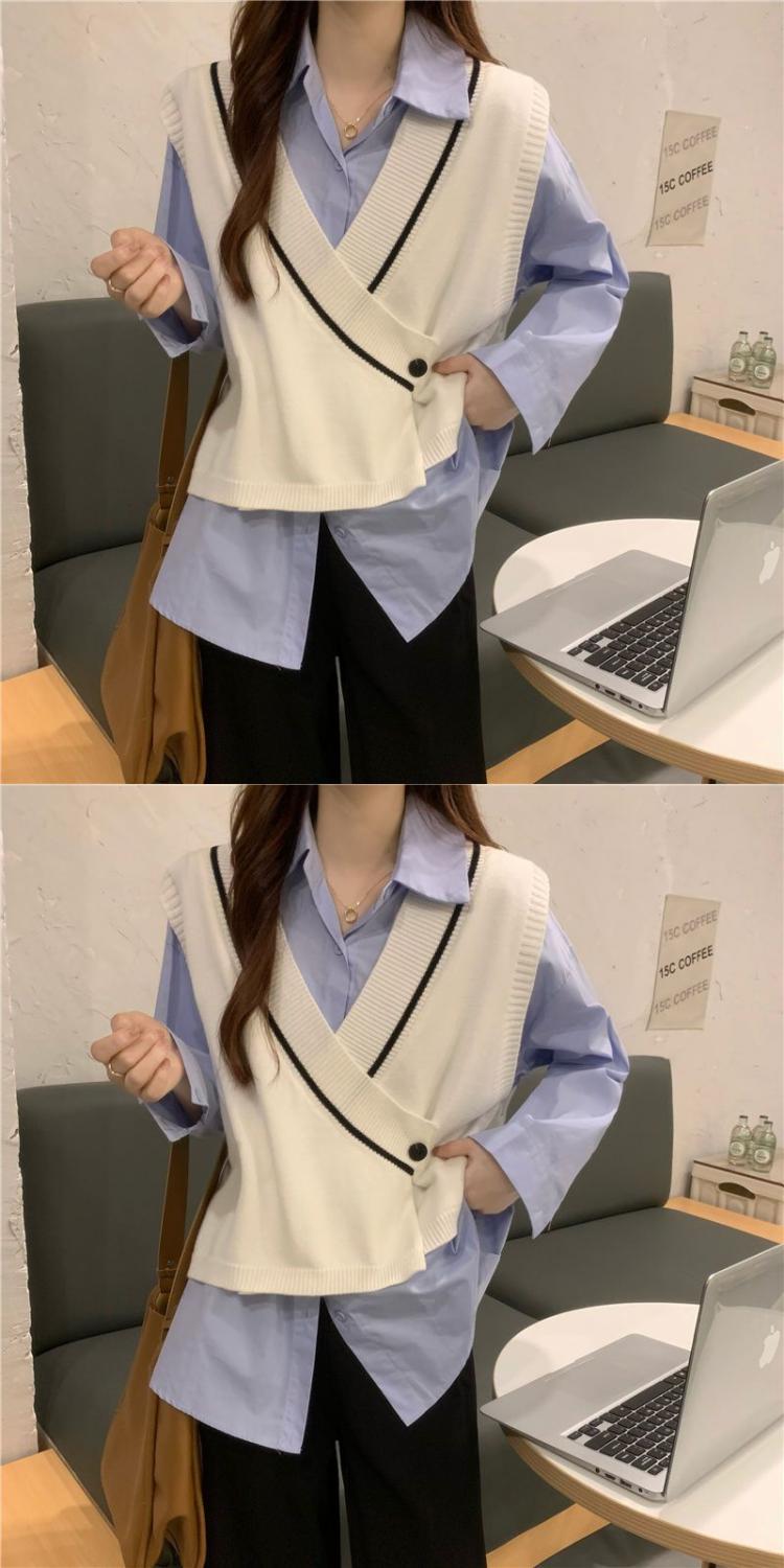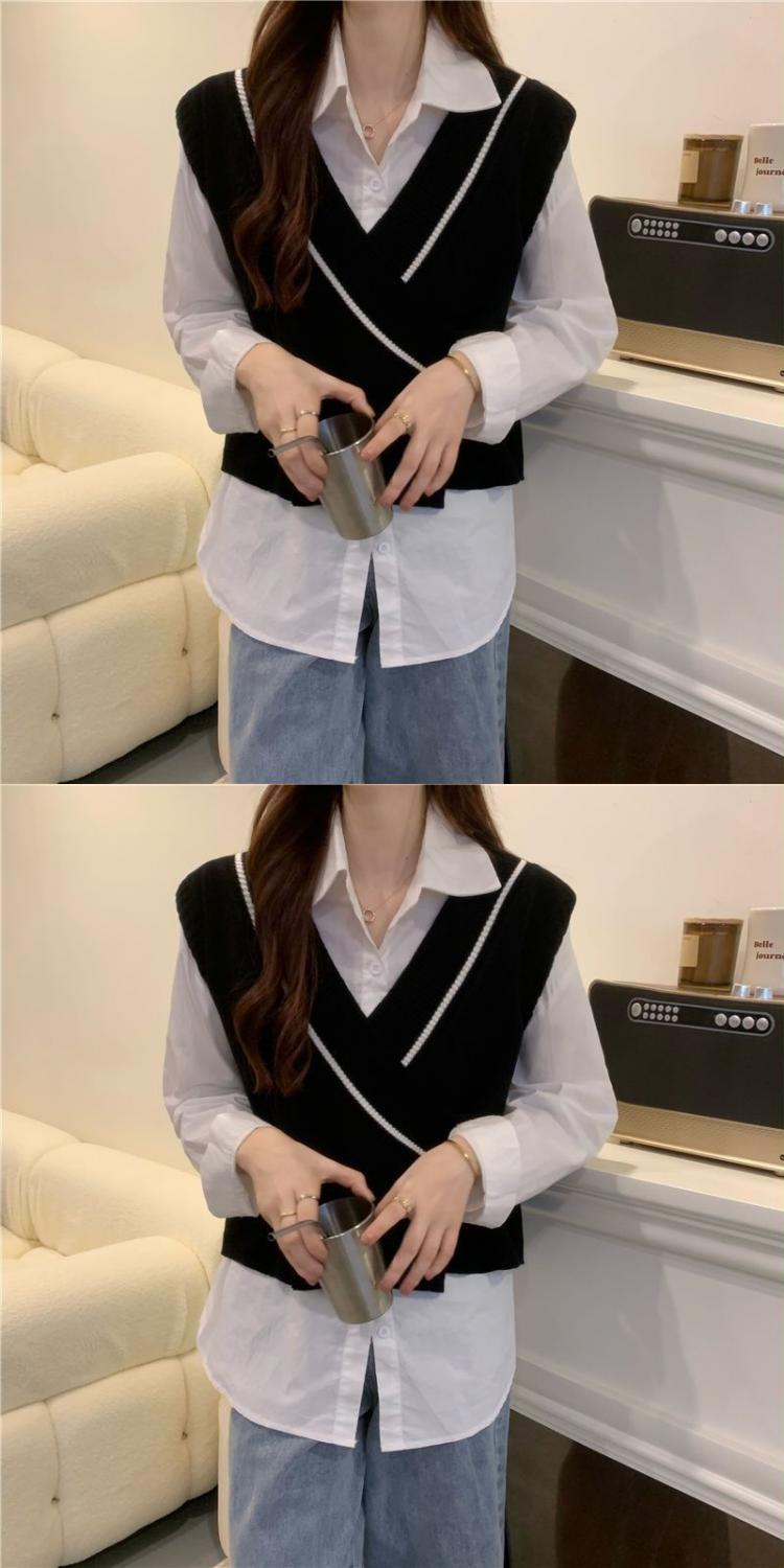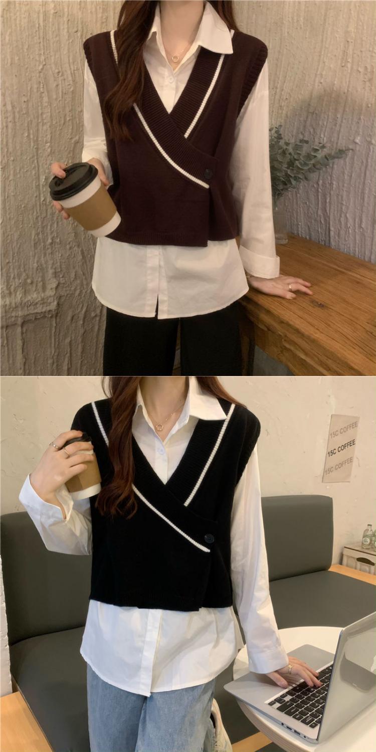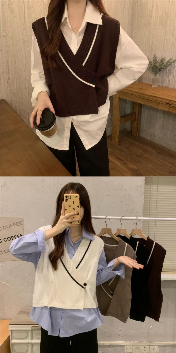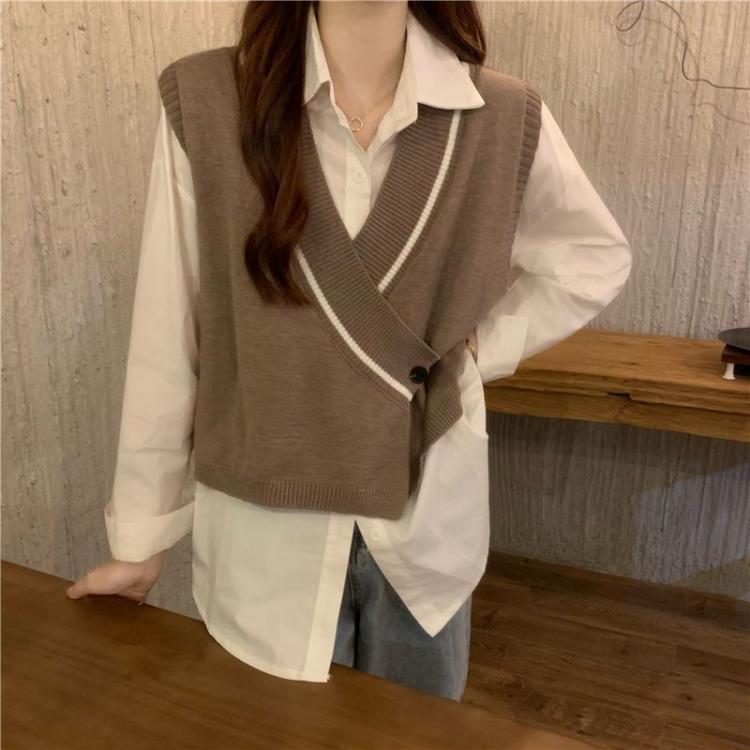 复古坎肩针织马甲女秋季2022新款叠穿无袖外搭V领短款背心毛衣ins
