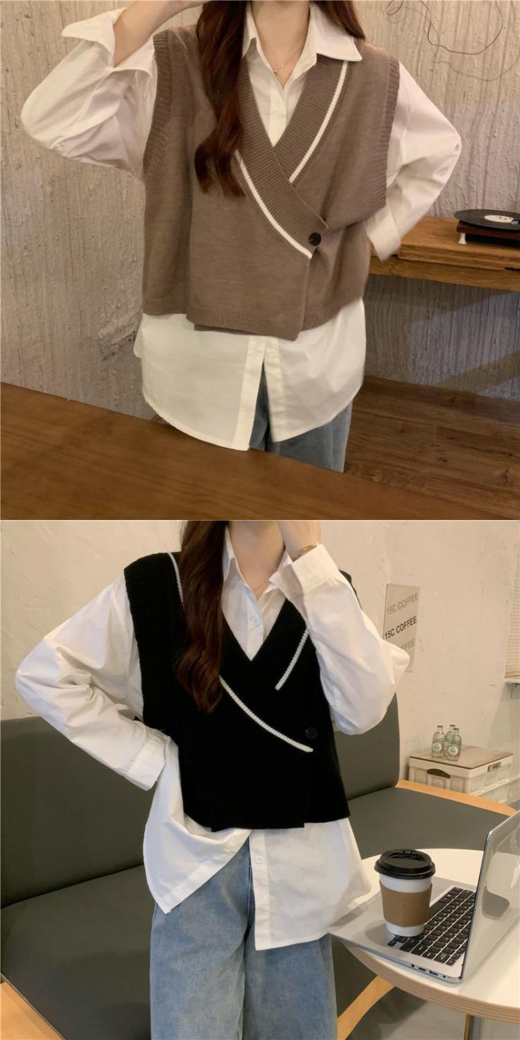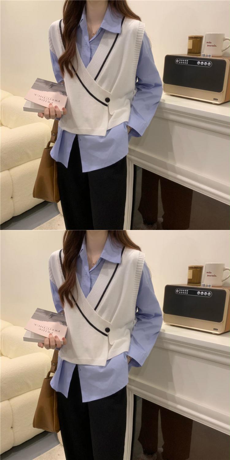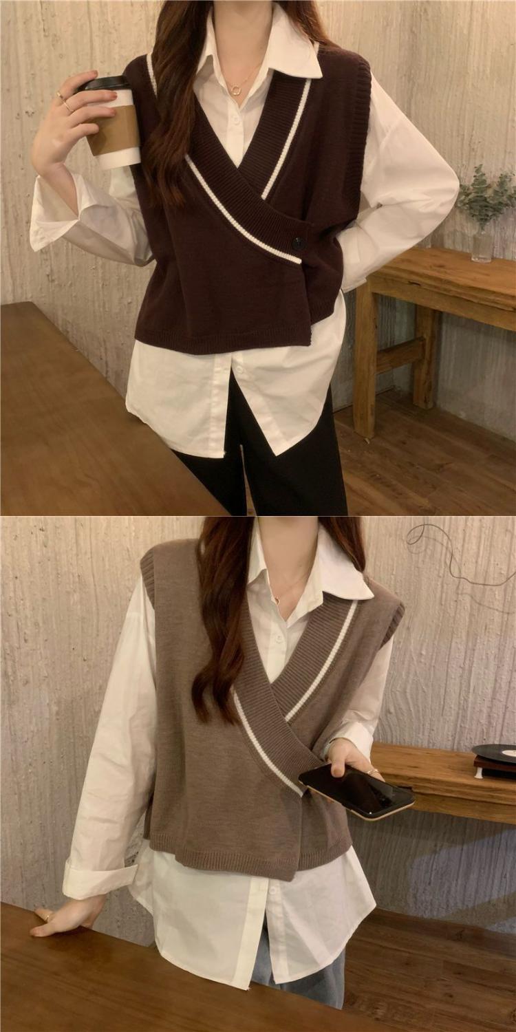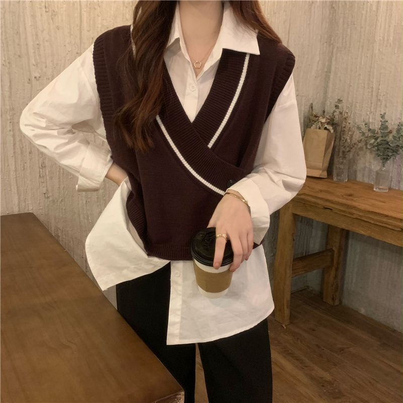 复古坎肩针织马甲女秋季2022新款叠穿无袖外搭V领短款背心毛衣ins