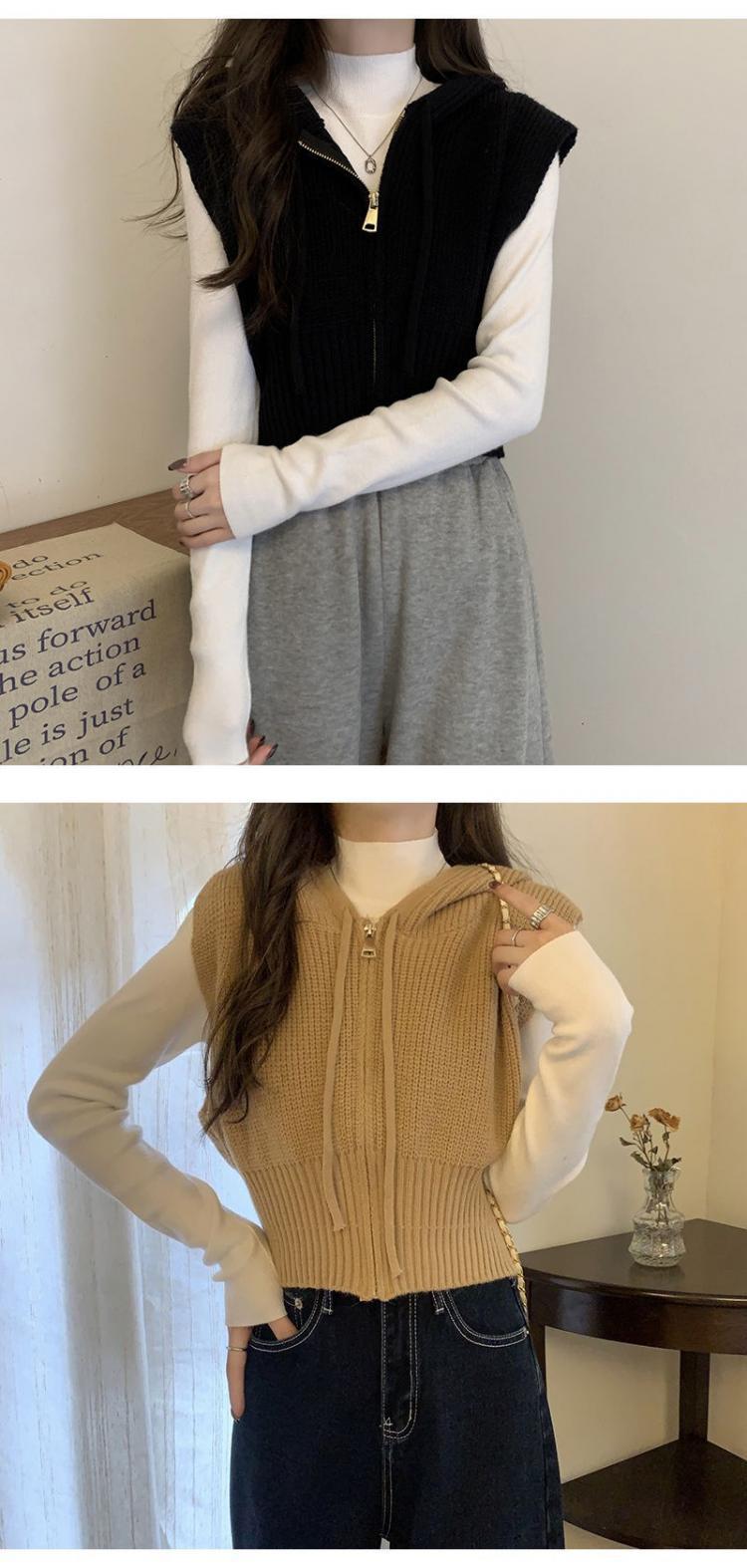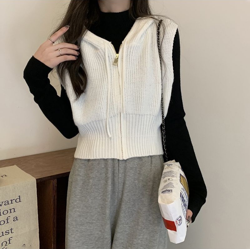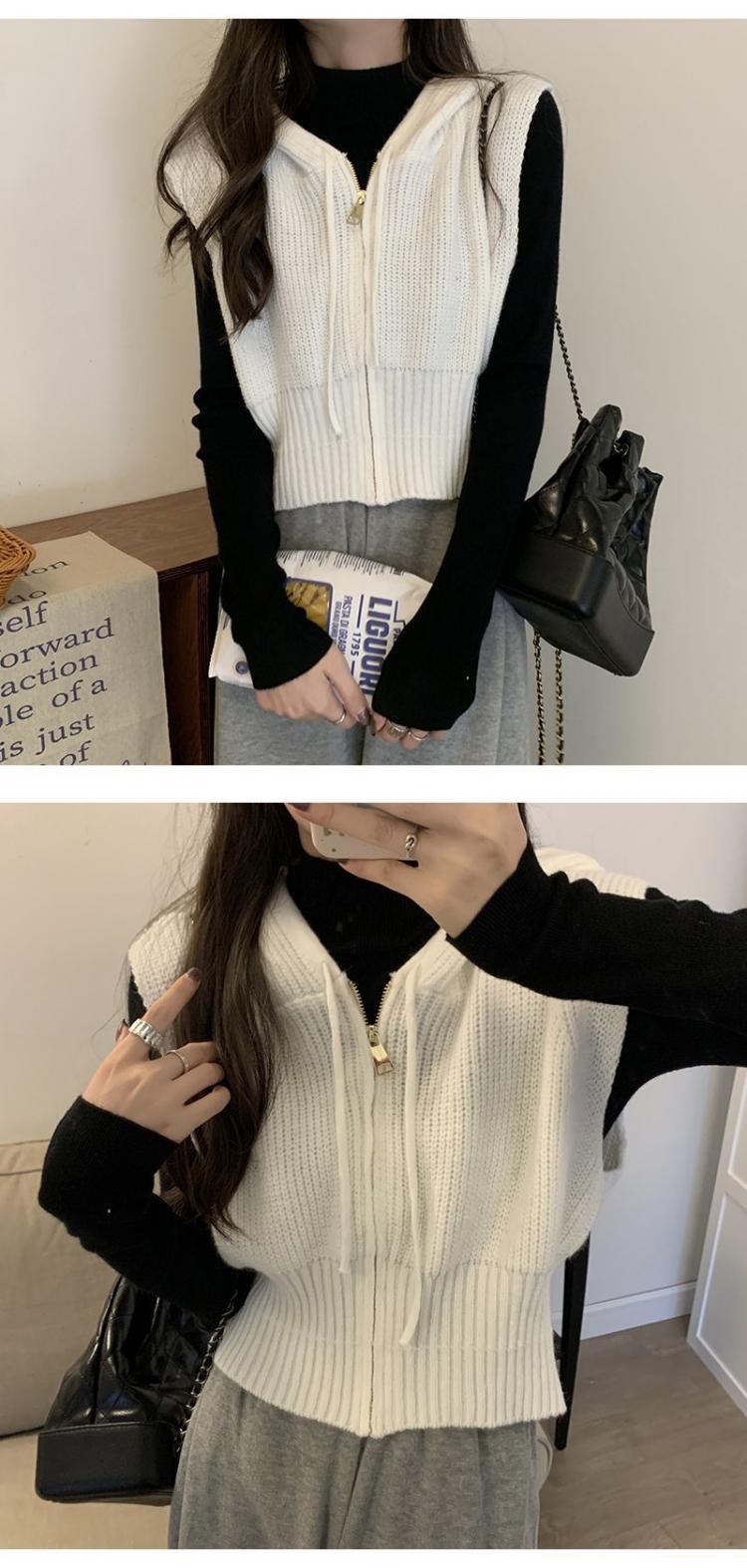 短款收腰针织连帽马甲背心2022秋冬新款休闲百搭纯色个性拉链上衣
