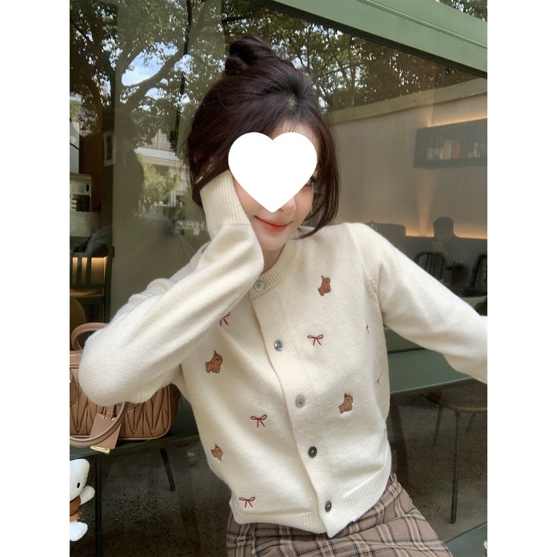 小香风温柔系针织衫毛衣女2024春秋季新款立体蝴蝶结短款开衫外套