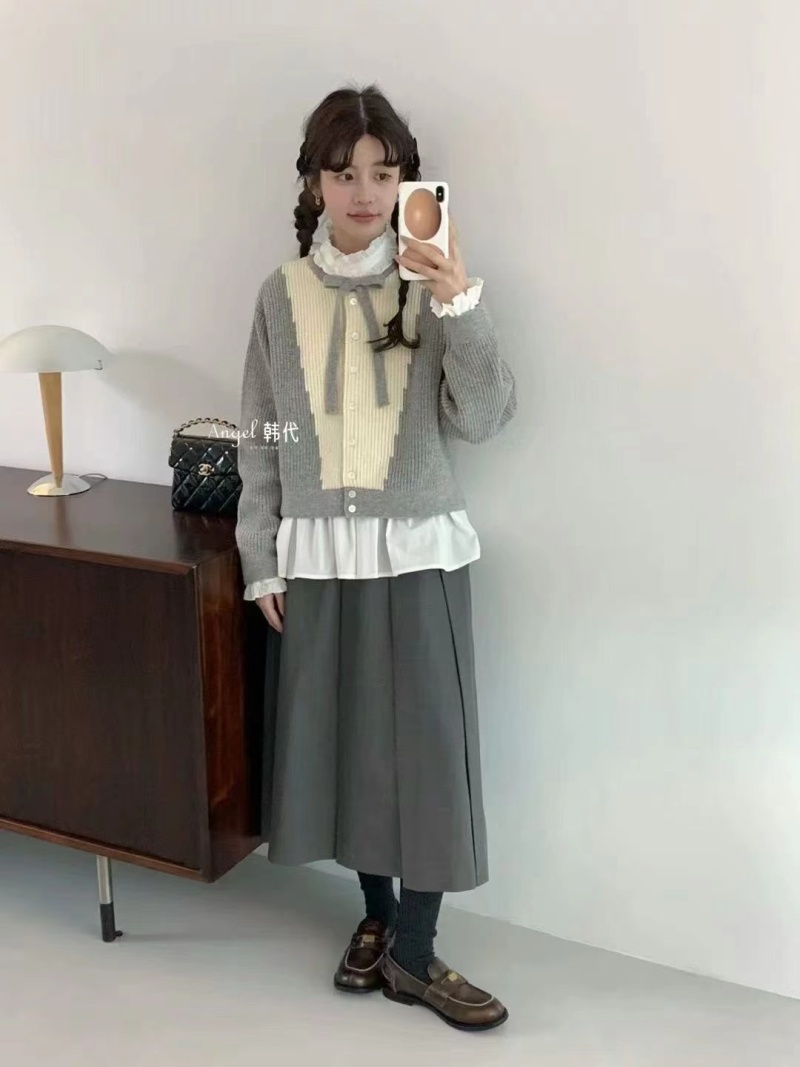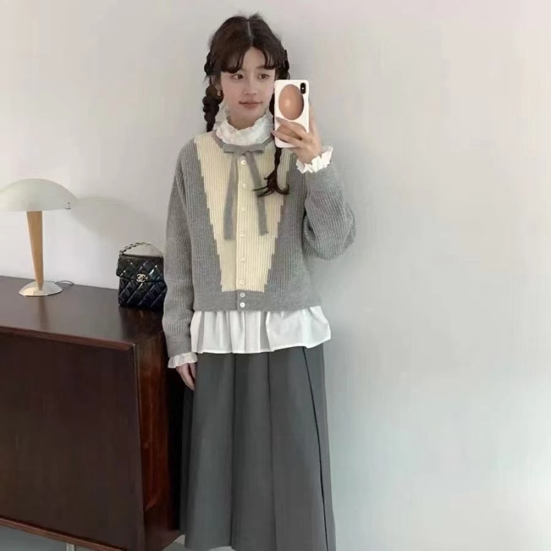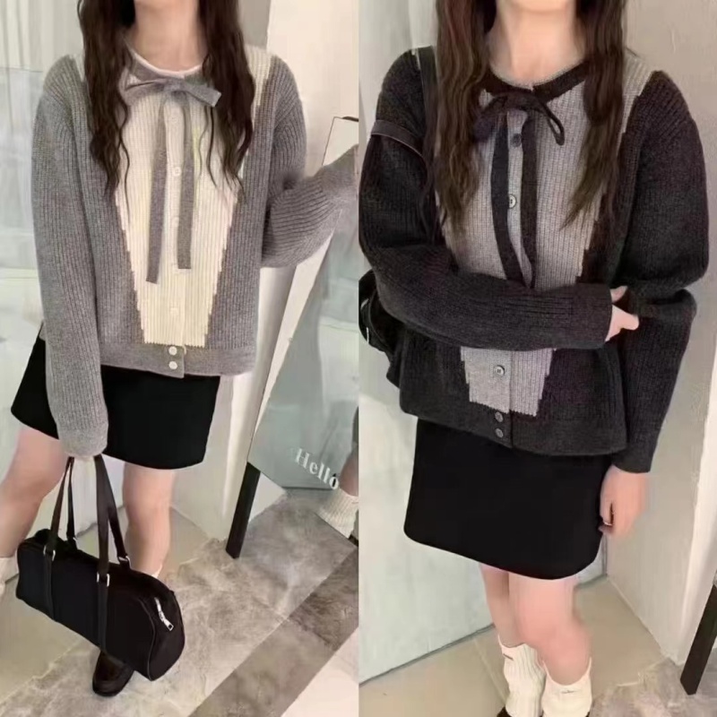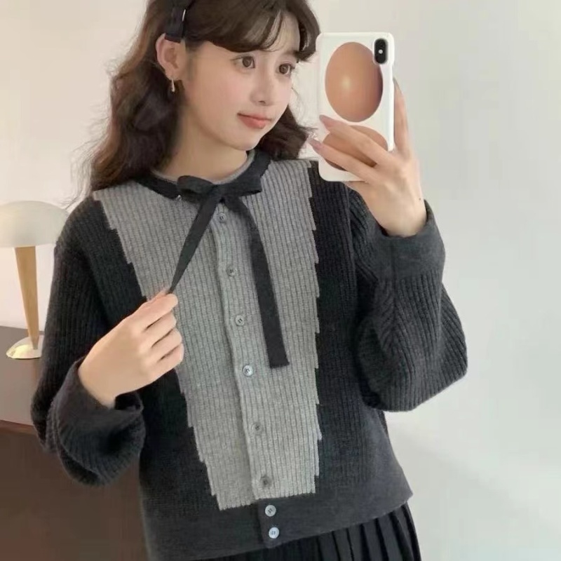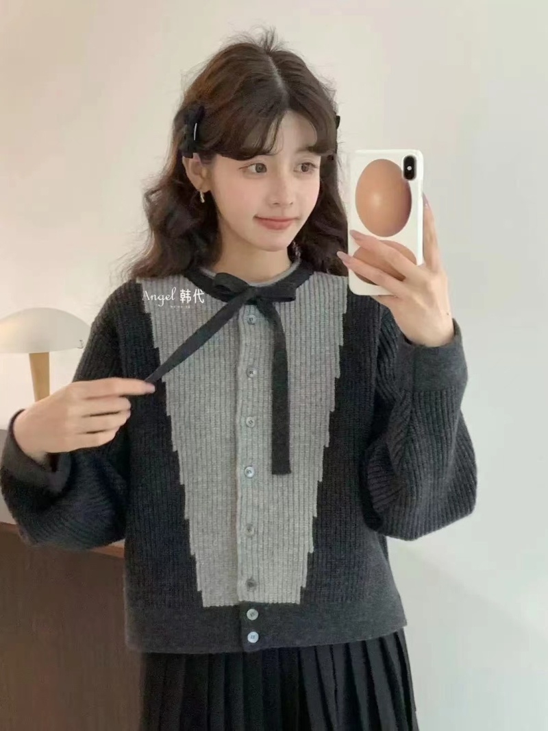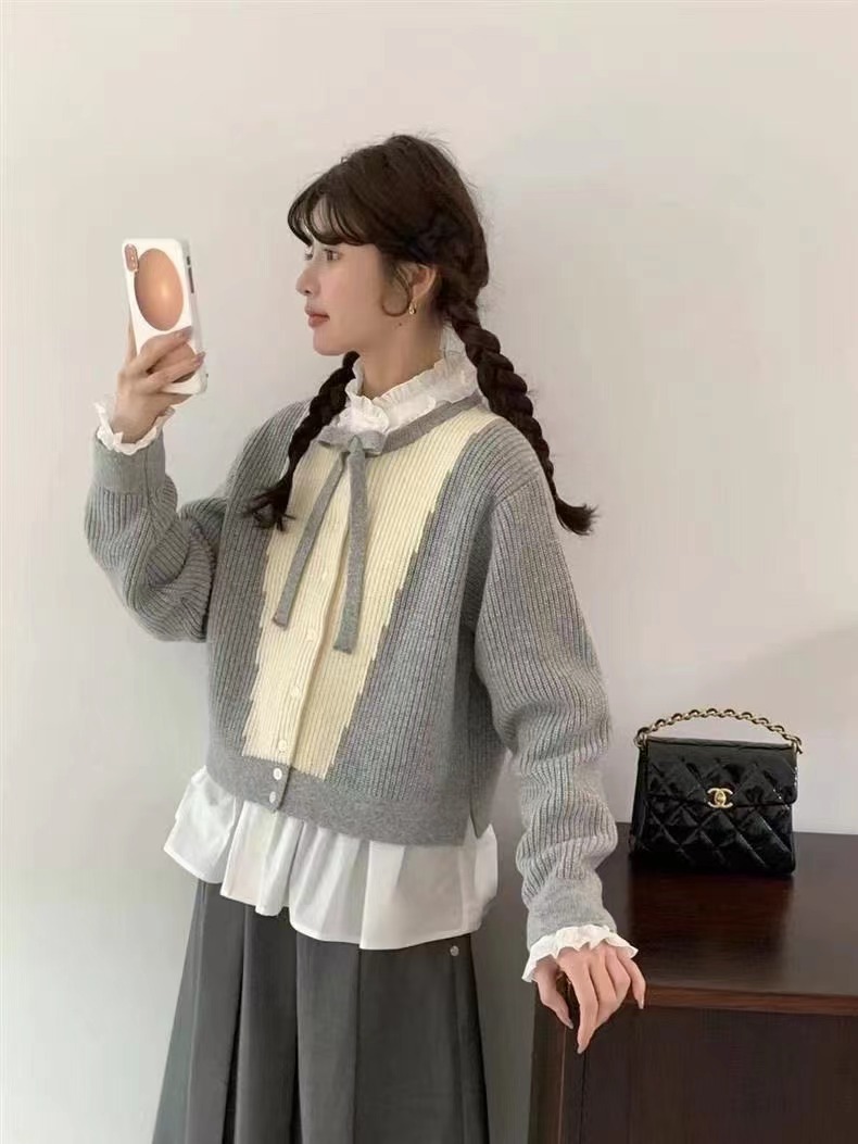 2024秋冬新款韩系小众系带蝴蝶结毛衣外套针织开衫小个子外穿上衣
