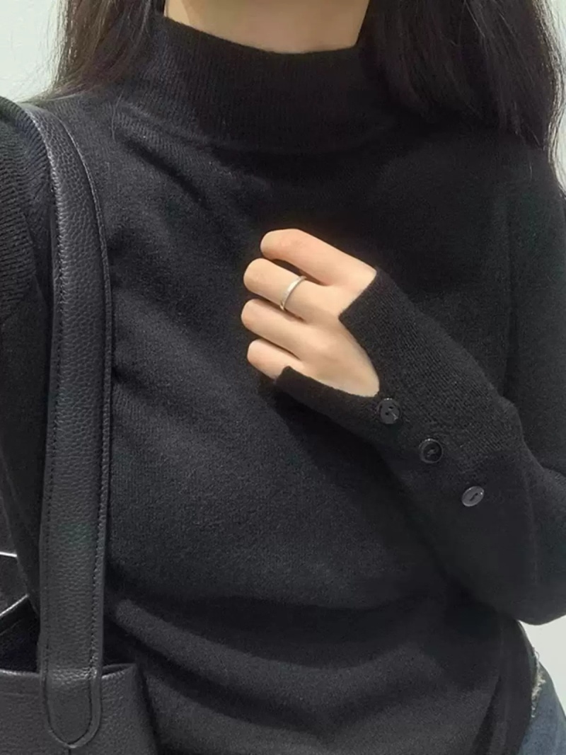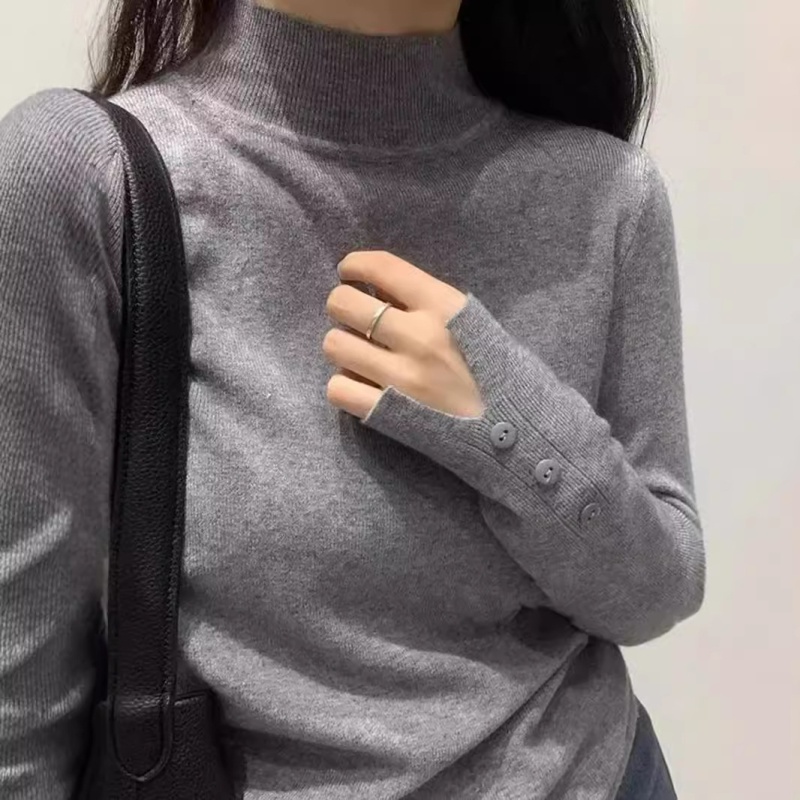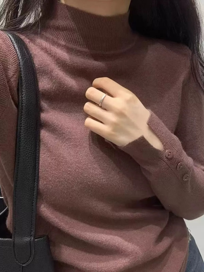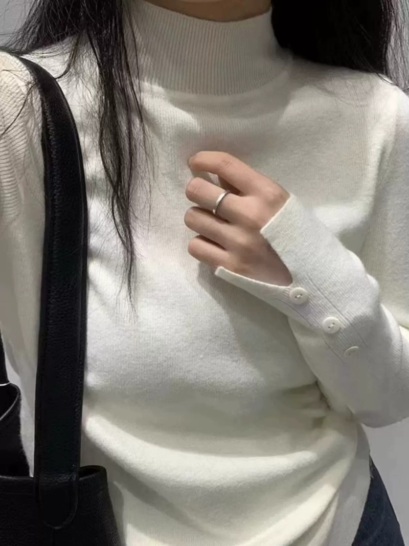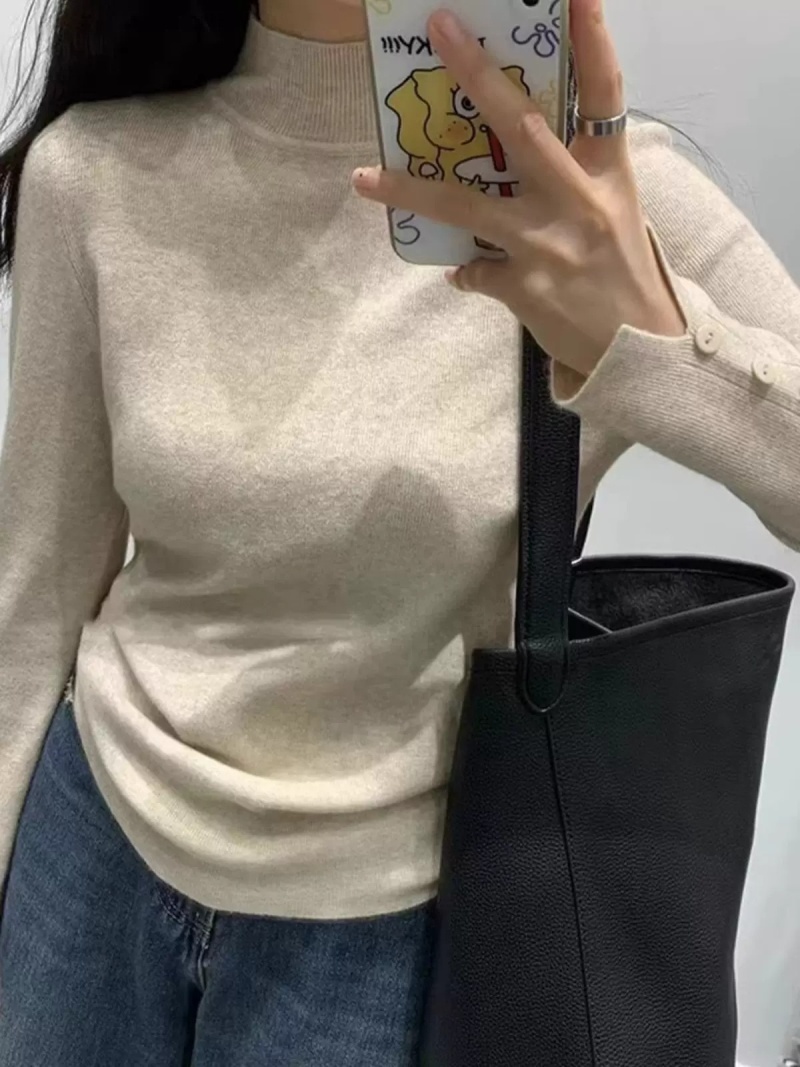 秋冬新款半高领修身长袖针织衫上衣女秋装高级感内搭软糯打底毛衣