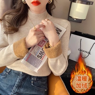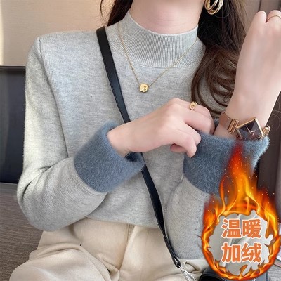 针织衫女半高领打底衫小香风内搭秋加绒毛衣2024年新款短款上衣潮