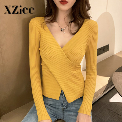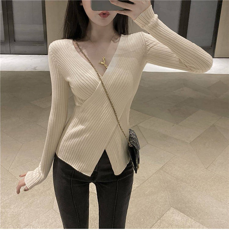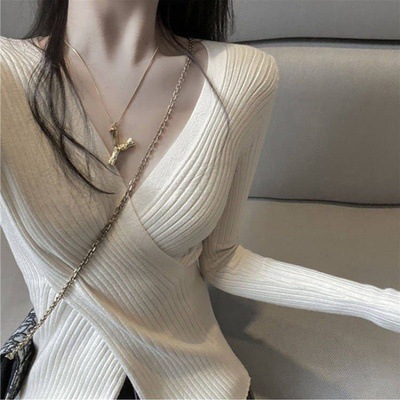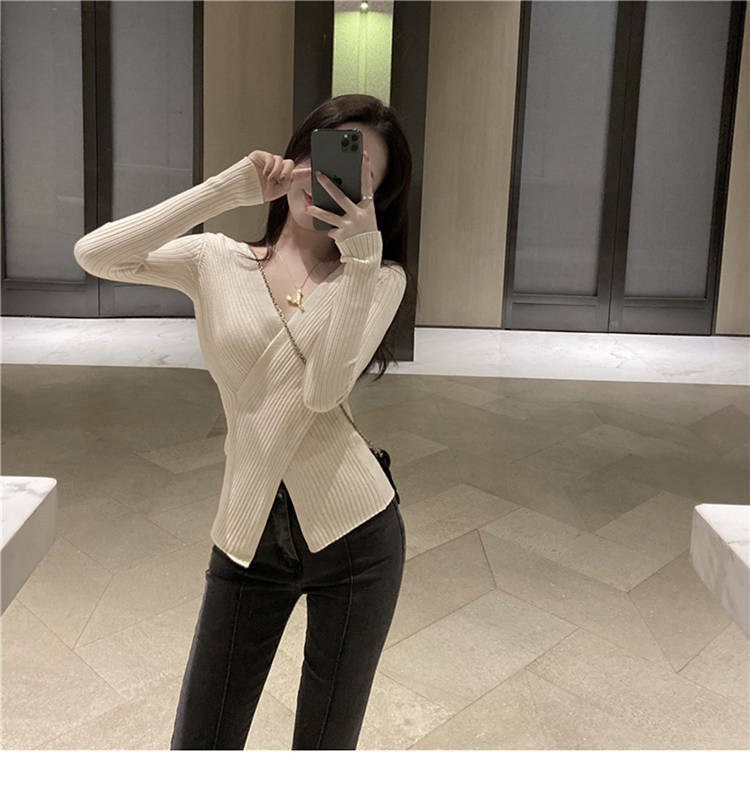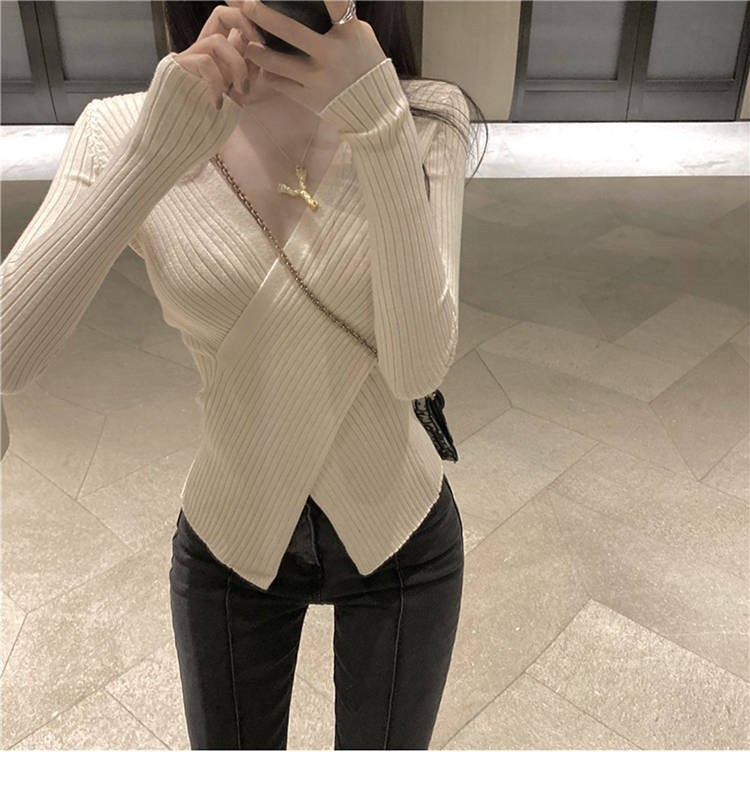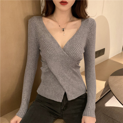 2023秋冬套头打底毛衣女士内搭修身洋气百搭性感交叉v领针织衫潮