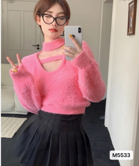 2023年新款高级感小众设计感短款黑色毛衣内搭春秋季女装辣妹上衣