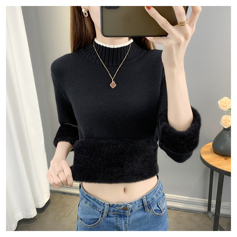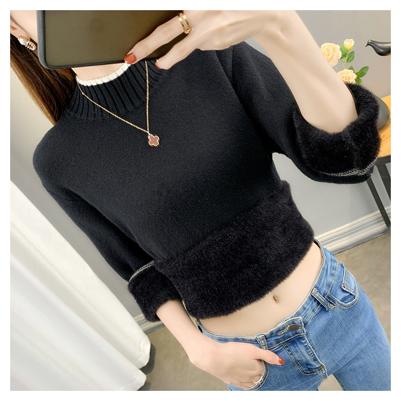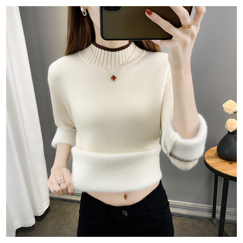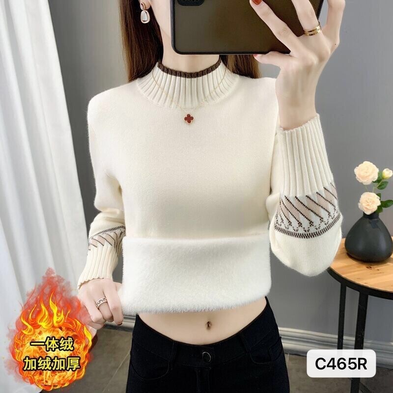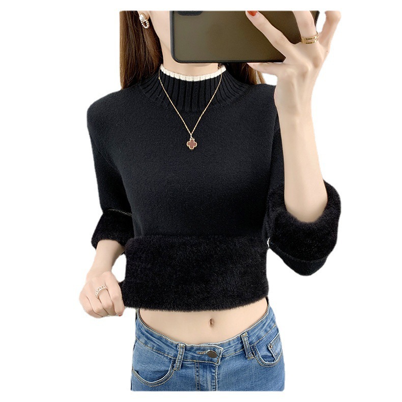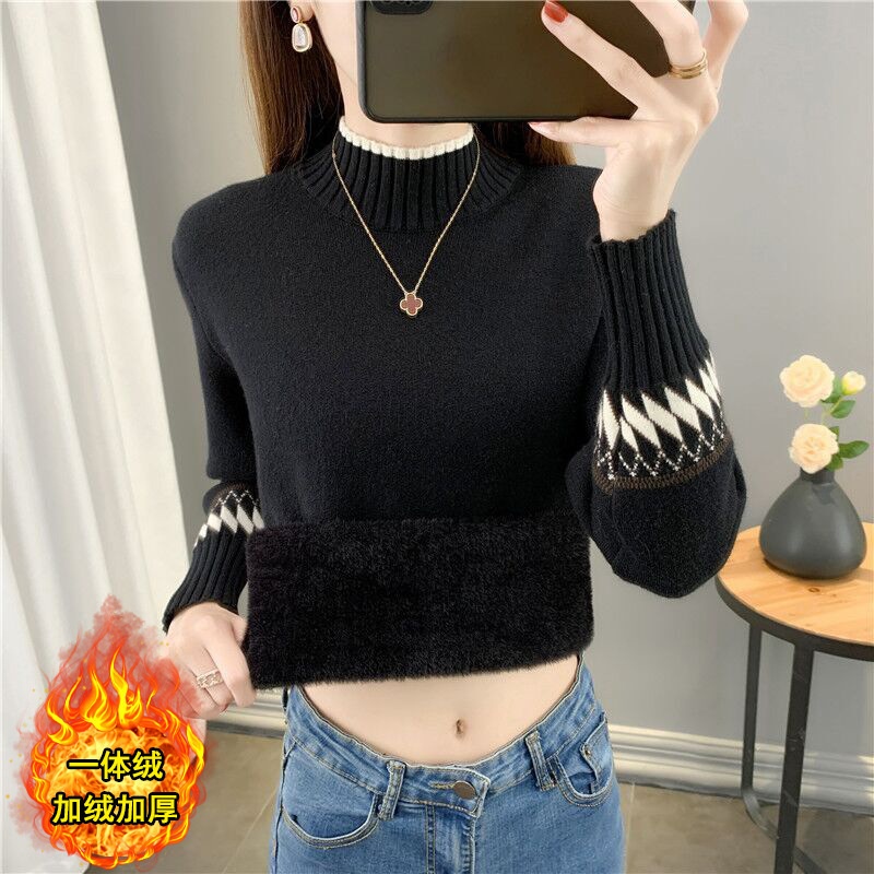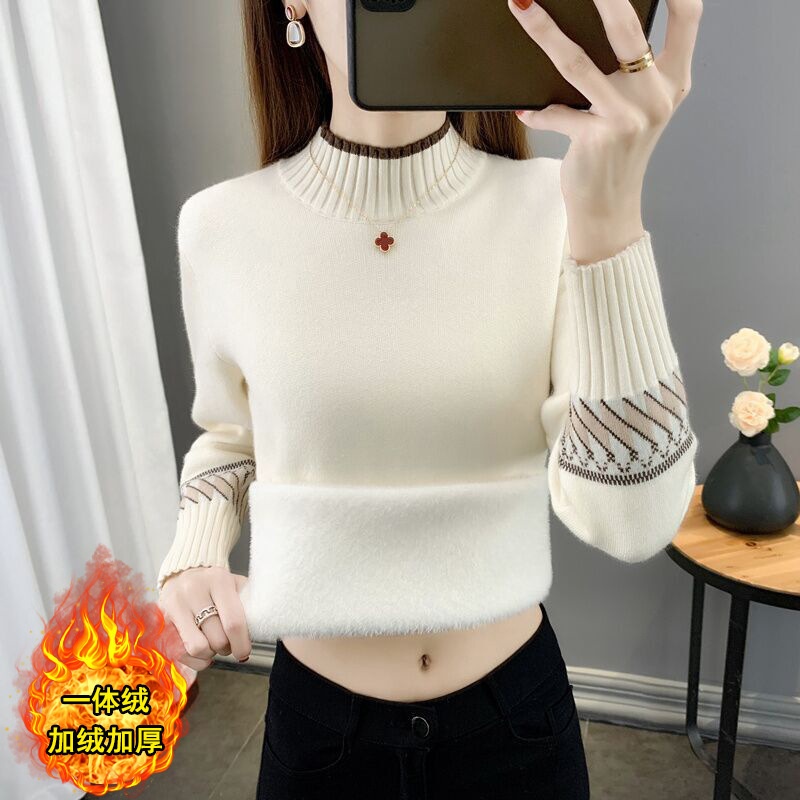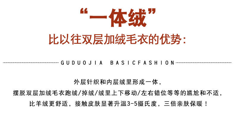 2022秋冬新款一体绒加绒加厚圆领套头针织修身毛衣内搭保暖打底衫