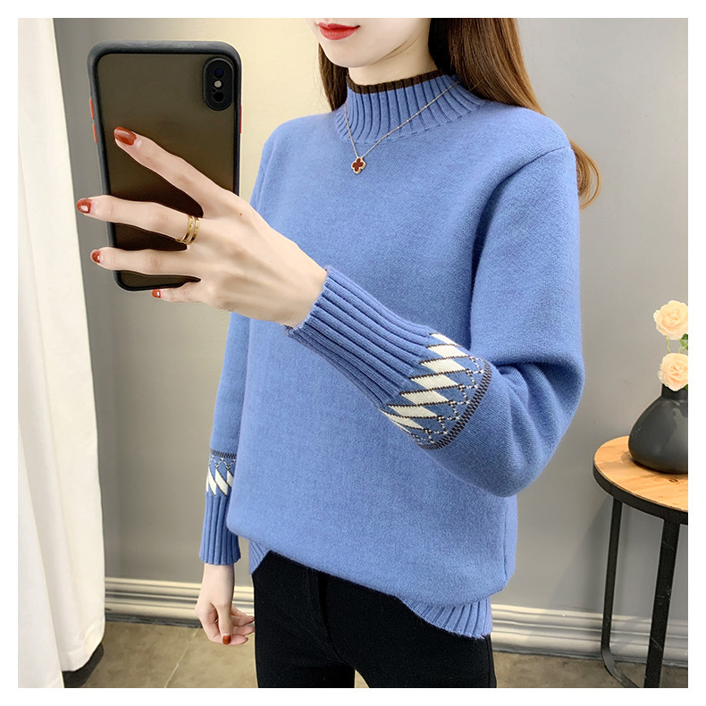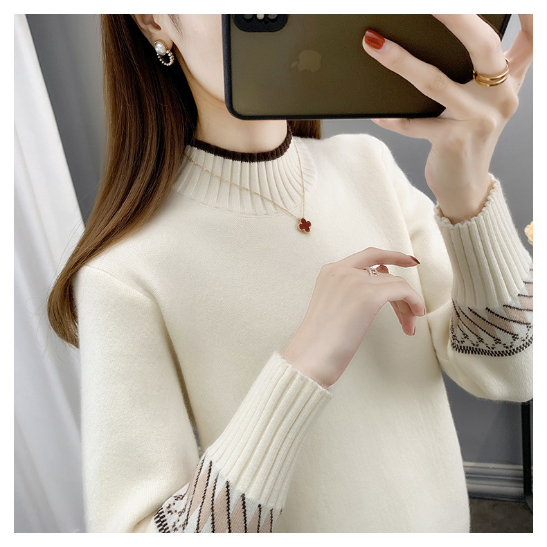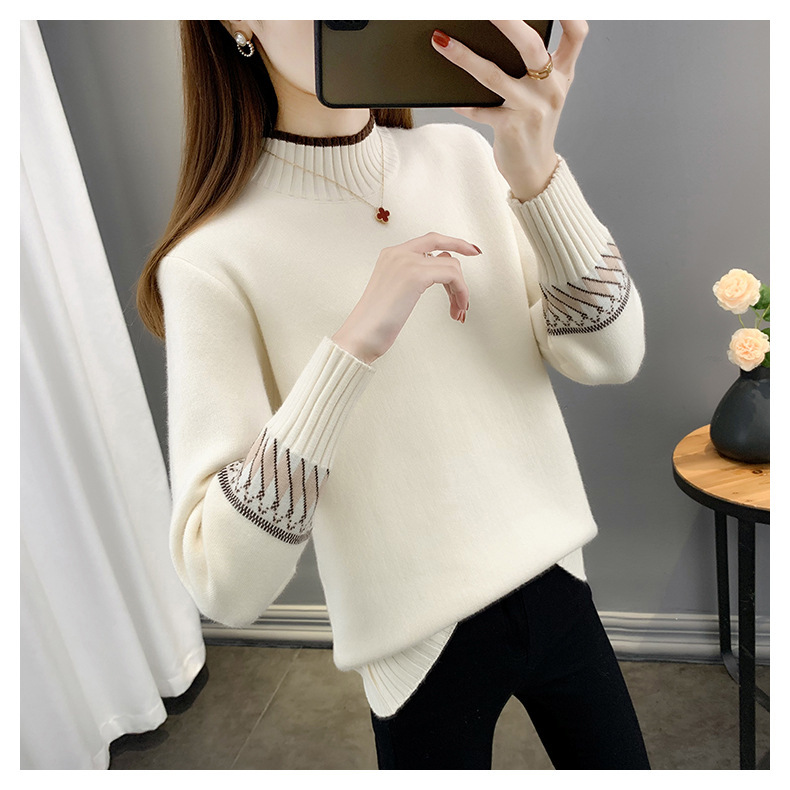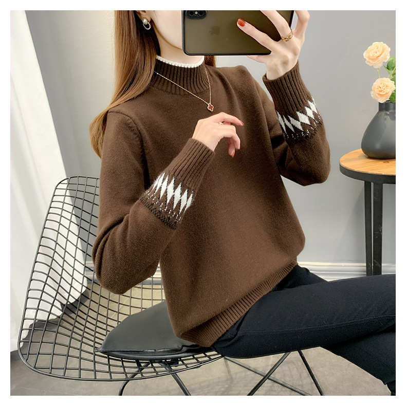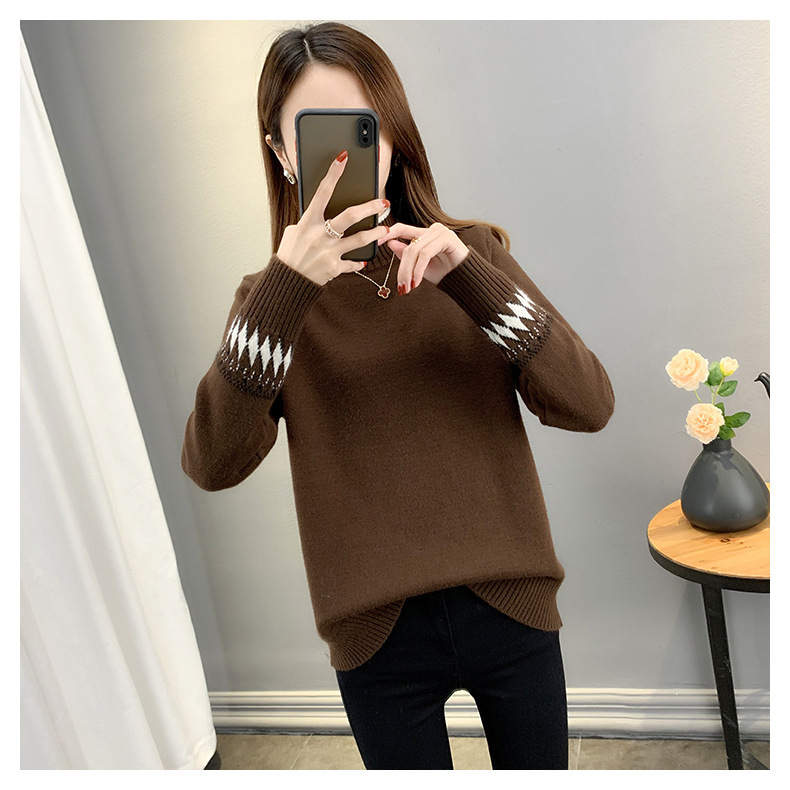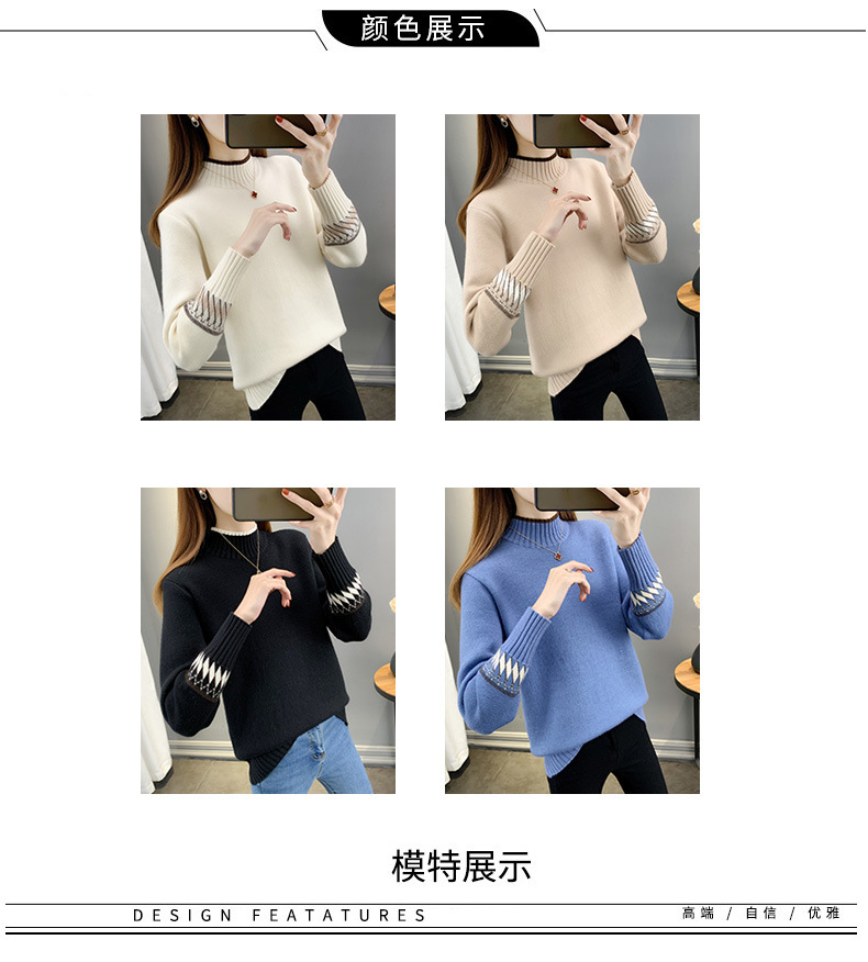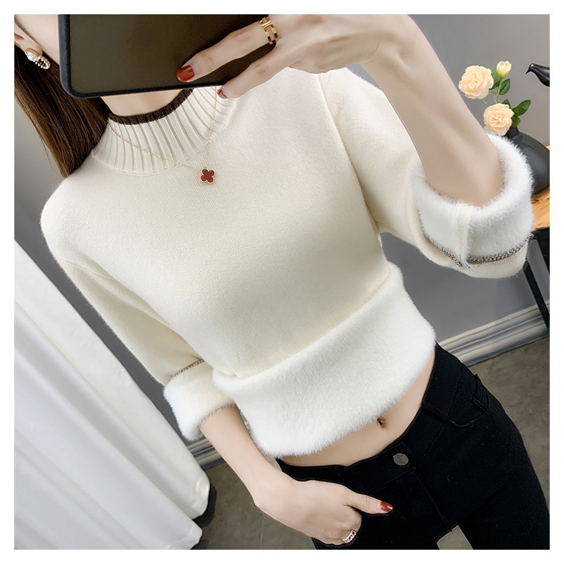 2022秋冬新款一体绒加绒加厚圆领套头针织修身毛衣内搭保暖打底衫
