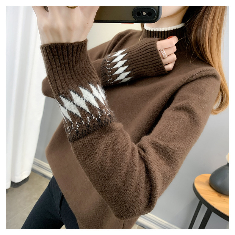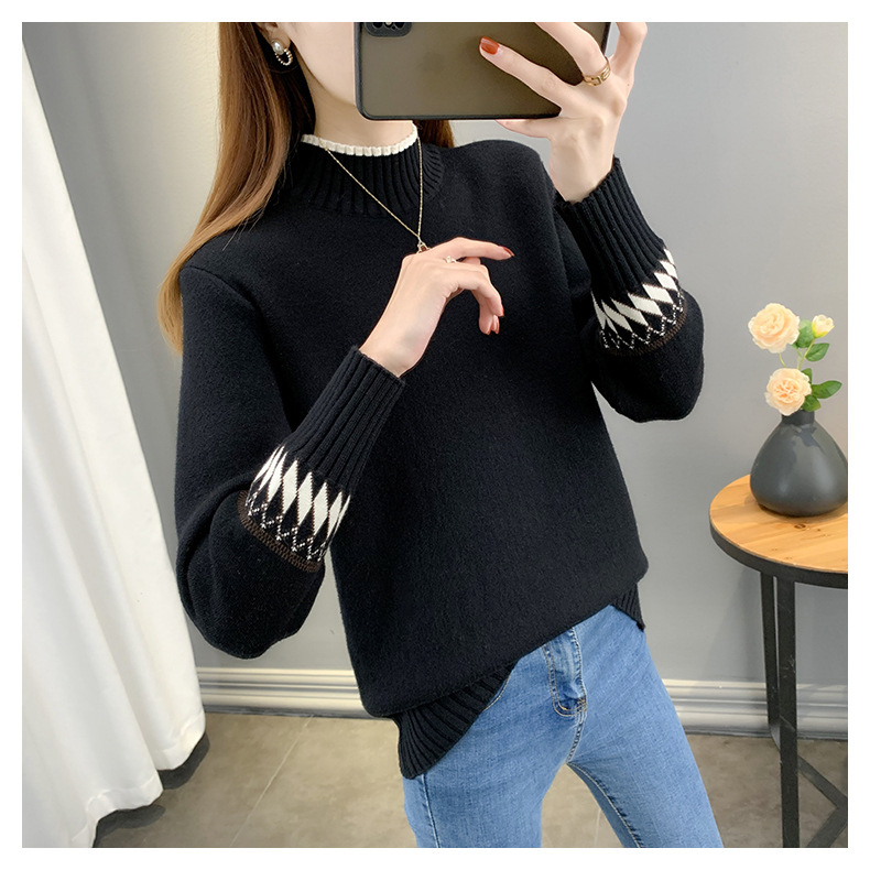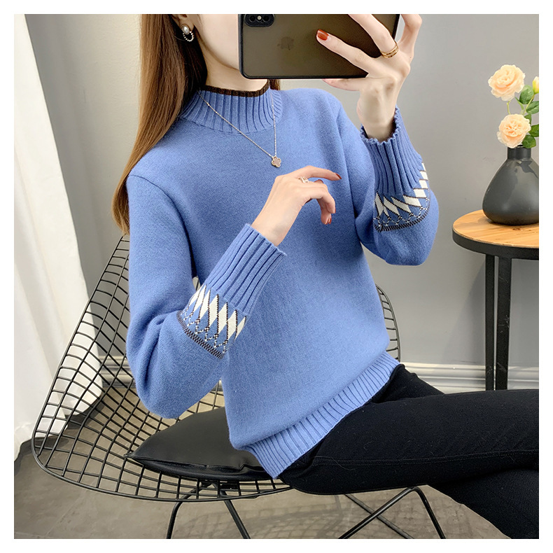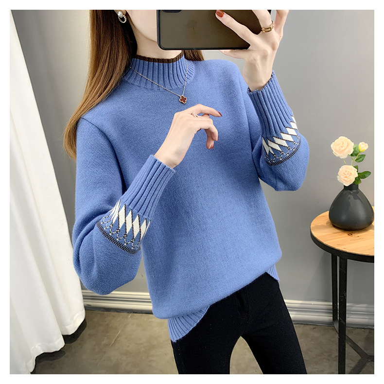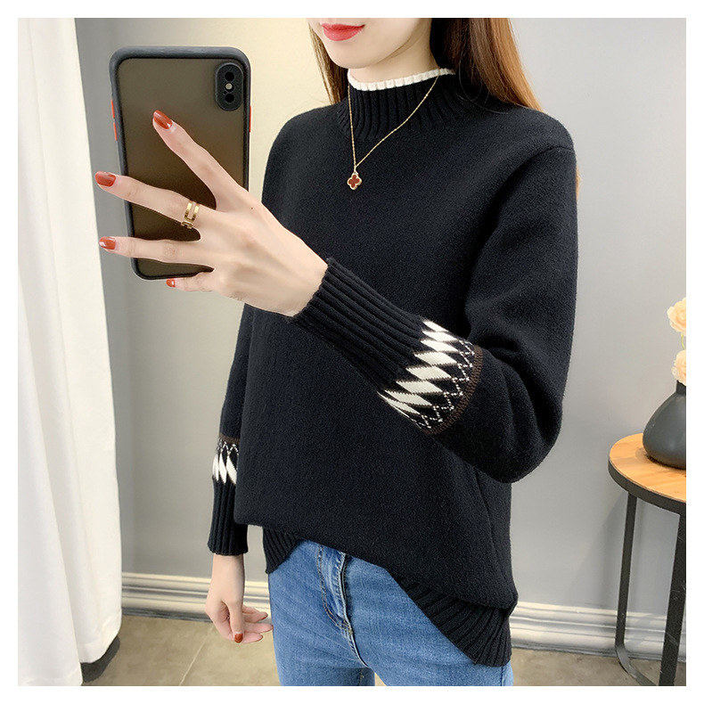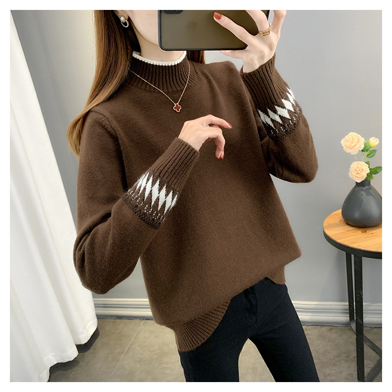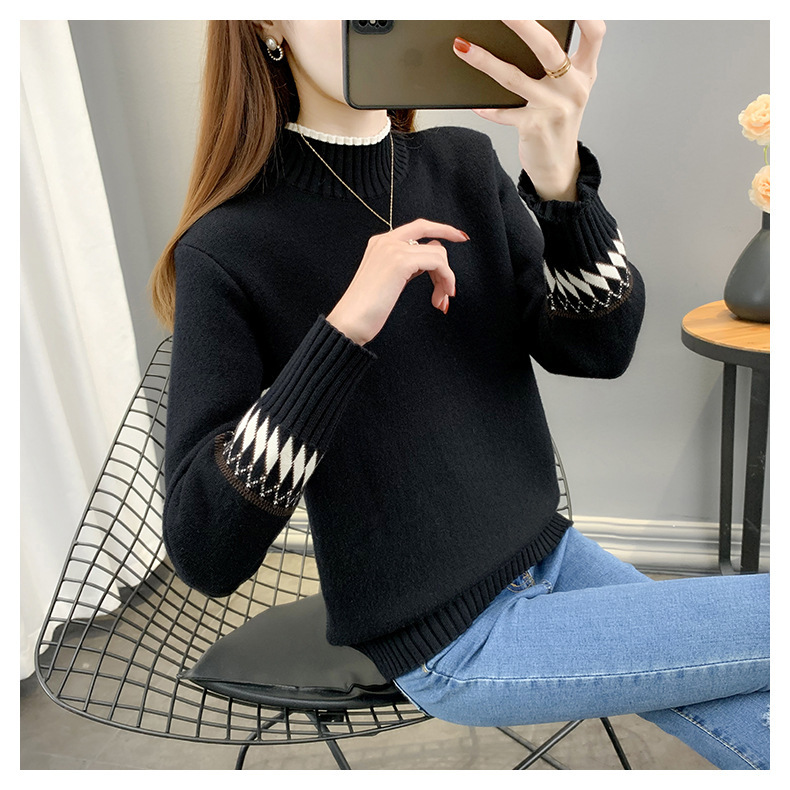 2022秋冬新款一体绒加绒加厚圆领套头针织修身毛衣内搭保暖打底衫