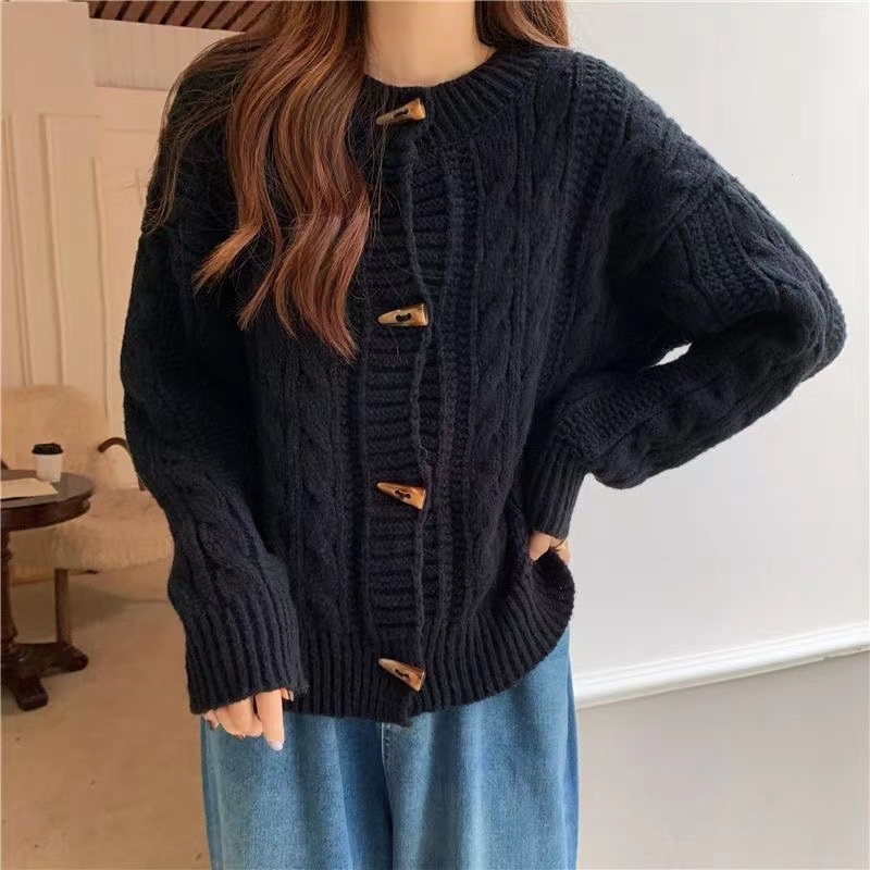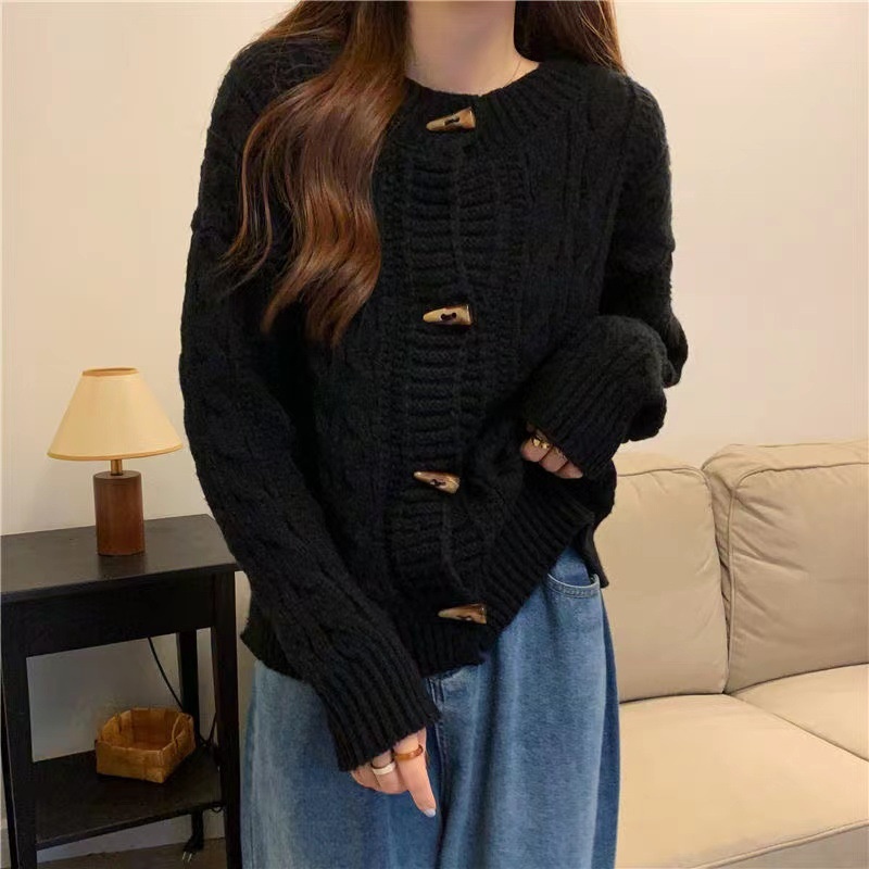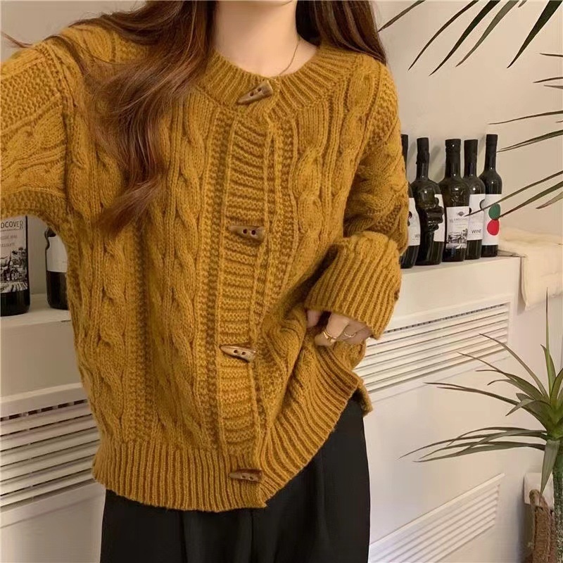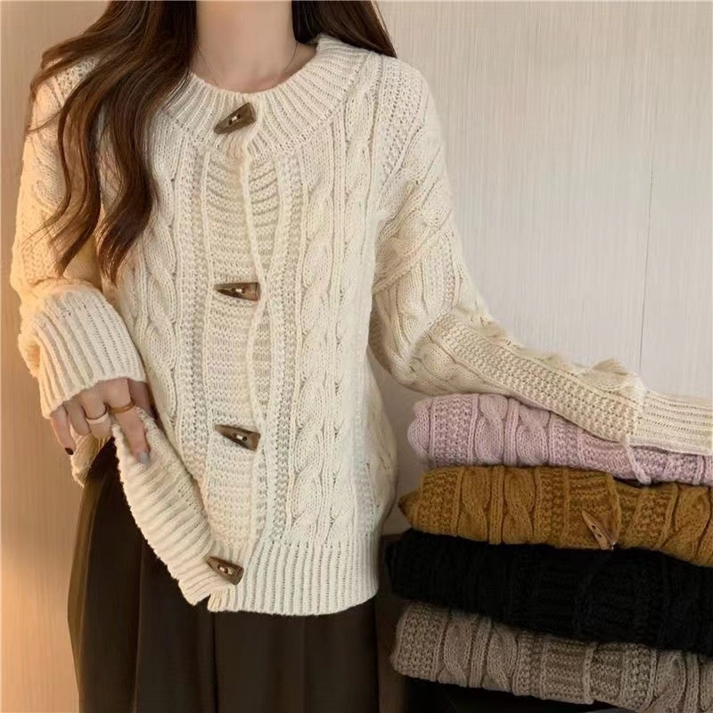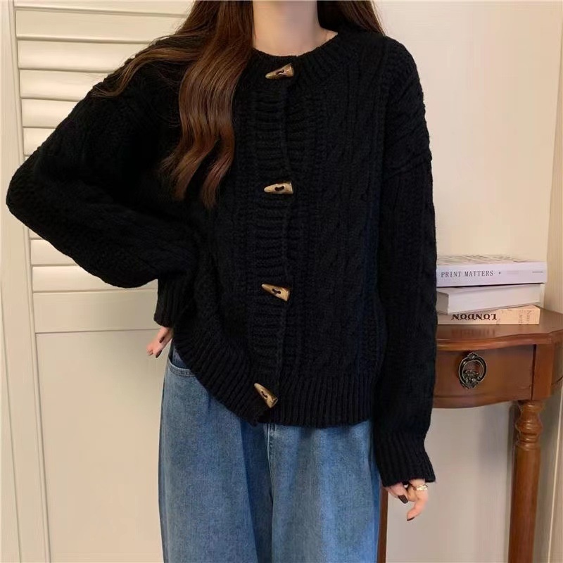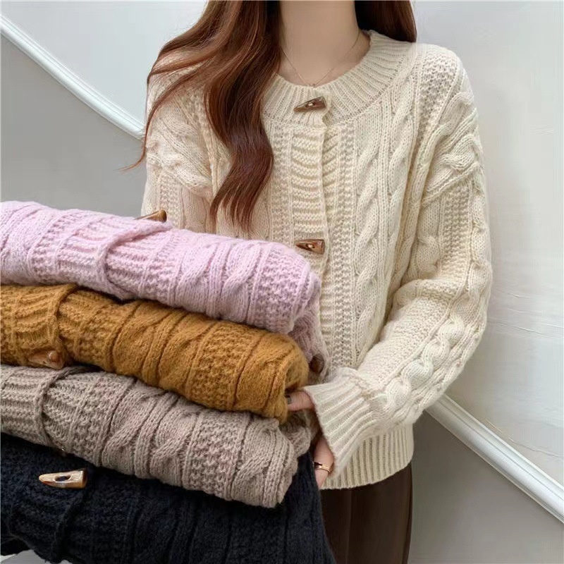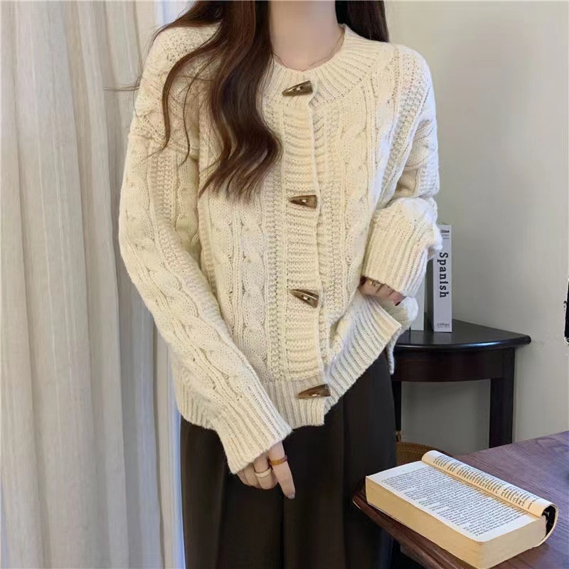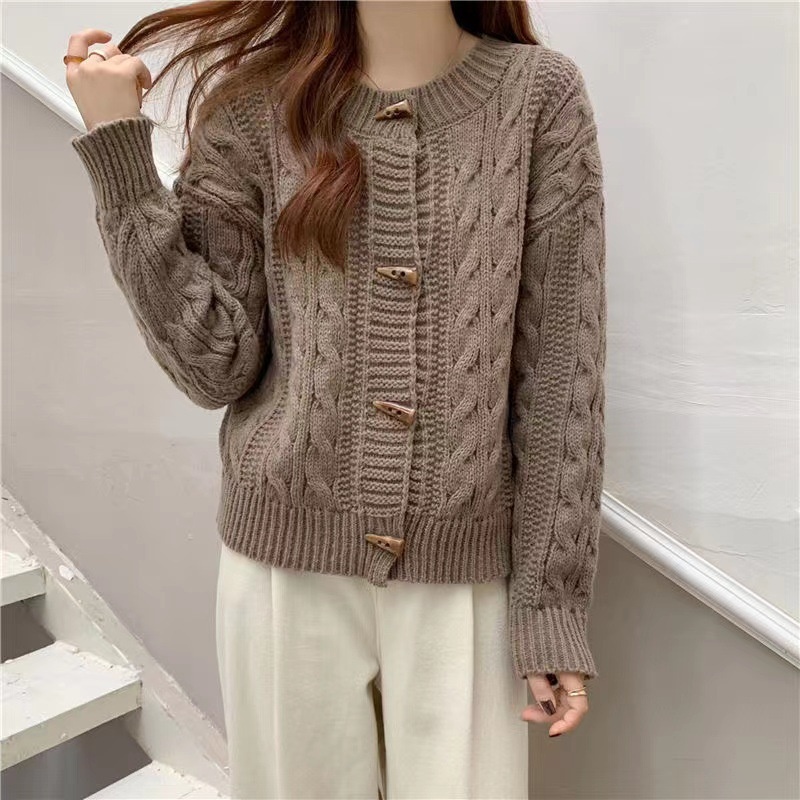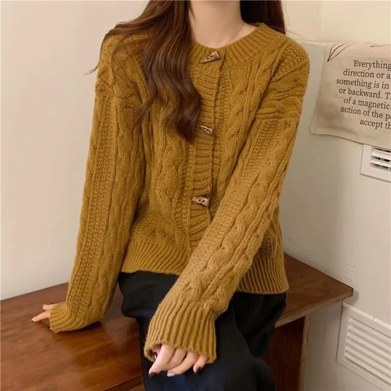 2022秋冬季新款宽松软糯慵懒风上衣小外套圆领麻花毛衣针织开衫女