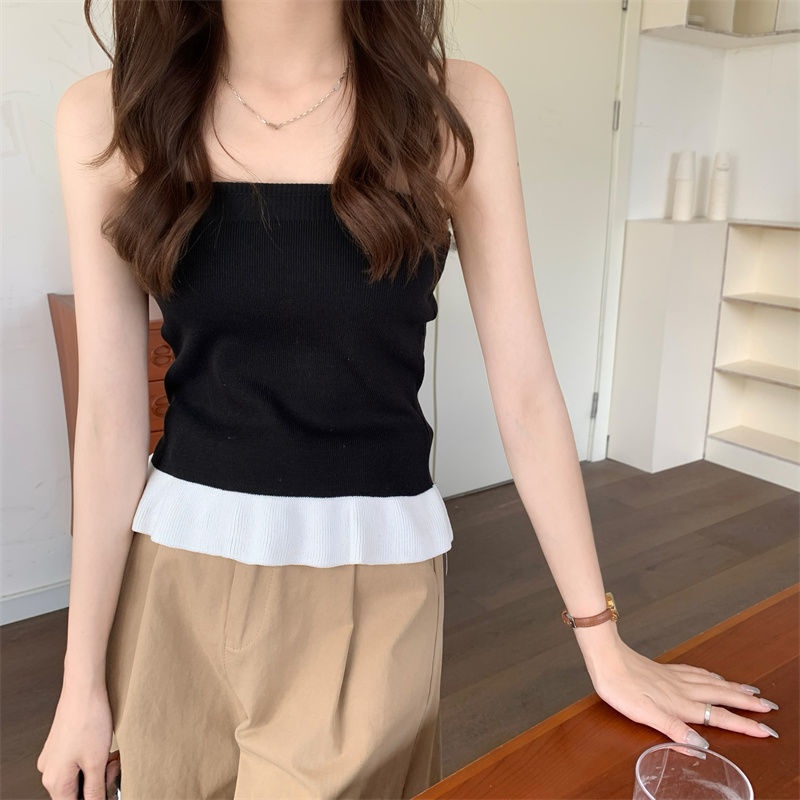 冰丝针织小吊带背心蕾丝拼接上衣女夏季小众设计感内搭打底修身潮