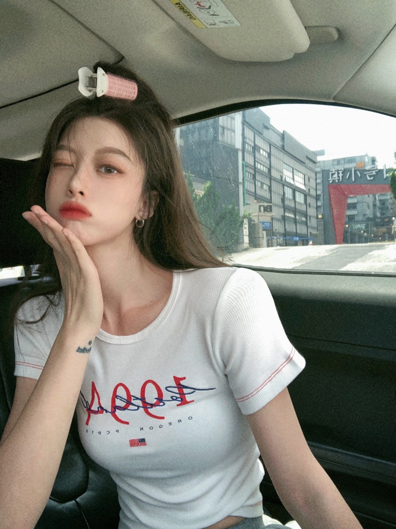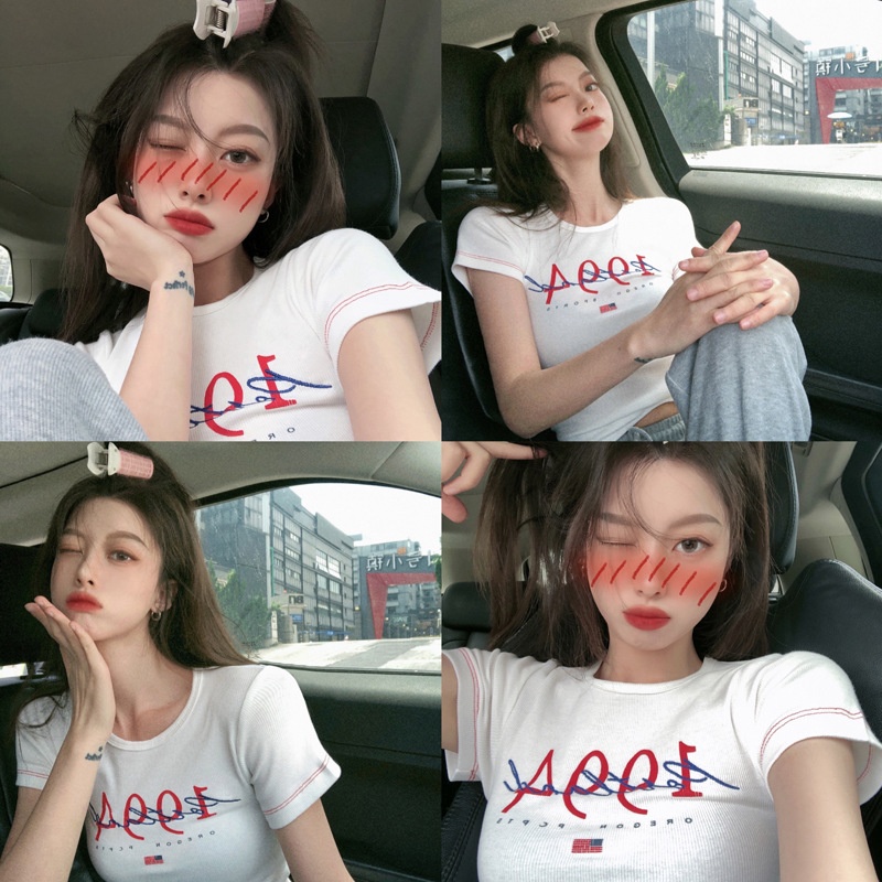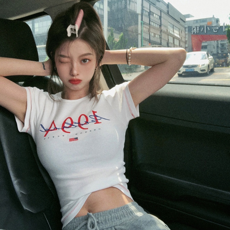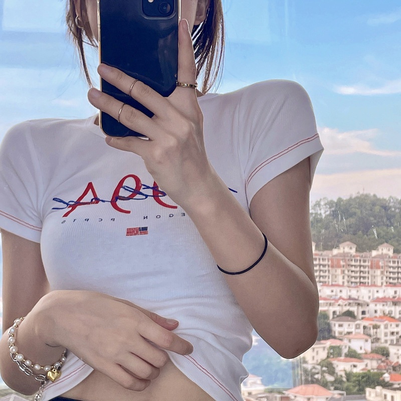 螺纹白色T恤女ins潮紧身短款打底衫夏季2025新款修身内搭短袖上衣