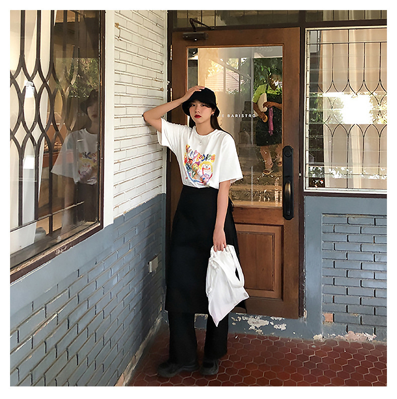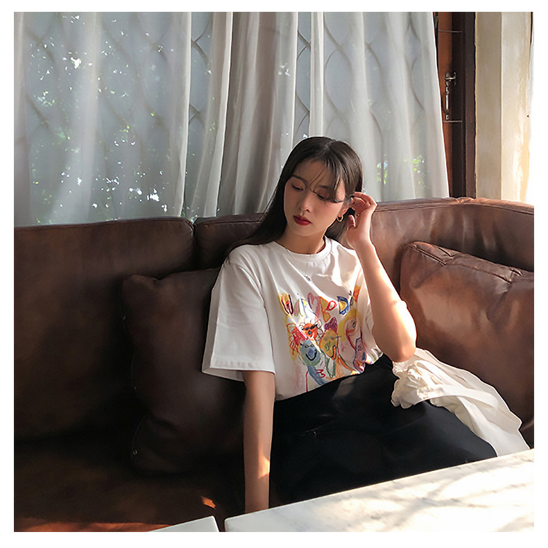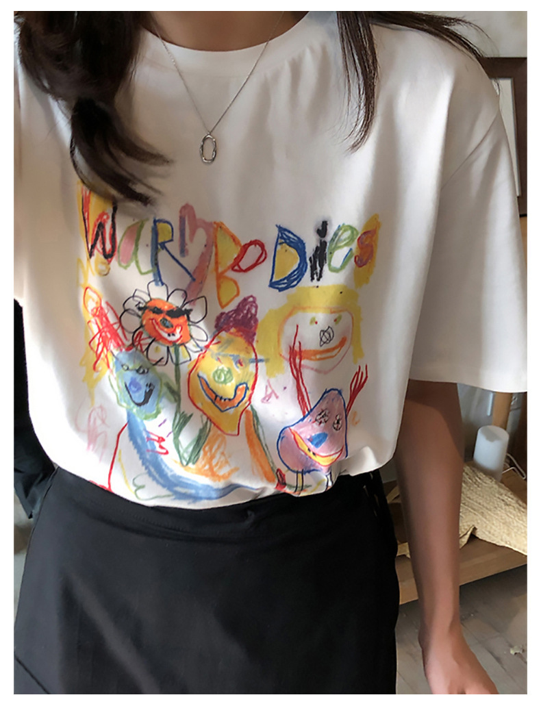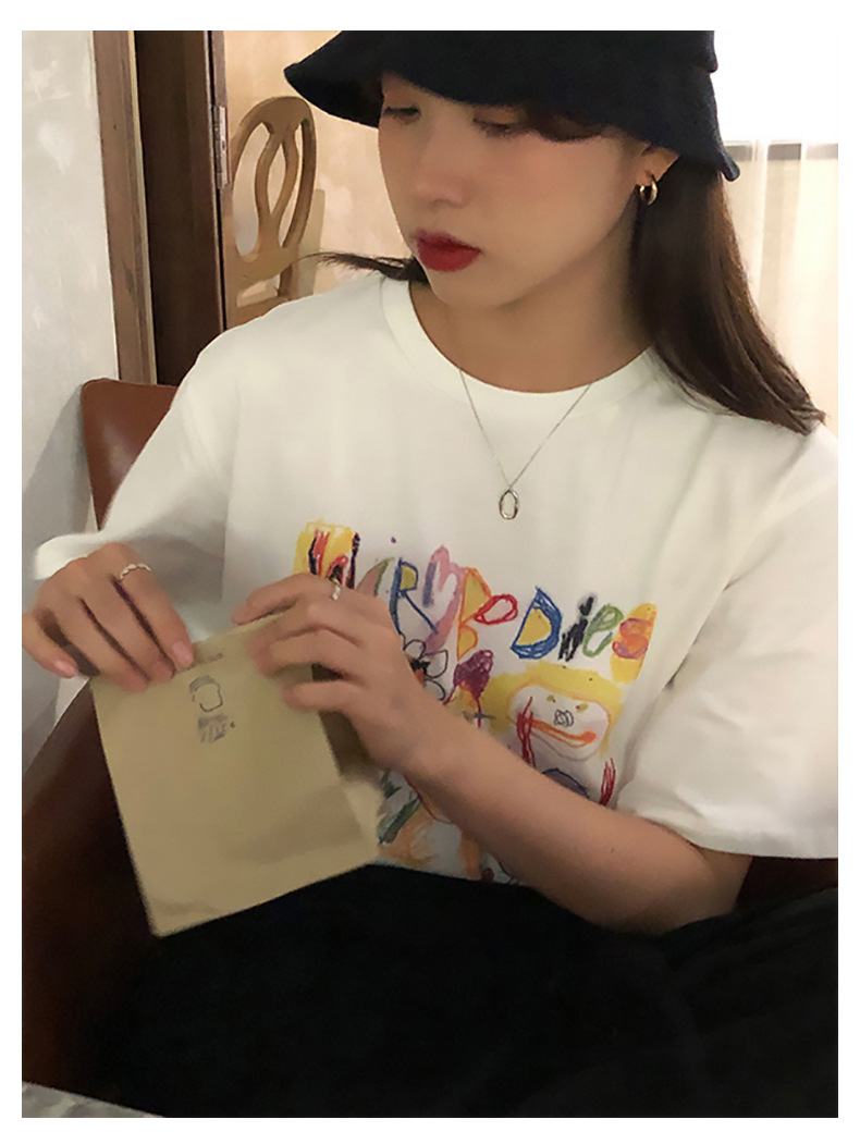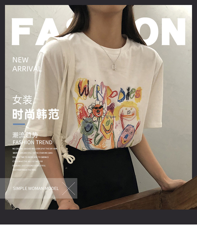 涂鸦白色短袖女韩版宽松半袖T恤女2025新款夏季学生百搭打底上衣