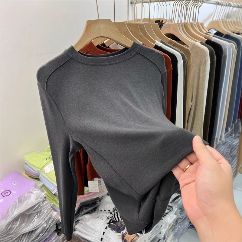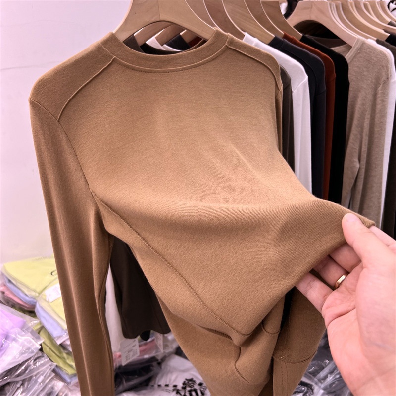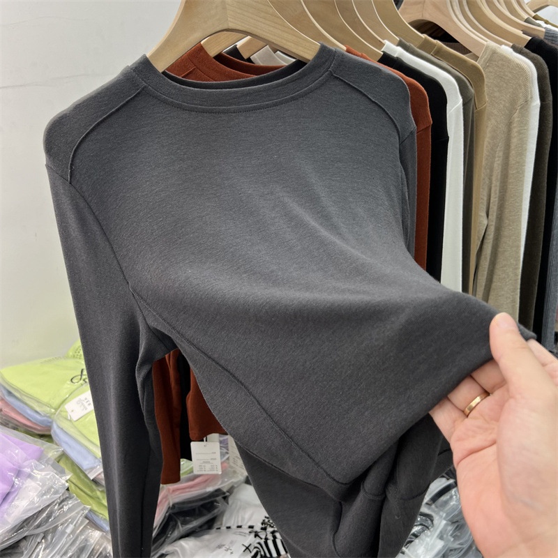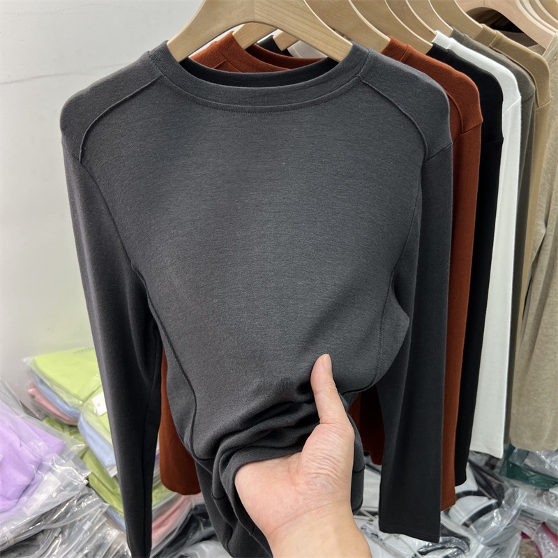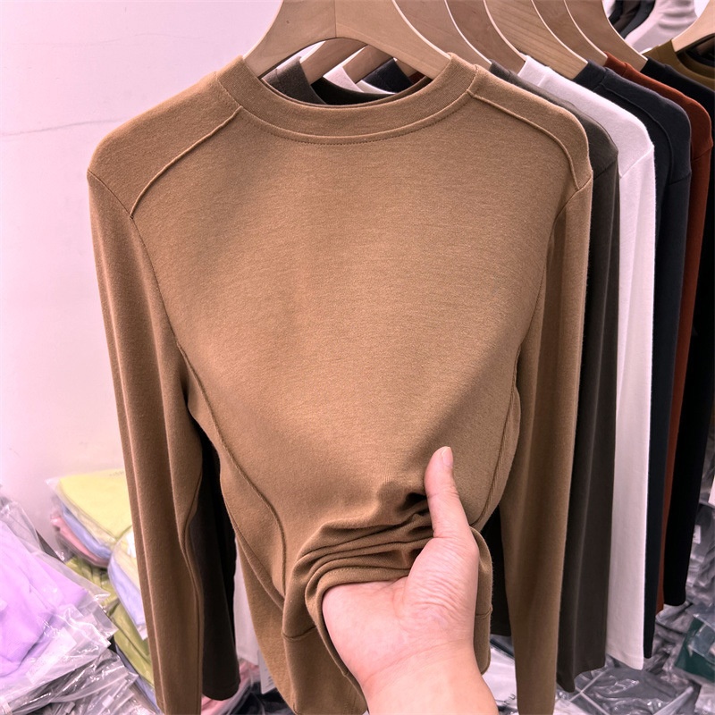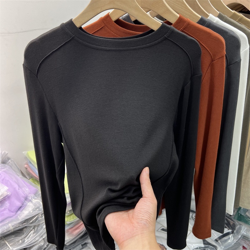 6819#双面德绒打底衫女春秋冬内搭长袖加绒2022新款洋气保暖上衣