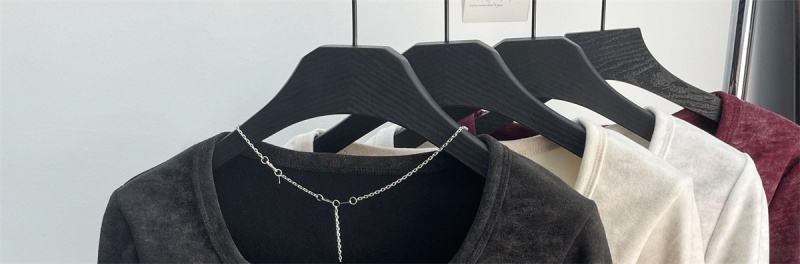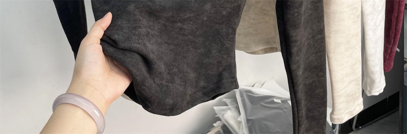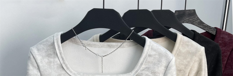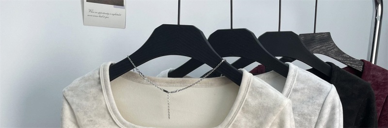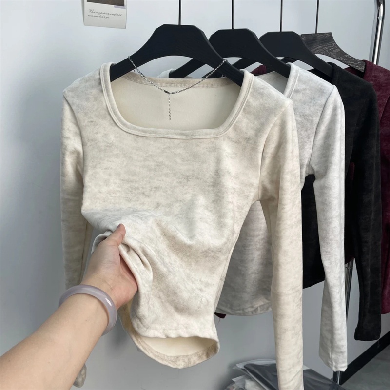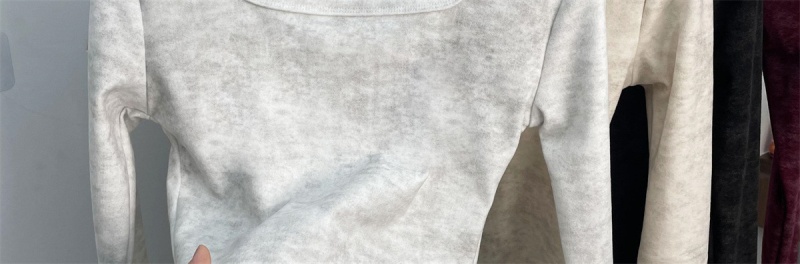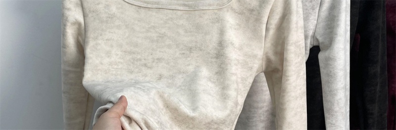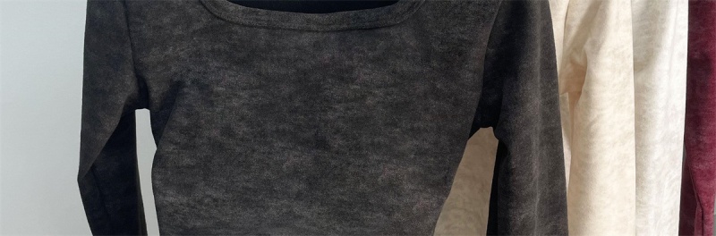 法式方领加厚收腰简约扎染打底上衣秋冬新款舒适内搭德绒长袖t恤