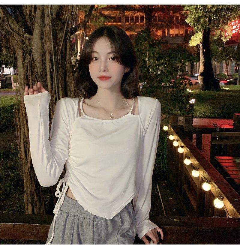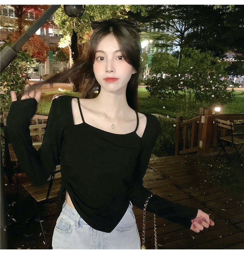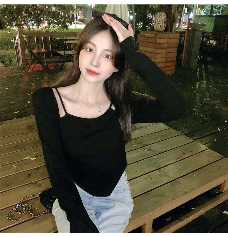 475#纯欲甜辣妹打底衫显瘦修身短款春秋新款女