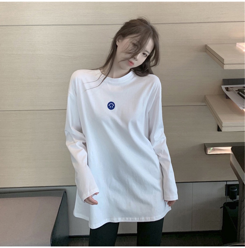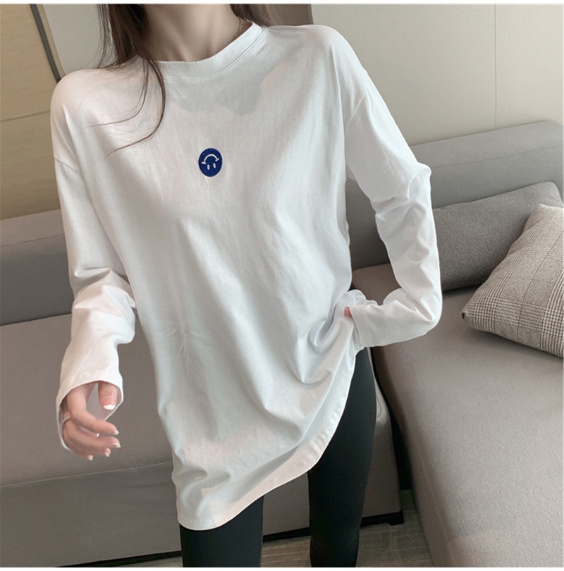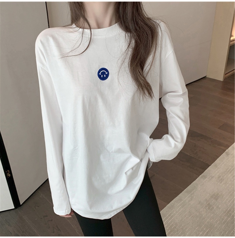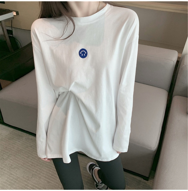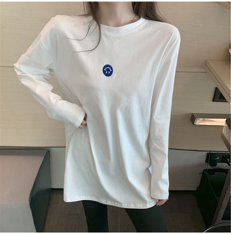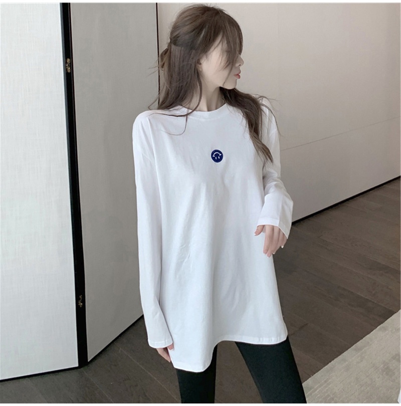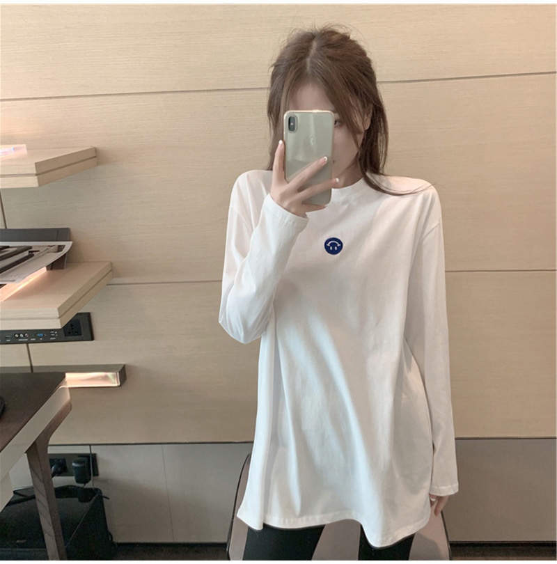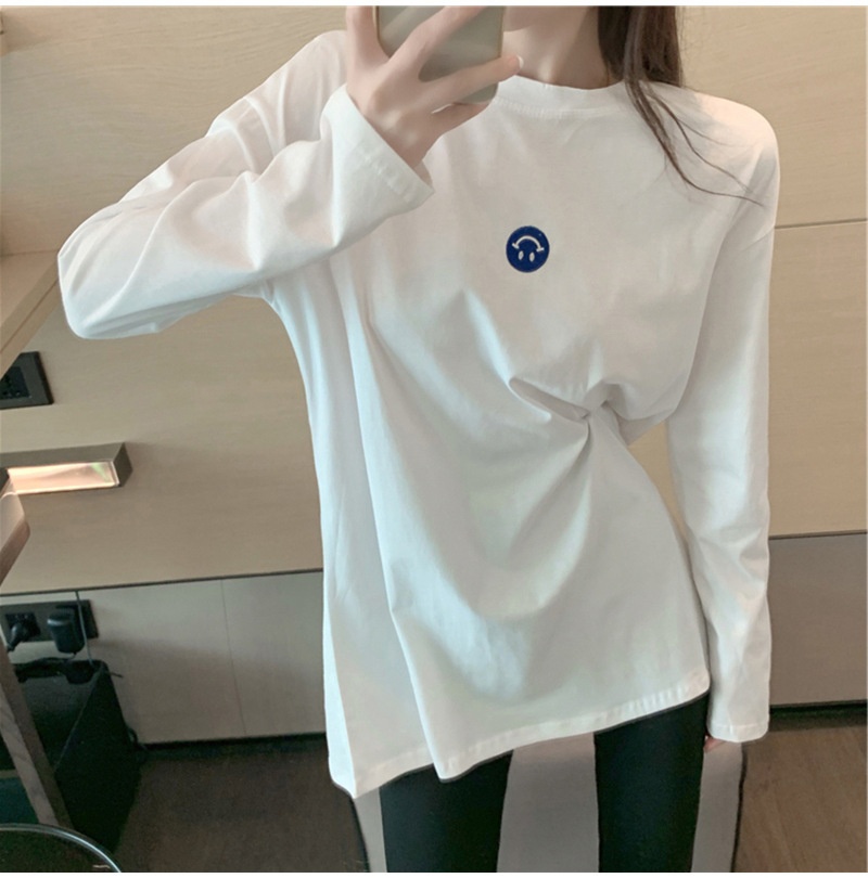 加绒打底衫女2025冬季新款韩版宽松刺绣中长款叠穿内搭白色上衣女
