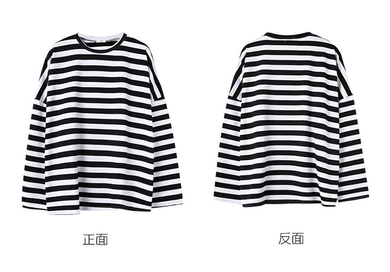 秋装2025年新款原宿风ins潮黑白条纹初秋宽松长袖T恤女学生上衣