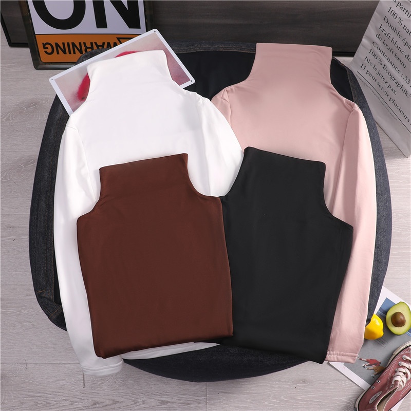 2025秋冬高领加绒打底衫女长袖纯色韩版女装保暖修身显瘦体恤女潮