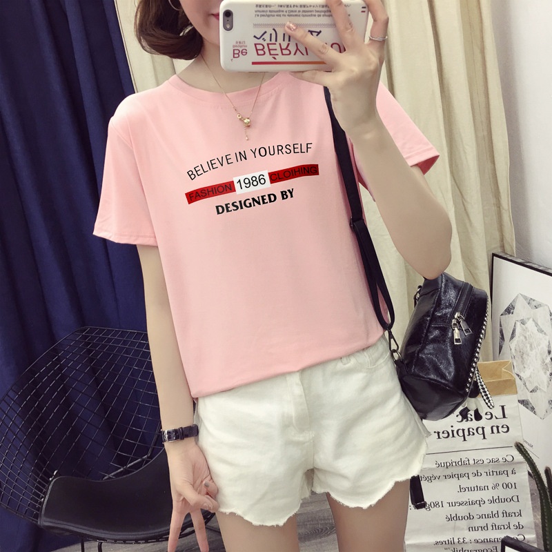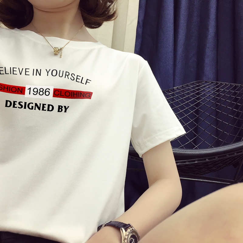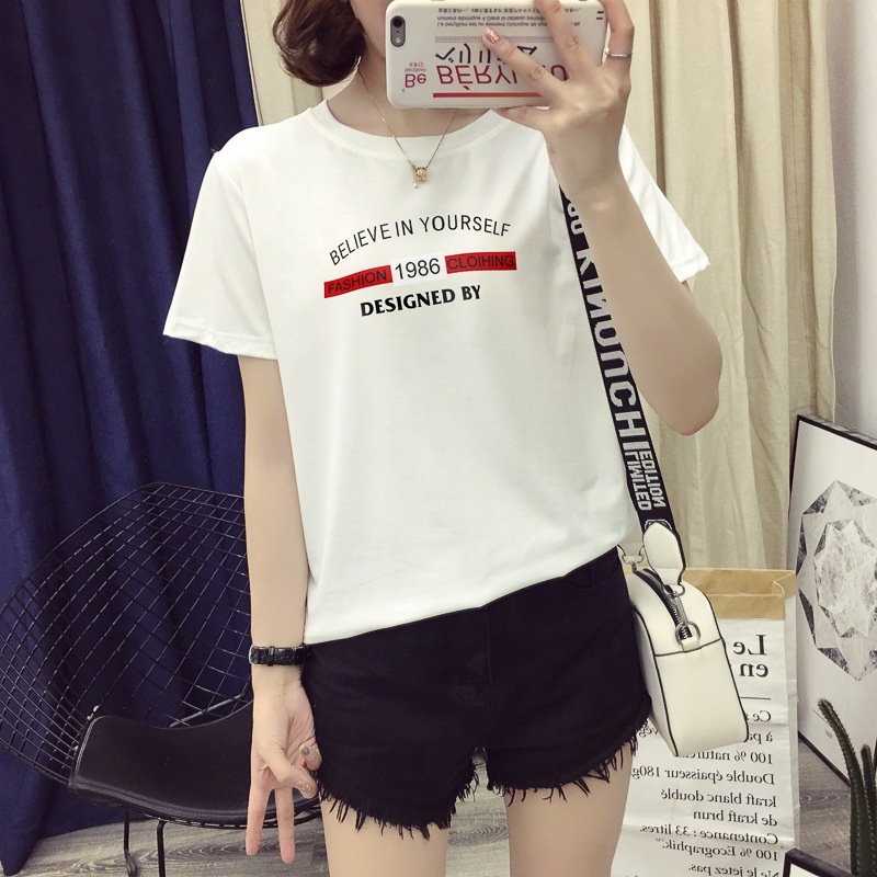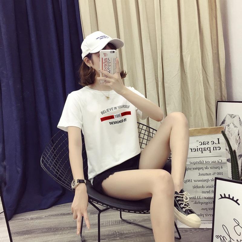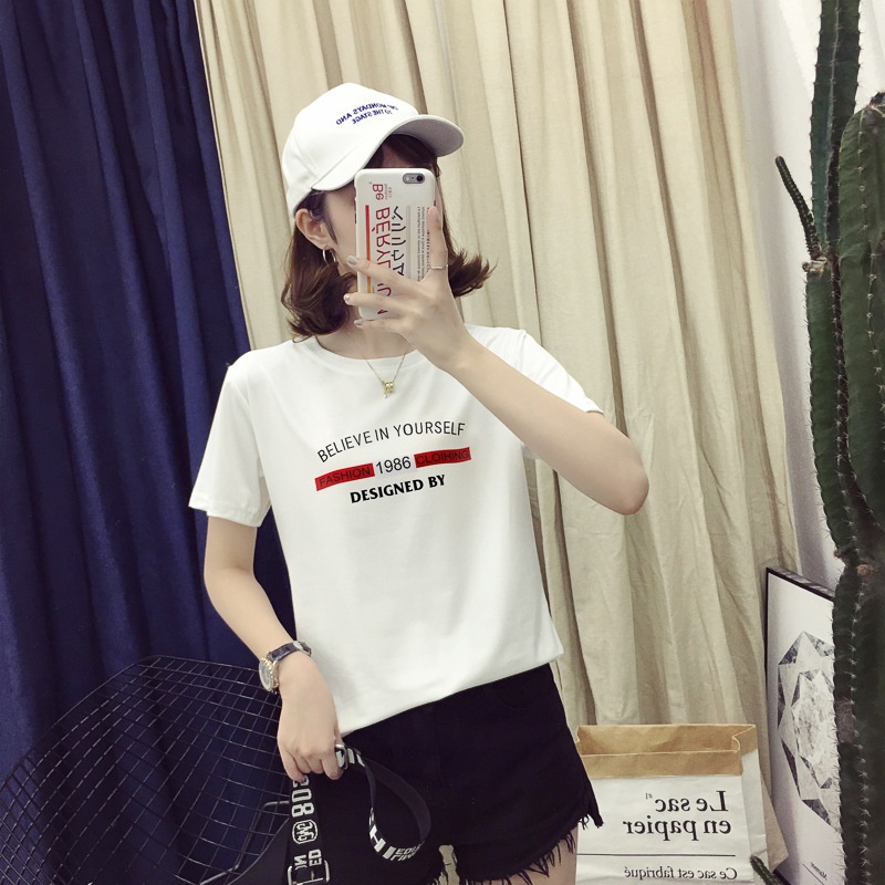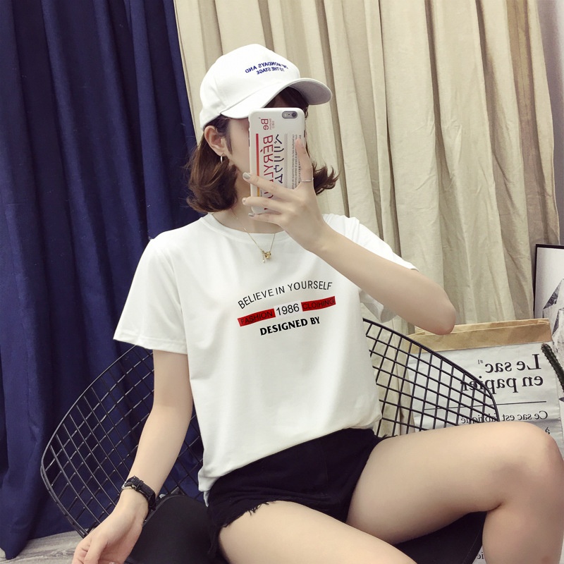 2025新款夏装韩版字母印花白色短袖t恤女学生宽松女士体恤原宿风