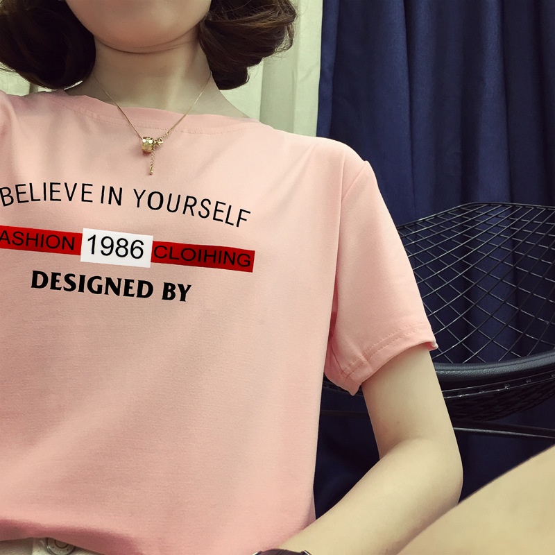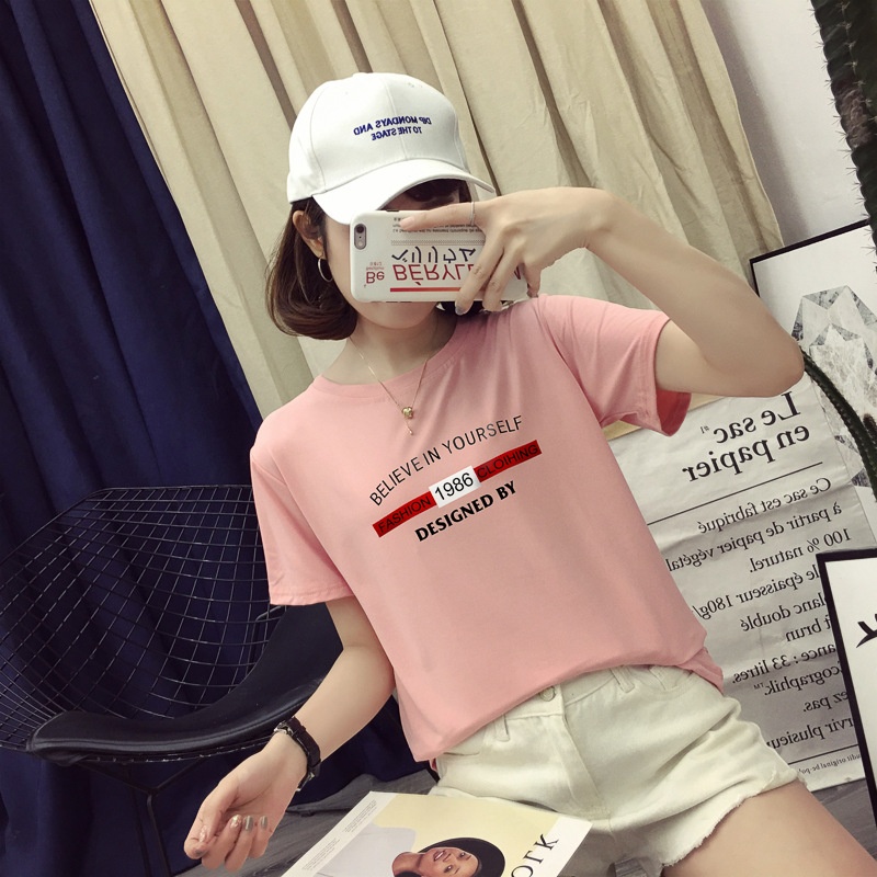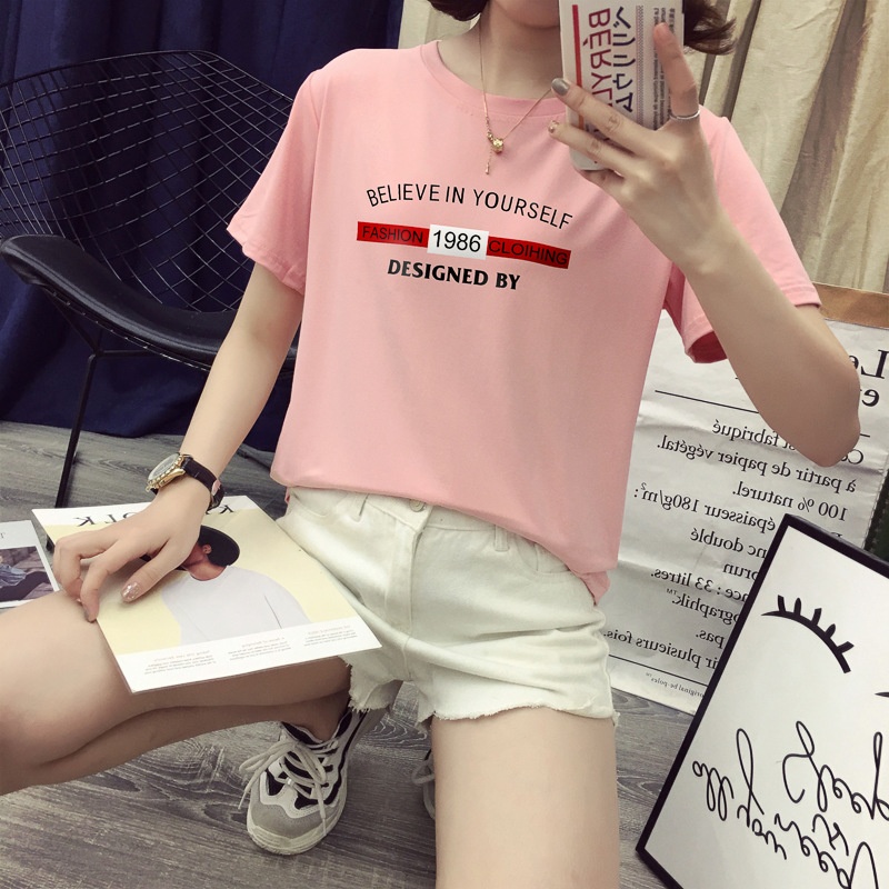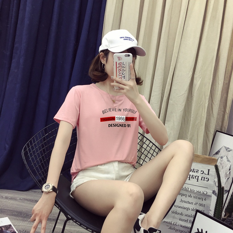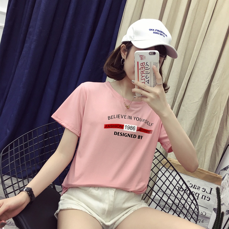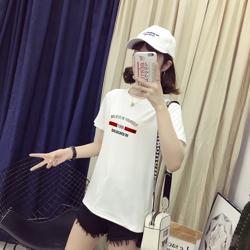 2025新款夏装韩版字母印花白色短袖t恤女学生宽松女士体恤原宿风