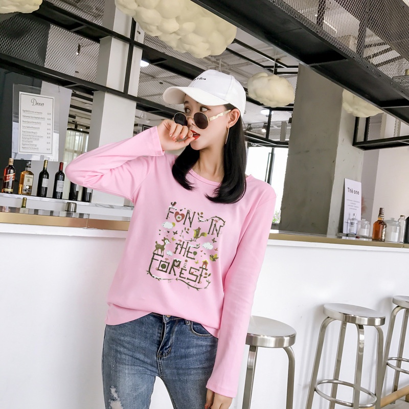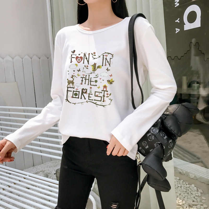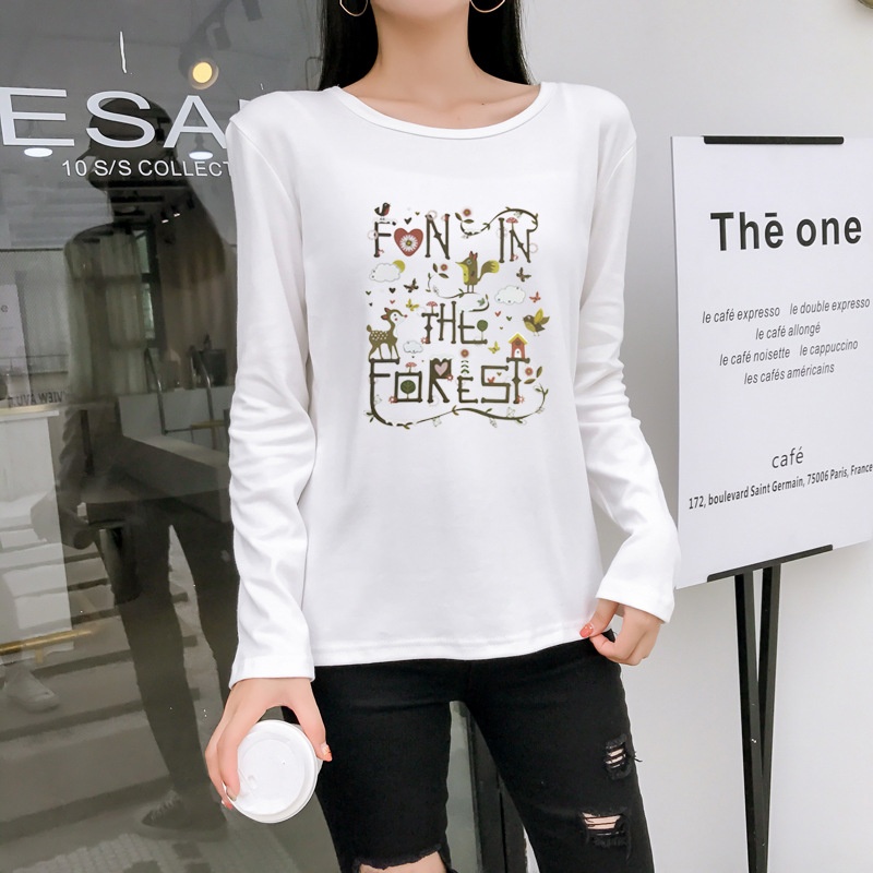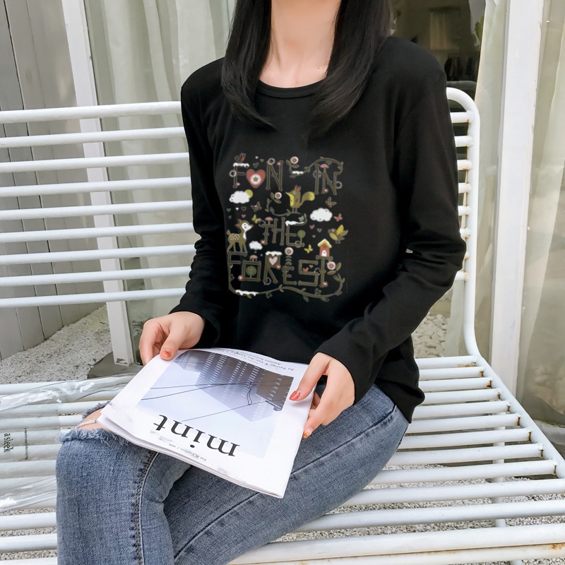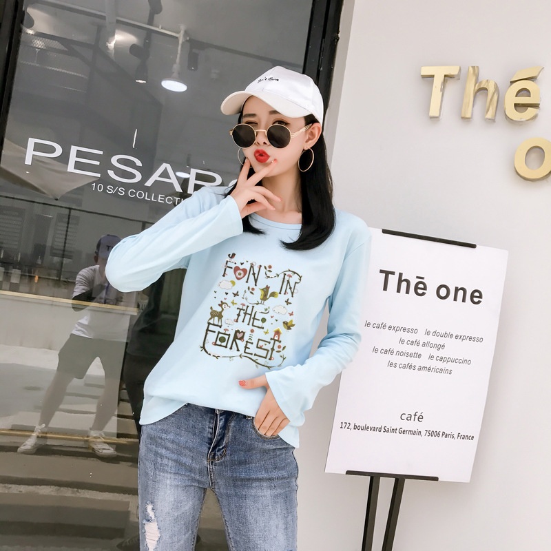 2025秋季新款韩版学院森女小清新印花长袖t恤女学生上衣打底衫潮