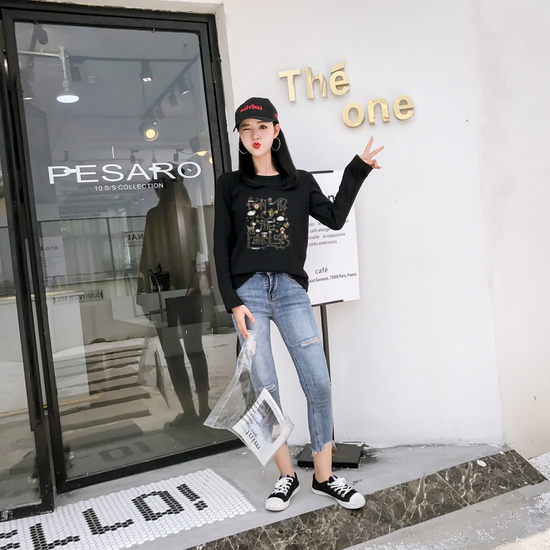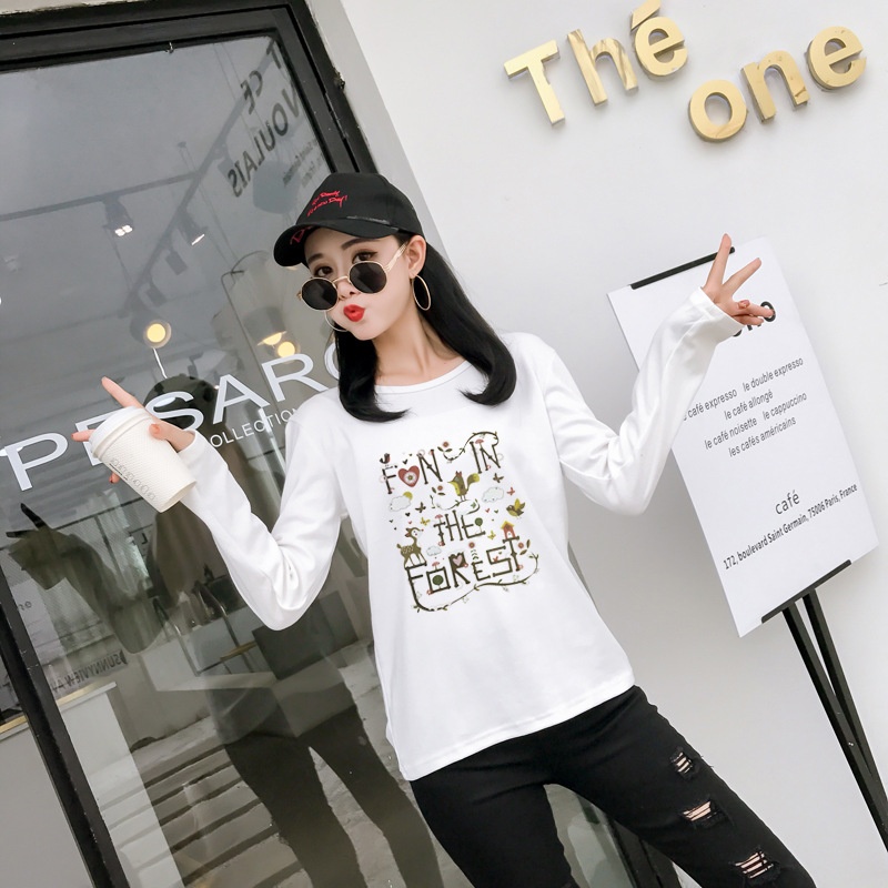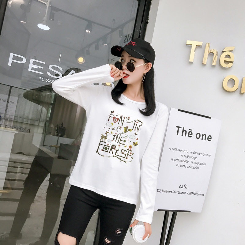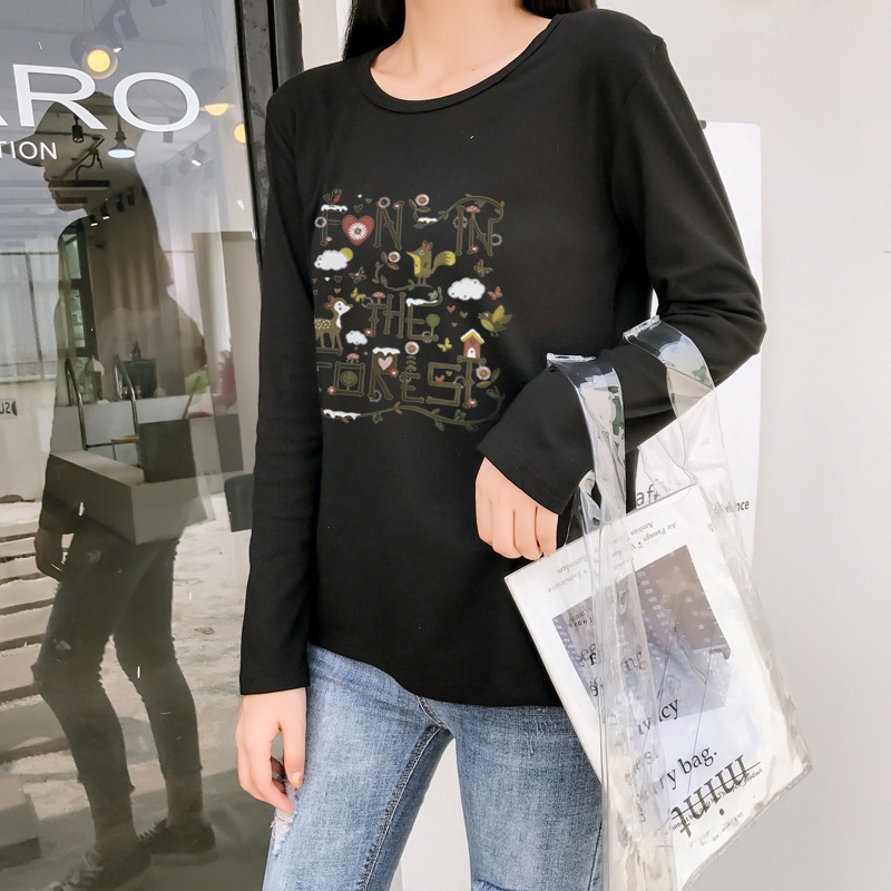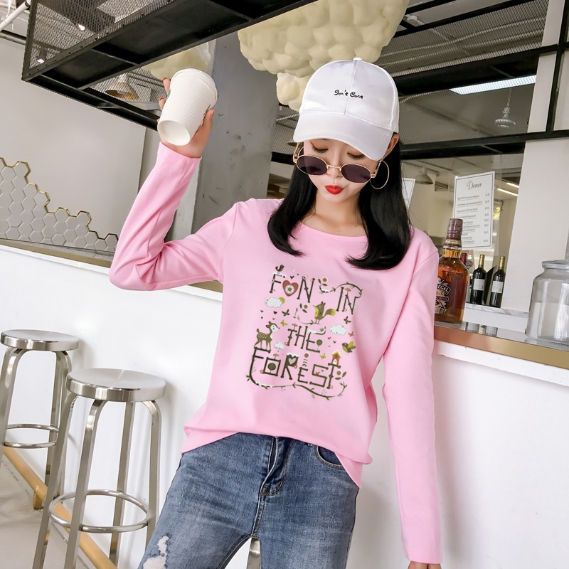 2025秋季新款韩版学院森女小清新印花长袖t恤女学生上衣打底衫潮
