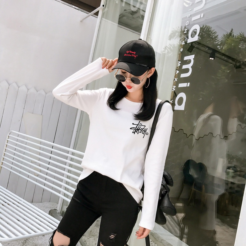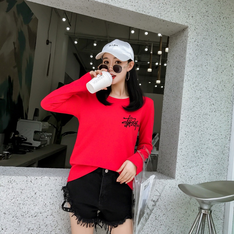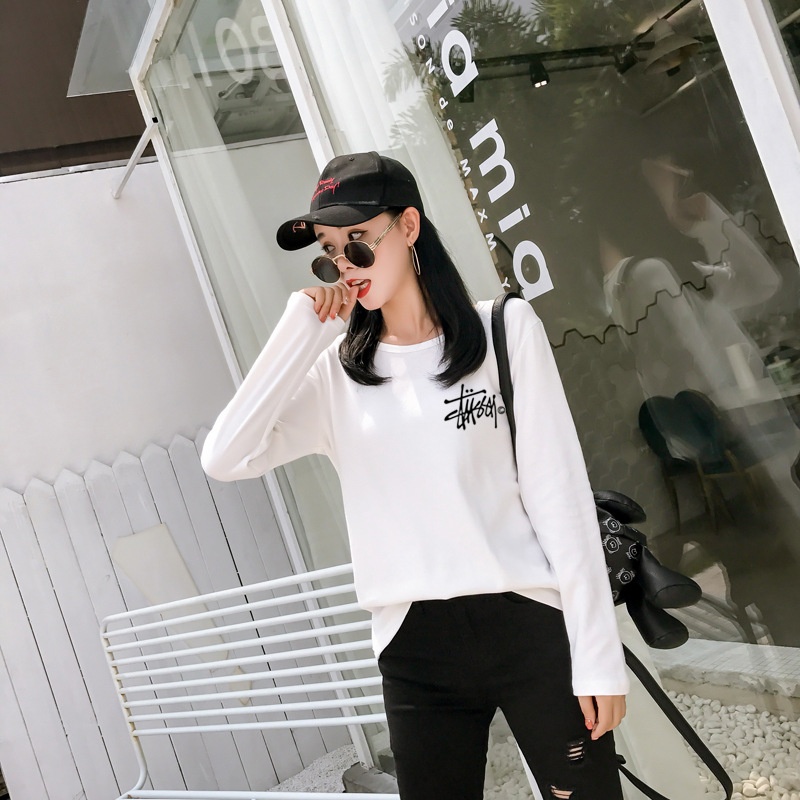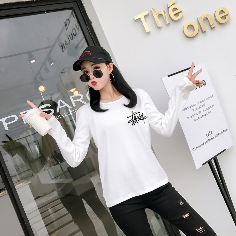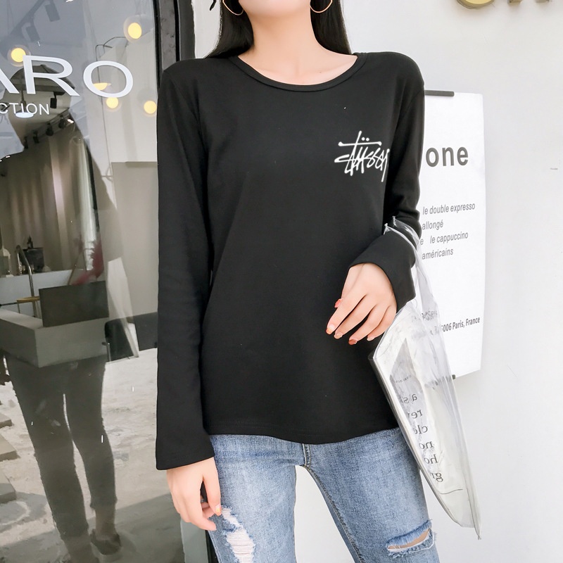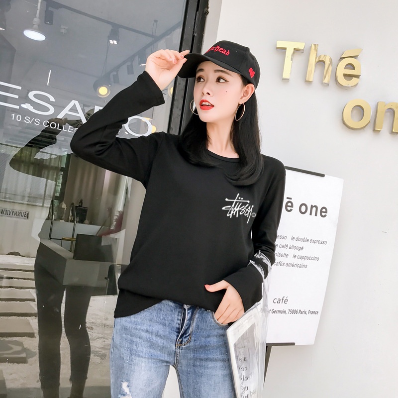 新品2025秋季新款韩版印花经典时尚圆领长袖T恤女学生上衣打底衫