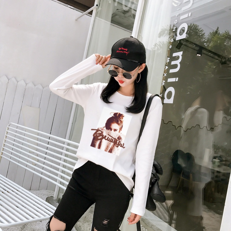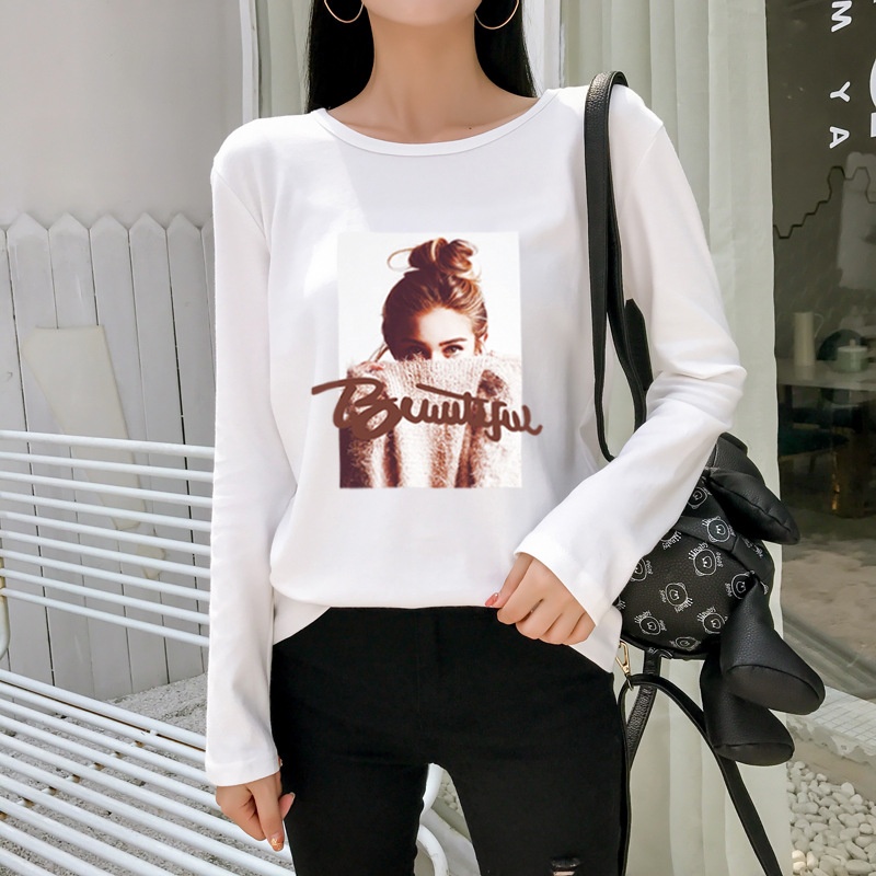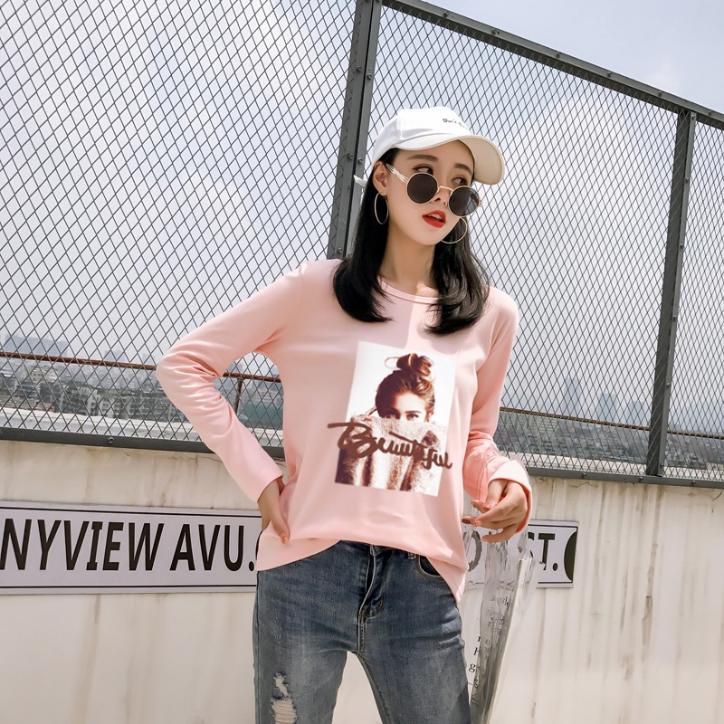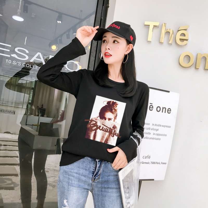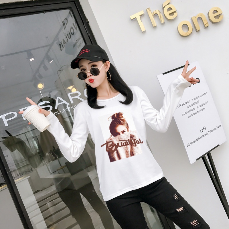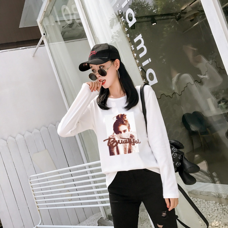 2025秋季新款韩版时尚女装人物头像印花长袖T恤女学生打底衫上衣