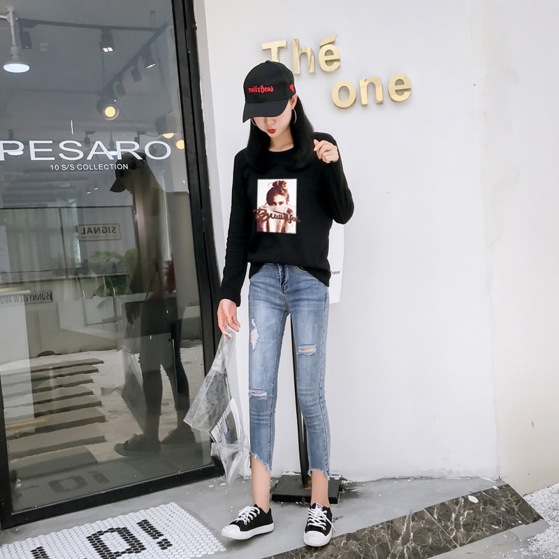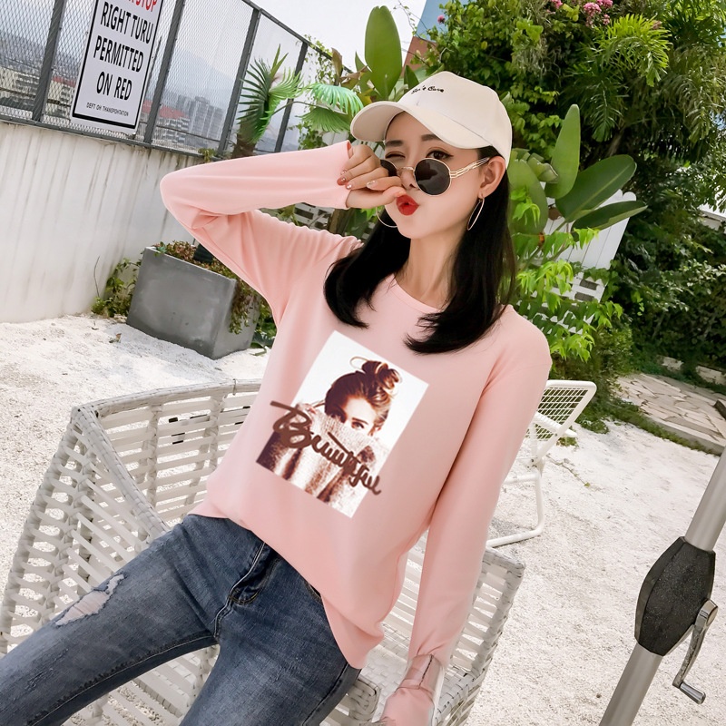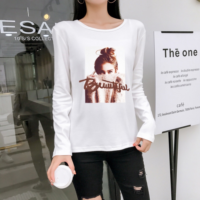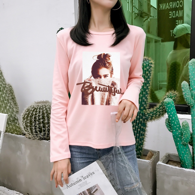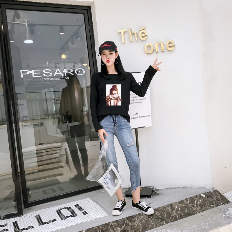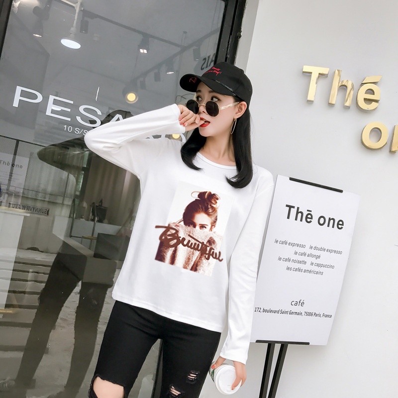 2025秋季新款韩版时尚女装人物头像印花长袖T恤女学生打底衫上衣