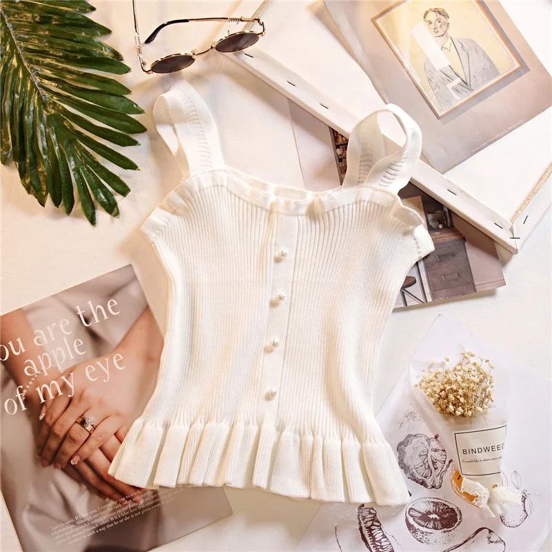 针织小背心吊带女内搭打底秋冬季复古露脐短款外穿性感木耳边上衣