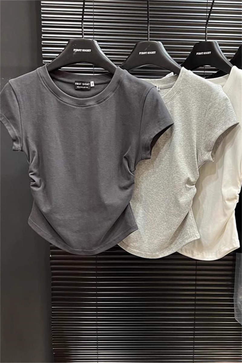 辣妹纯欲收腰t恤短袖女2025夏季新款纯色打底套头修身短款上衣女