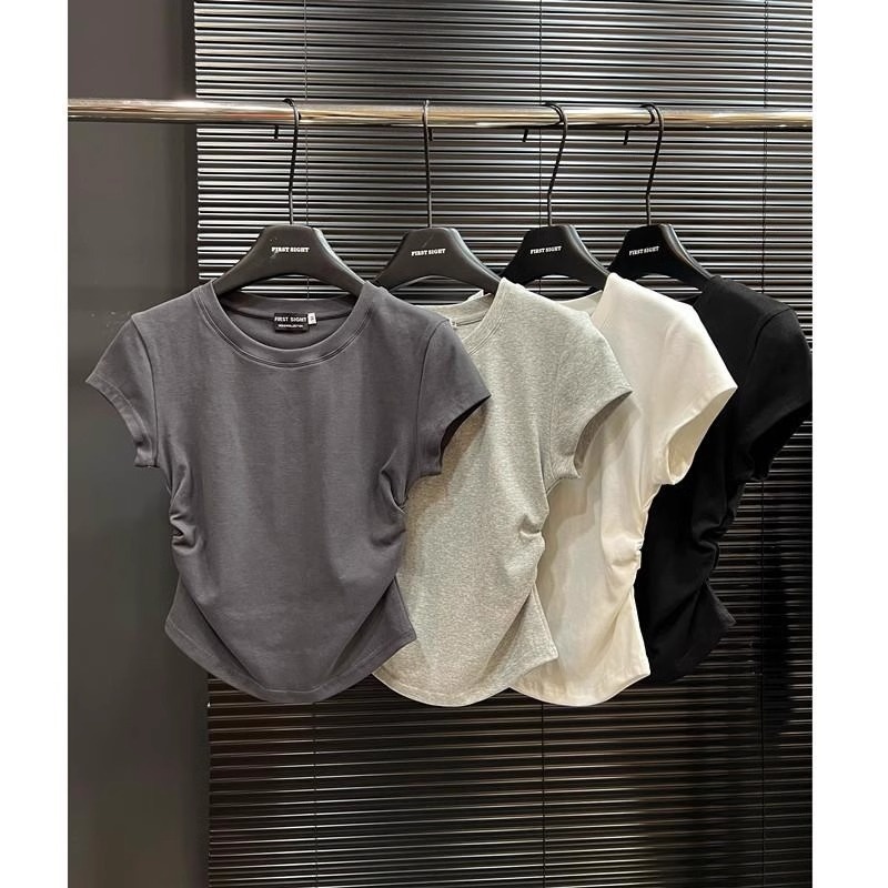 ins辣妹纯欲收腰t恤短袖女夏季新款纯色打底套头修身上衣女潮