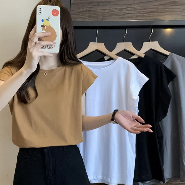 设计感小飞袖T恤女装2025夏季新款宽松外穿打底衫短袖学生上衣潮
